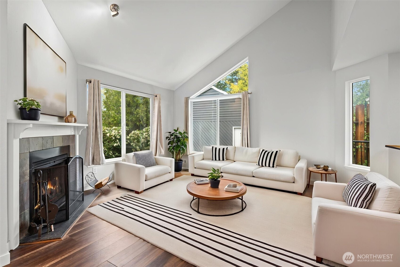 Nestled in the coveted gated community of Falcon Ridge, this stunning home offers a lifestyle of convenience and charm. Enjoy access to a clubhouse, playground, walking trails, and even RV and boat parking. Perfectly positioned just minutes from I-405, I-5, and WA-167, it’s a commuter’s dream. Step inside to discover an open, airy layout featuring vaulted ceilings, skylights, and a wood fireplace. Thoughtfully updated throughout with a new roof, newer windows with a 12 year warranty, stainless steel appliances and engineered hardwood floors that flow through the entry, kitchen, and dining area. Flooded with natural light, the living and kitchen space opens to a serene private patio bordered by lush foliage, perfect for soaking in the peaceful natural surroundings. Upstairs, the generous primary suite offers a beautifully updated en-suite bath and a walk-in closet. Centrally located and just minutes from all amenities including shopping, schools, trails, river, lakes, hiking and so much more. Featuring a spacious one-car garage with driveway parking. BONUS! No condo resale certificate is required. Welcome Home!