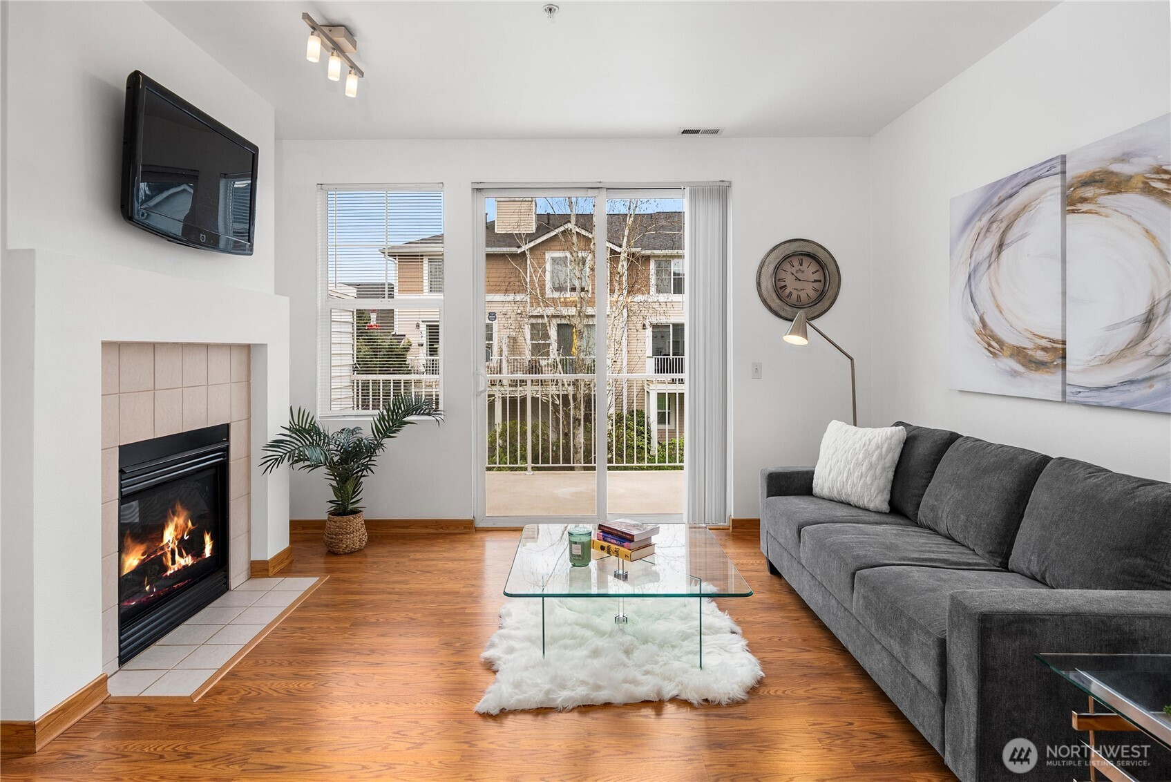 Welcome to Bay View Townhomes at The Lakes, where comfort, convenience, and community come together. This exceptionally well-maintained townhome has had just one owner and has been thoughtfully updated to meet modern standards. From the moment you enter, you’ll notice the bright, open layout, high ceilings, gleaming hardwood floors, fresh contemporary paint tones, and upgraded brushed nickel hardware throughout.The open-concept main level is ideal for everyday living and entertaining, featuring a cozy gas fireplace and a sliding glass door that leads to a private deck overlooking beautifully maintained HOA green space. The kitchen offers generous counter space for meal prep and flows seamlessly into the spacious dining area, along with a convenient half bath for guests. Upstairs, the primary suite includes a full en-suite bath, complemented by a second bedroom and additional full bathroom. The lower level features a versatile flex space and a 2-car tandem garage. Enjoy an easy walking distance to Kent Station’s shopping, dining, entertainment, and transportation hub, plus quick access to the new Kent Des Moines light rail station. With close proximity to I-5, Hwy 167, and Sea-Tac Airport, this is a prime commuter location offering both lifestyle and accessibility.