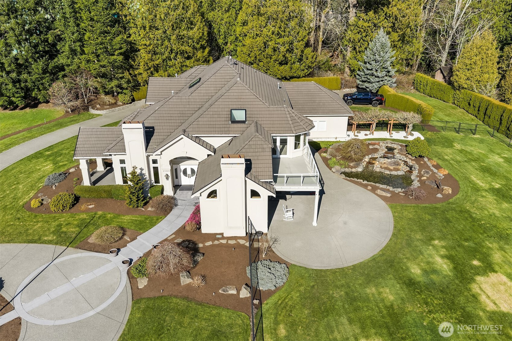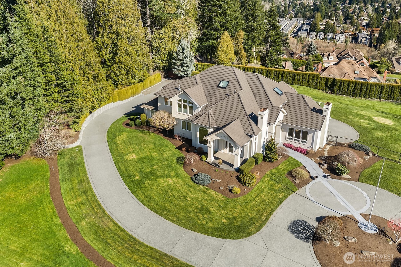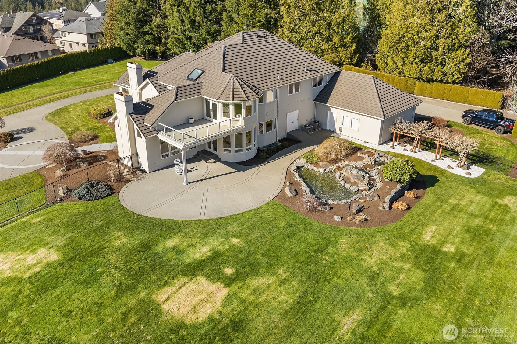 One of the most exquisite custom view properties totaling 1.83 fully landscaped acres. Minutes to shopping, medical, parks, and I90 access. Spectacular 240-degree views encompassing the Cascades, Issaquah Highlands, Tiger, Squak & Cougar mountains, Seattle & Bellevue skylines, and the Olympic range. Enjoy the sunrise, sunset, and uninterrupted all-day sun. The home sits above surrounding residential neighborhoods with protected sub-division views. Fenced for privacy and security, enjoy the long exposed concrete private driveway that leads you to the home. 4380 finished square feet and an over-sized 4 car (room for 5) garage. Adjacent to the garage is a shop / artist studio (with 1/2 bath). The 1200 sq ft+ unfinished basement is a blank canvas. Covered outdoor living area adjacent to the outdoor pond / waterfalls & kitchen. The chef's expansive island kitchen w/ oversized countertops, custom cabinetry, & walk-in pantry. Formal living and dining rooms with 12' ceilings & custom China hutch. Enjoy the city skyline views from the primary view suite, as well as the top end jetted soaking tub, dual sinks, large dual controls shower, heated floor, spacious walk-in closet (with washer/dryer), and dual view gas fireplace. Spacious secondary bedrooms plus an expansive loft overlooking the family room & Cascade Mountains. Room for detached garage, sport court, pool, or additional dwellings. If desired, the property can also be sub-divided. A truly rare, private, and expansive offering.