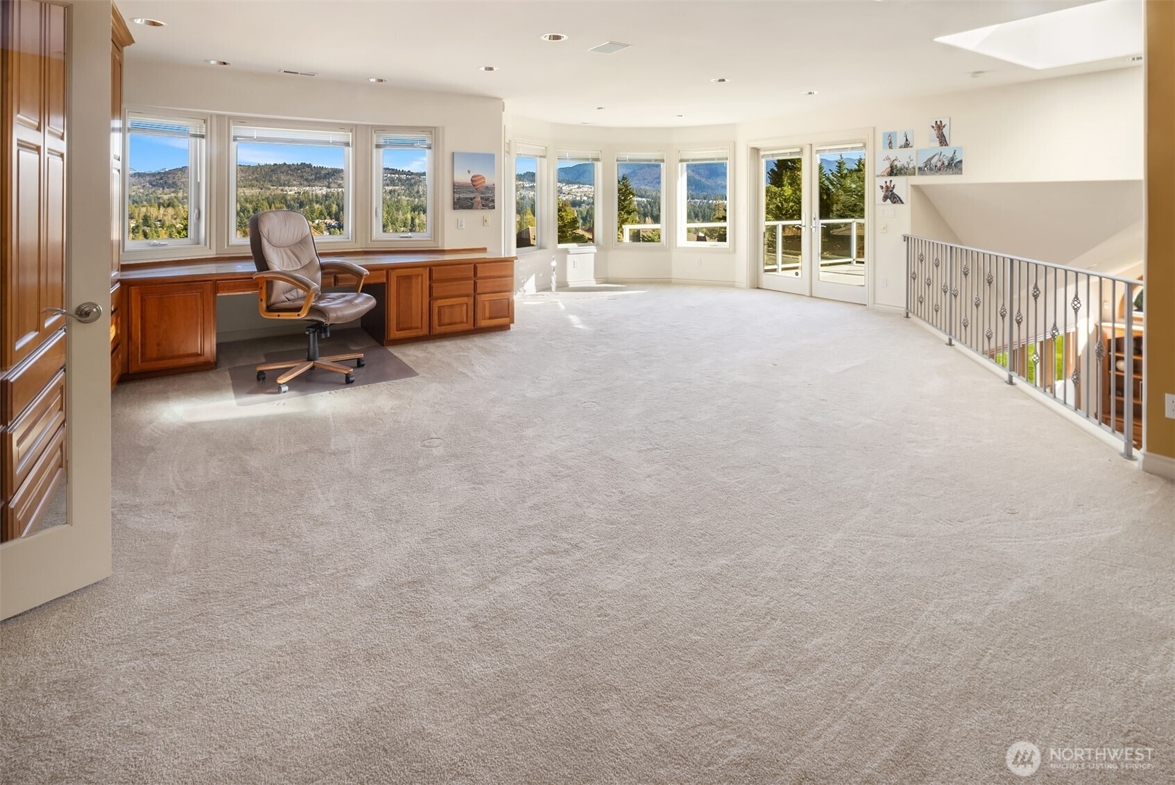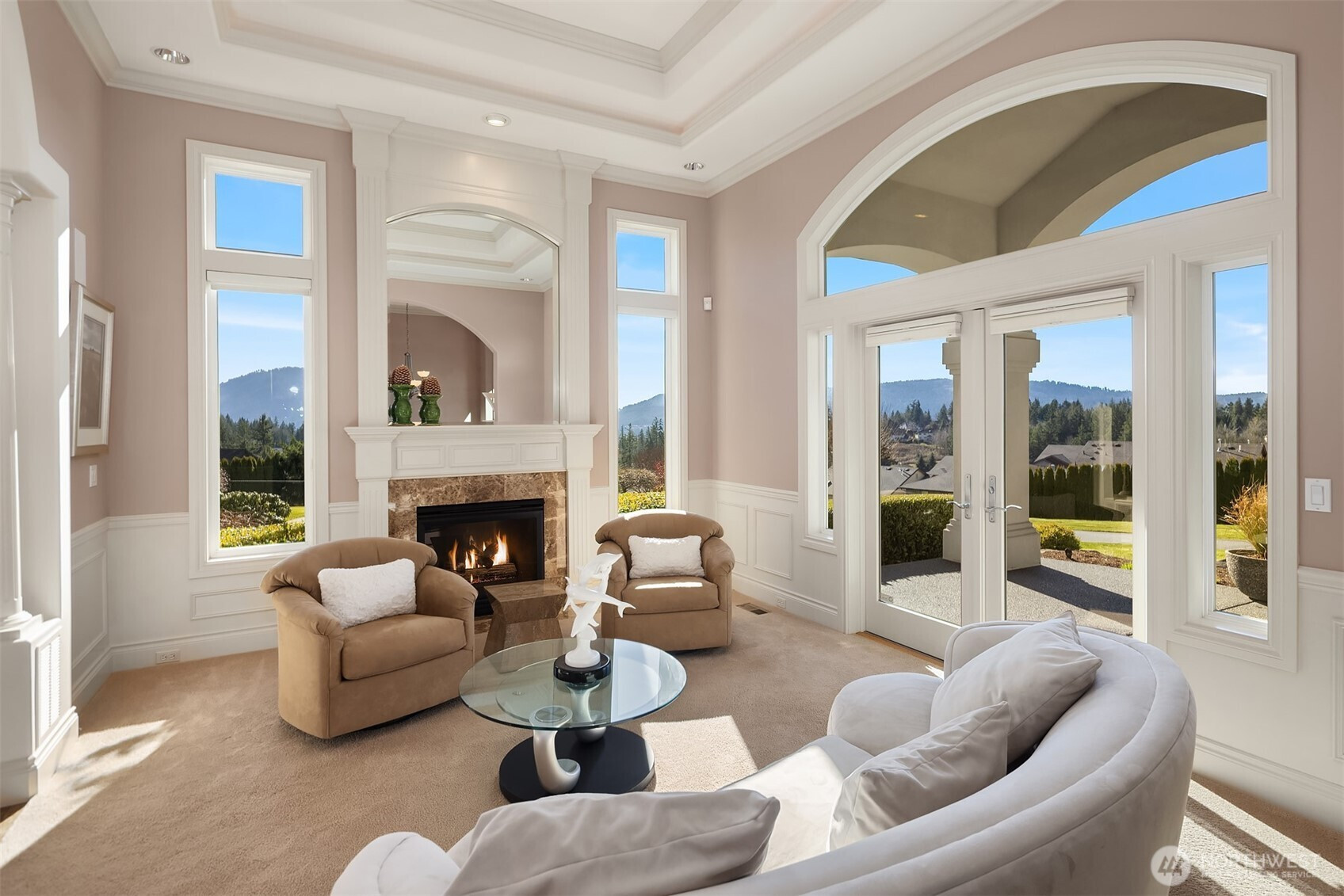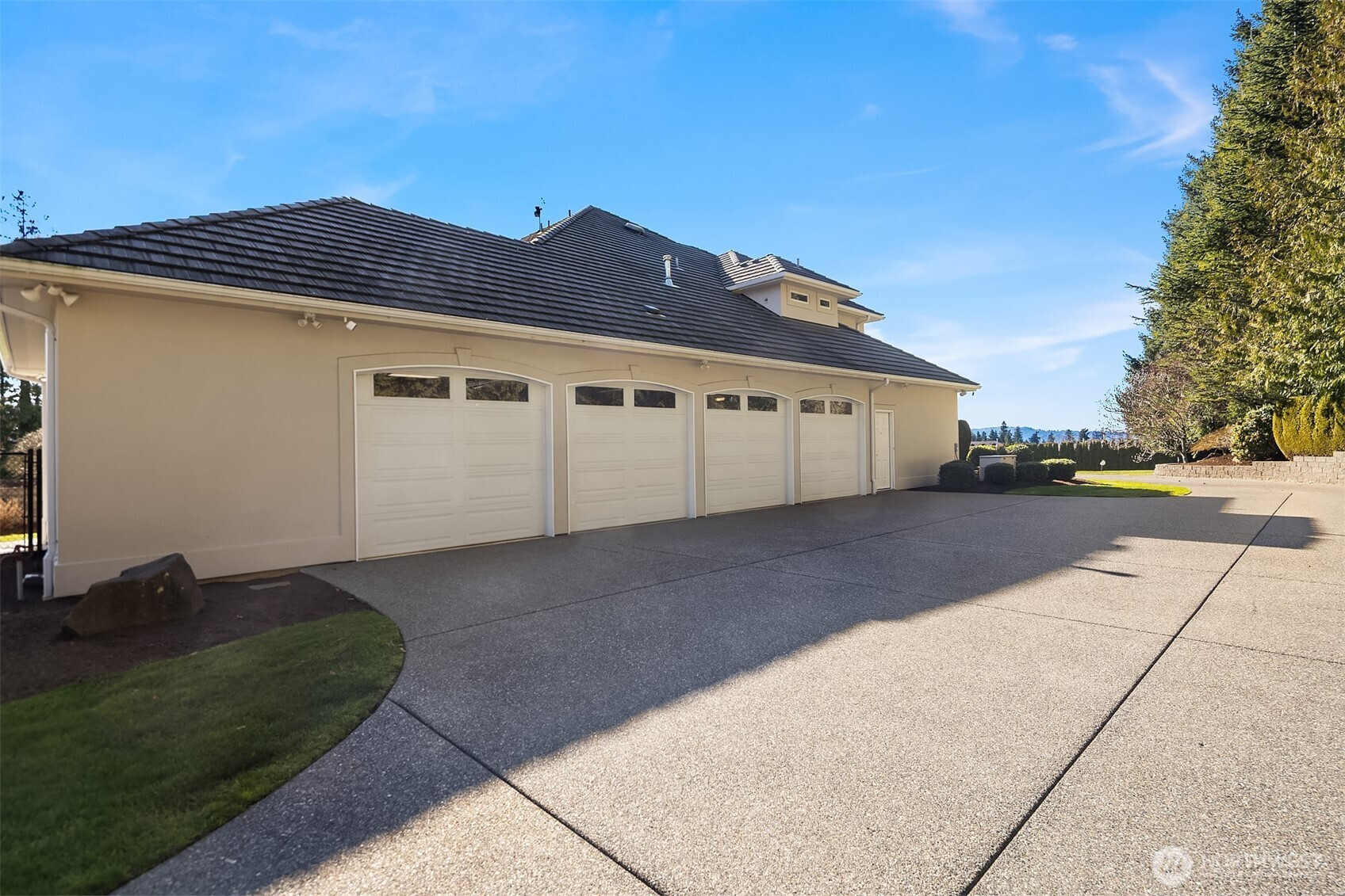 One of the most exquisite custom view properties totaling 1.83 fully landscaped acres. Minutes to shopping, medical, parks, and I90 access. Spectacular 240-degree views encompassing the Cascades, Issaquah Highlands, Tiger, Squak & Cougar mountains, Seattle & Bellevue skylines, and the Olympic range. Enjoy the sunrise, sunset, and uninterrupted all-day sun. The home sits above surrounding residential neighborhoods with protected sub-division views. Fenced for privacy and security, enjoy the long exposed concrete private driveway that leads you to the home. 4380 finished square feet and an over-sized 4 car (room for 5) garage. Adjacent to the garage is a shop / artist studio (with 1/2 bath). The 1200 sq ft+ unfinished basement is a blank canvas. Covered outdoor living area adjacent to the outdoor pond / waterfalls & kitchen. The chef's expansive island kitchen w/ oversized countertops, custom cabinetry, & walk-in pantry. Formal living and dining rooms with 12' ceilings & custom China hutch. Enjoy the city skyline views from the primary view suite, as well as the top end jetted soaking tub, dual sinks, large dual controls shower, heated floor, spacious walk-in closet (with washer/dryer), and dual view gas fireplace. Spacious secondary bedrooms plus an expansive loft overlooking the family room & Cascade Mountains. Room for detached garage, sport court, pool, or additional dwellings. If desired, the property can also be sub-divided. A truly rare, private, and expansive offering.