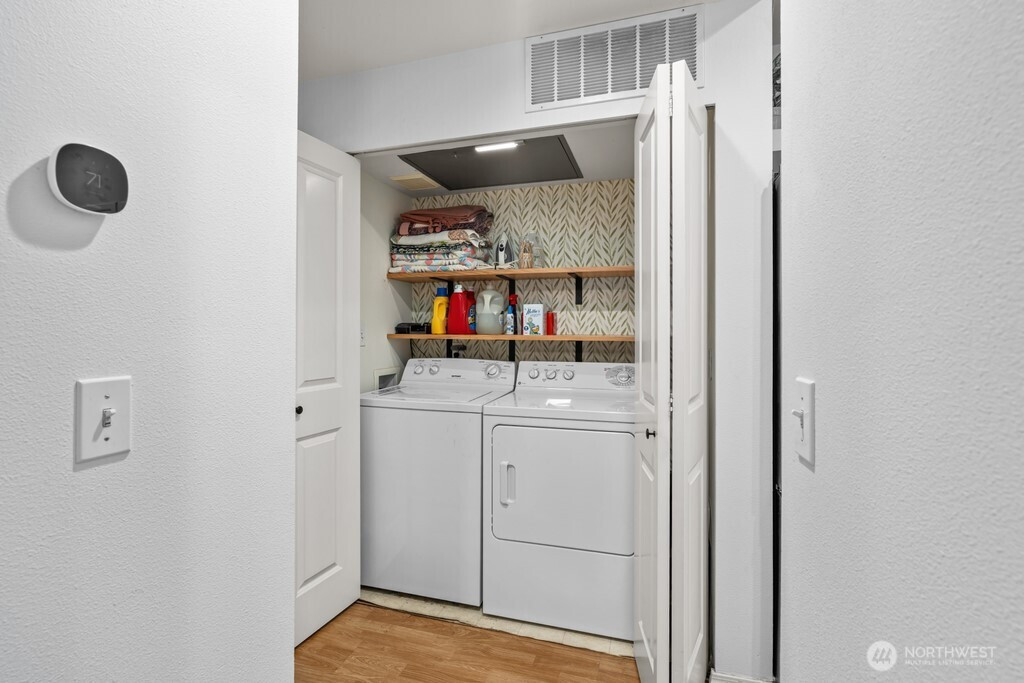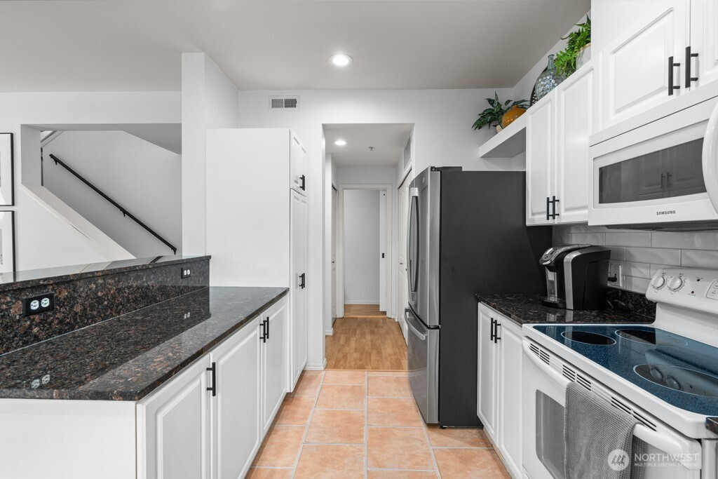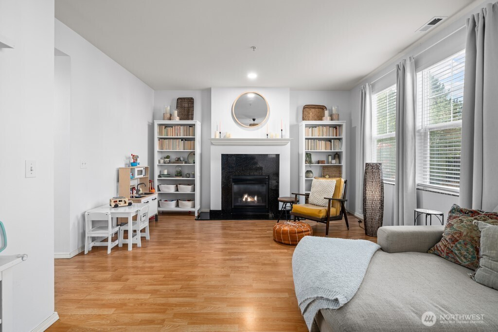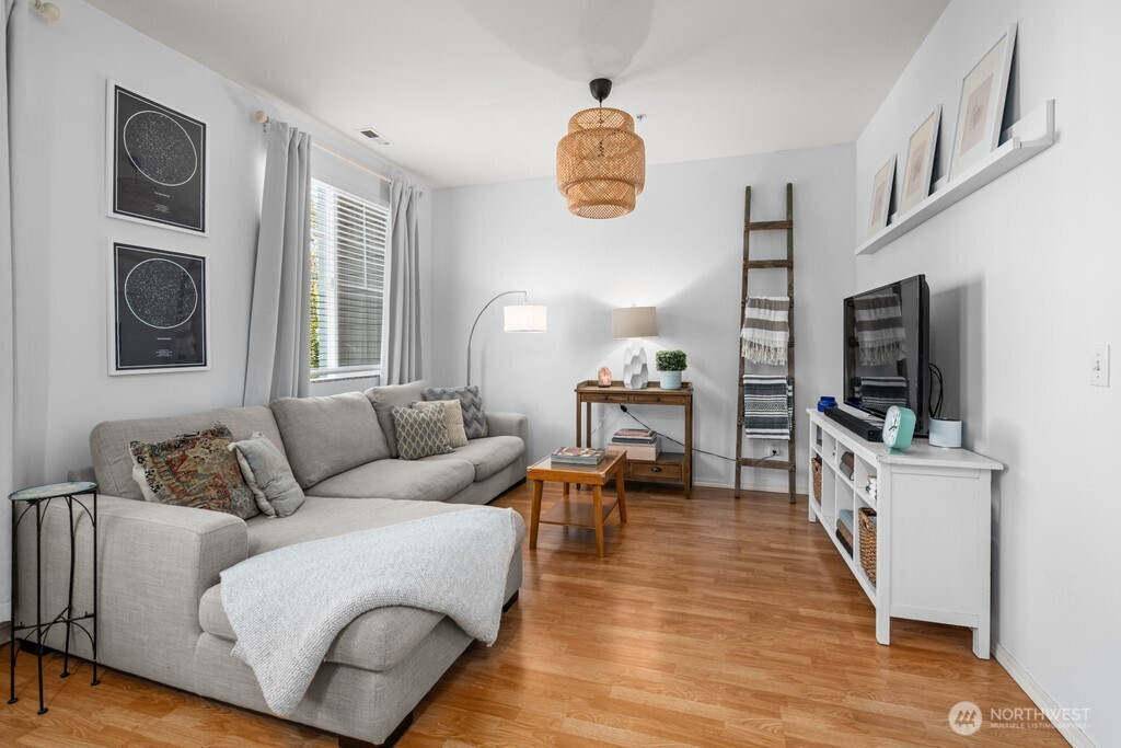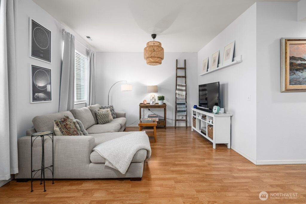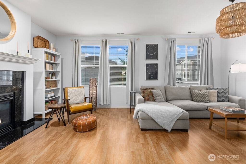 Beautiful corner-unit townhouse in sought-after Bayview at The Lakes! This light-filled home features 9 foot ceilings throughout, a spacious living room equipped with gas fireplace, a bright kitchen with granite counters and tile backsplash, open dining area, and a expansive balcony. The primary suite offers a walk-in closet and dual-sink bathroom. Two well appointed guest bedrooms. The two-car garage boasts epoxy floors, a utility sink, and bonus room with patio access for additional storage or whatever your imagination brings! Conveniently located near highways, light rail, parks, and shopping— don’t miss this incredible home!