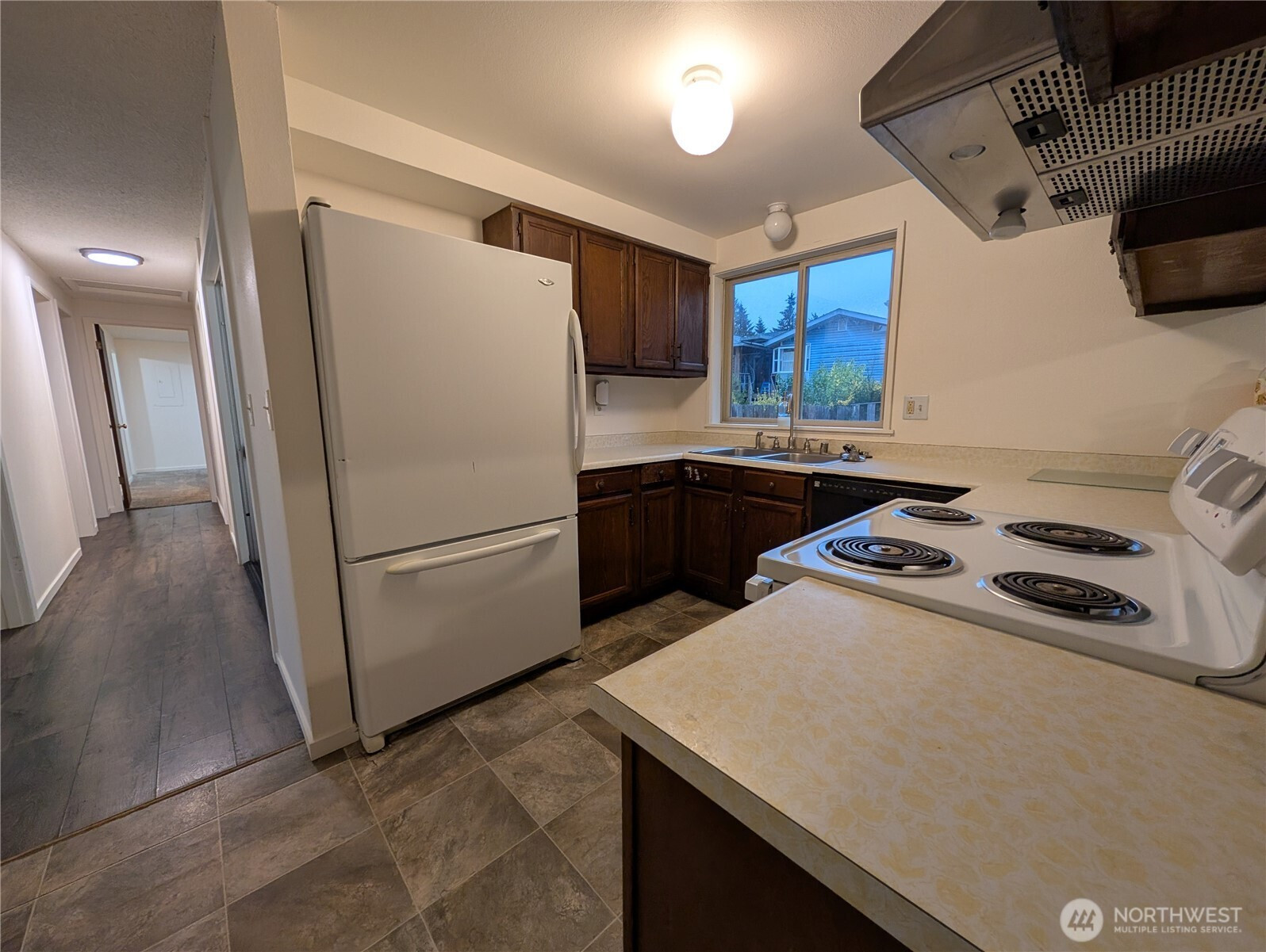 Welcome to this charming 2-Story home nestled in a cul-de-sac dead-end street in Kent. As you look at the home, it has a long driveway for ample parking with ascending stairs towards the front entrance. As you enter the foyer experience fresh interior paint throughout the home and newer LVP floors. This home has a flexible layout that features 3 bedrooms, 2 baths and a spacious living area that flows into the dining room and kitchen. From there is a fully fenced backyard complemented with a large deck perfect for relaxing, entertaining and gardening. The second floor offers a leisure bonus flex space, additional bedroom, laundry room & a 2-car garage with plenty of storage space. Additionally, there is both shopping and the highway nearby.