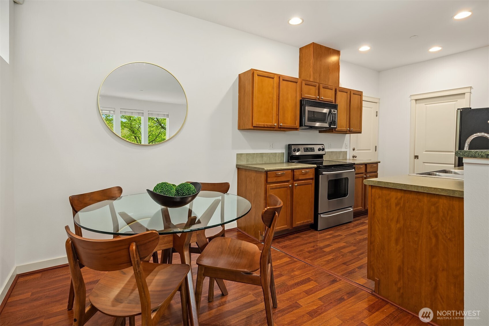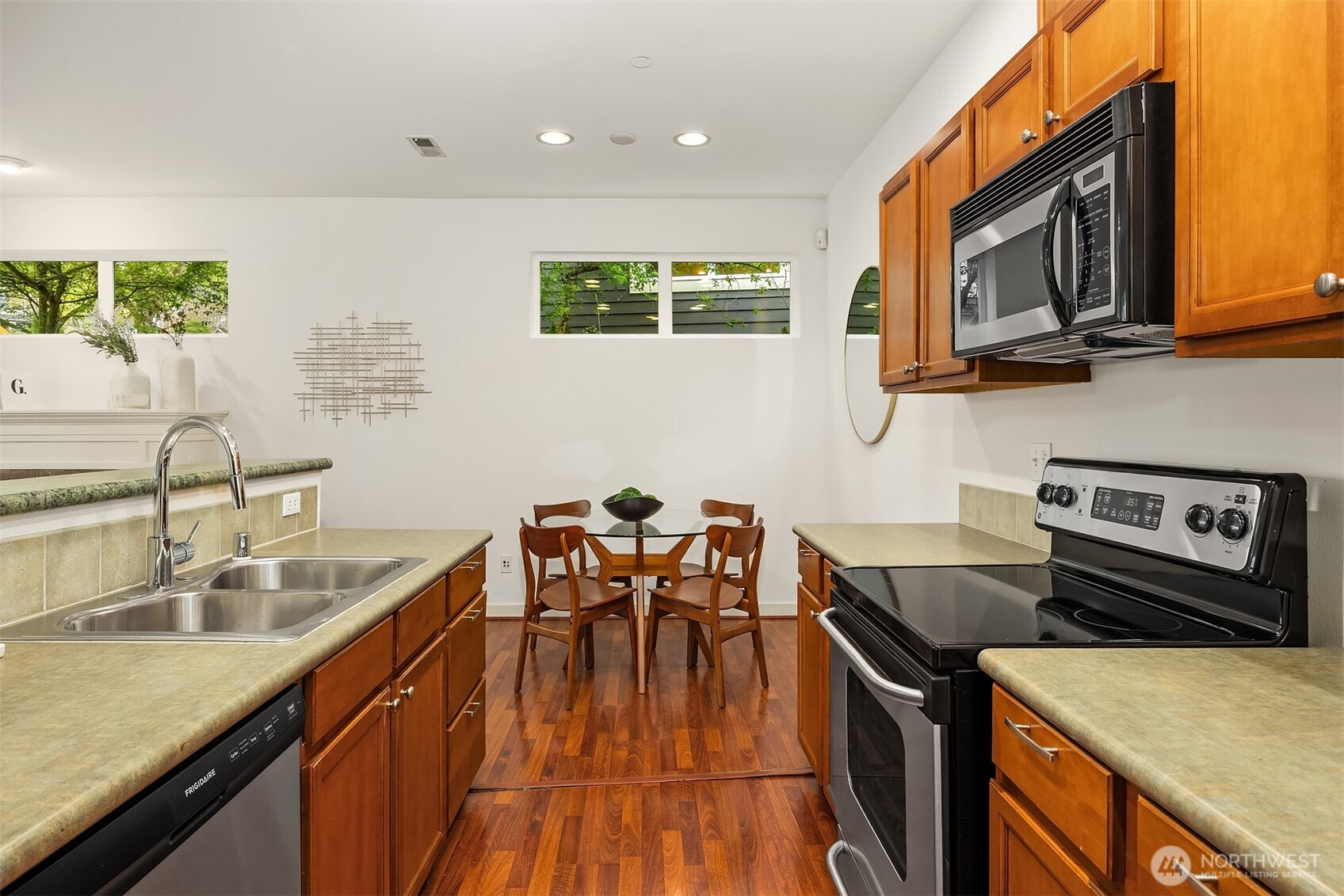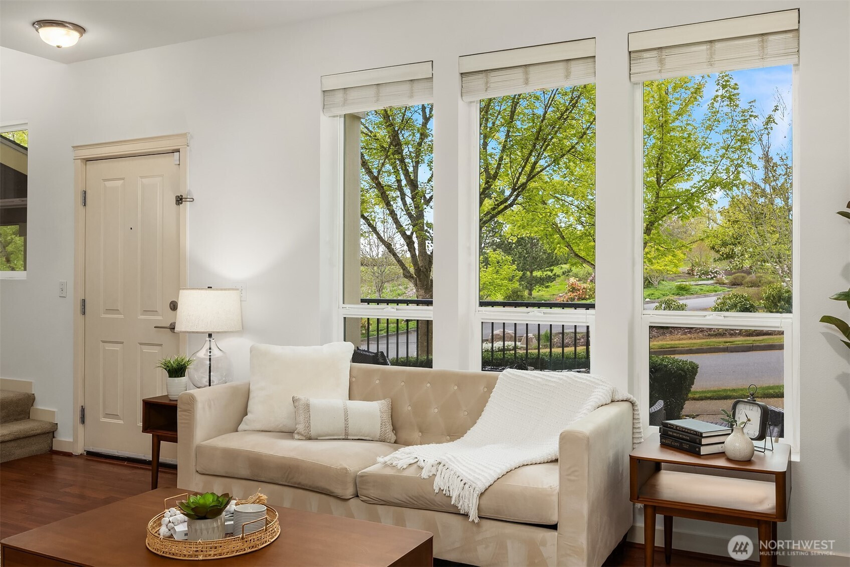The best value, priced to sell, in an incredible location next to scenic parks and trails at Villagio in Issaquah Highlands! One of the most sought-after layouts featuring three bright bedrooms and a sizable laundry room on the top floor, plus an open-concept main level with a powder room, kitchen with breakfast nook, huge front patio, and a convenient side-by-side two-car garage. The primary suite features dramatic vaulted ceilings, upgraded Elfa custom shelving within a large walk-in closet, and a five-piece bath. Freshly painted interior and low-maintenance exterior for an easy lifestyle. Not a condo, so HOA dues are low and include exterior maintenance/paint, roof maintenance, landscaping, and more. Grandview Park, Kirk Park, and Bark Park are right outside your door. An incredible opportunity awaits in Issaquah Highlands!