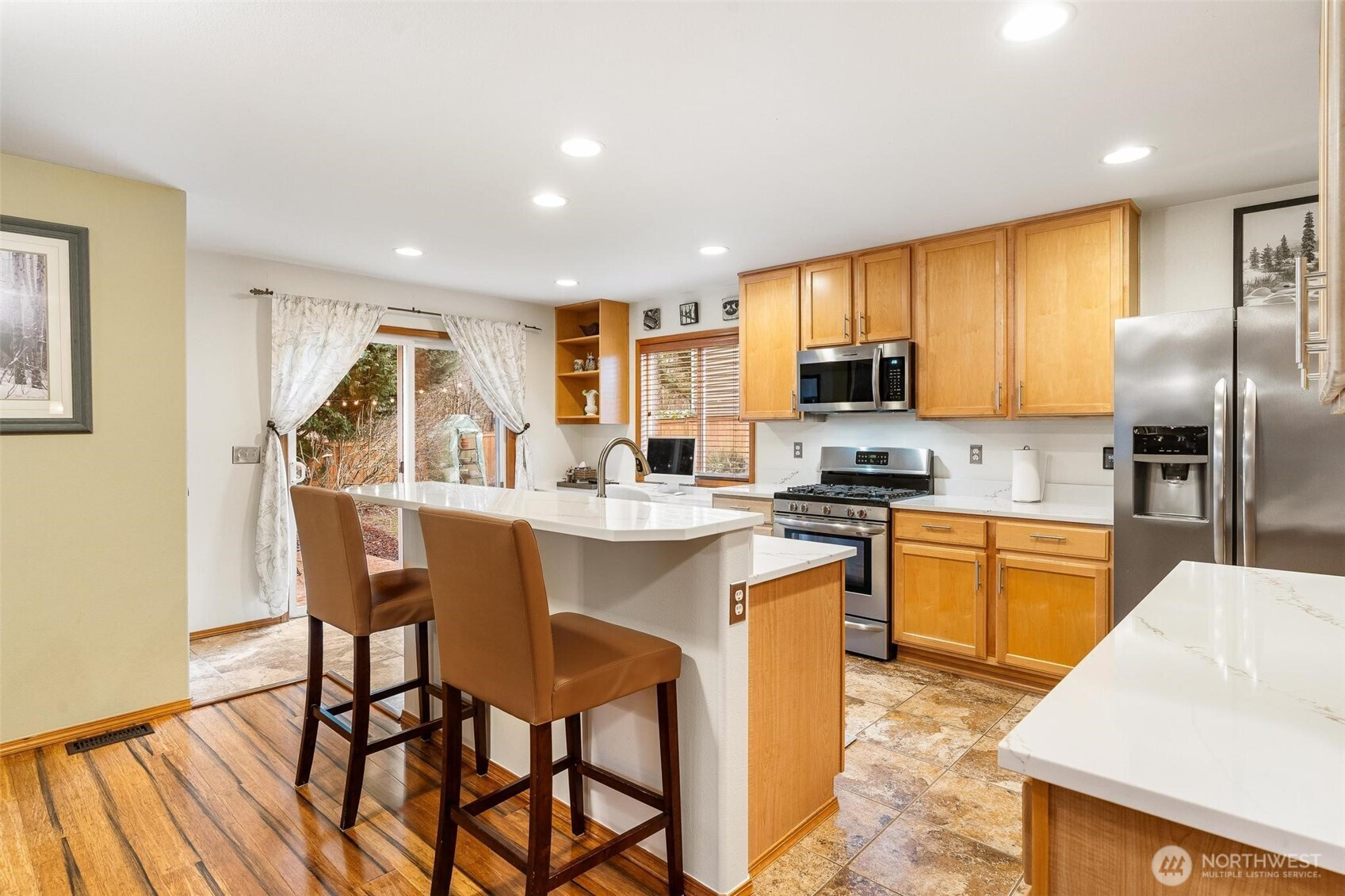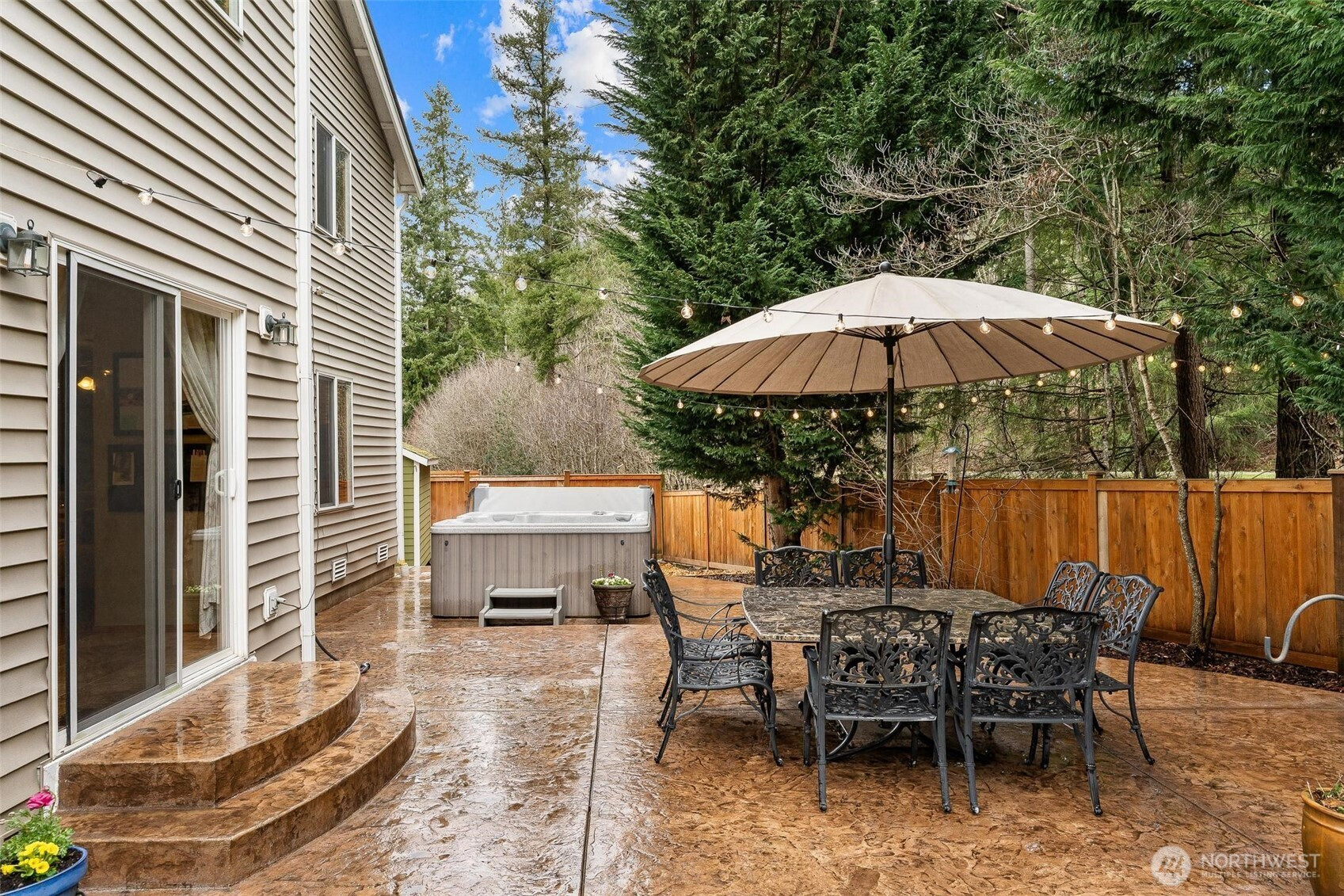 Welcome to the highly sought-after Katesridge neighborhood in the heart of Maple Valley, located within the highly rated Tahoma School District. Tucked away on an ideal cul-de-sac, this beautifully updated home offers open-concept living with a chef-inspired kitchen featuring quartz countertops, stainless steel appliances, heated floors, a walk-in pantry, and spacious island perfect for gathering, all anchored by a cozy gas fireplace and complemented by a dedicated dining room ideal for entertaining. Designed with functionality in mind, the home boasts immense storage space throughout, including several walk-in closets. Upstairs, the grand primary suite showcases a beautifully updated ensuite and spacious walk-in closet, along with a versatile loft perfect for a home office, media space, or play area. Step outside to your lush backyard retreat featuring a custom stamped concrete patio, garden space, hot tub, shed, and private gate access to scenic walking trails. Major updates include a 30-year roof and new hot water tank installed last summer, plus refreshed bathrooms and a modernized kitchen. Enjoy unbeatable convenience just minutes from Four Corners shopping, dining, the popular summer farmers market, and easy access to Hwy 169—this is Maple Valley living at its finest.