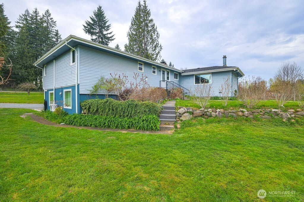 Welcome to a rare opportunity in Kent where space, flexibility, and lifestyle come together. This 4 bedroom, 2.5 bath home sits on a flat acreage, offering endless possibilities for those who need room to live, work, and play. Bring all your toys: RVs, boats, trailers as there’s space for it all. Dreaming of a hobby farm or starting your own garden and fruit orchard? This property is perfectly set up for animals, gardening, and creating your own private outdoor retreat, which includes a beautiful barn w/ stalls, hay storage, tack room & two large doors to provide drive thru option. Inside, the home offers incredible versatility: The main upper floor includes two living spaces, an updated kitchen with instant hot water, the primary suite, a primary bath w/ heated tile floors, & two additional bedrooms. A lower level with separate entry that features its own kitchen, ideal for multigenerational living, guest quarters, or potential rental income. This setup gives you options. Enjoy the best of both worlds: peaceful, open space living while still being just minutes from city amenities, shopping, and major commuting routes. Opportunities like this don’t come often. If you’ve been searching for space, flexibility, and long-term potential, this property checks all the boxes.