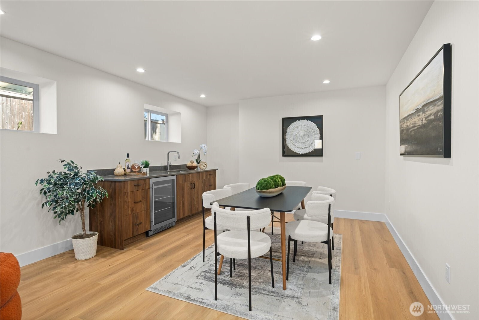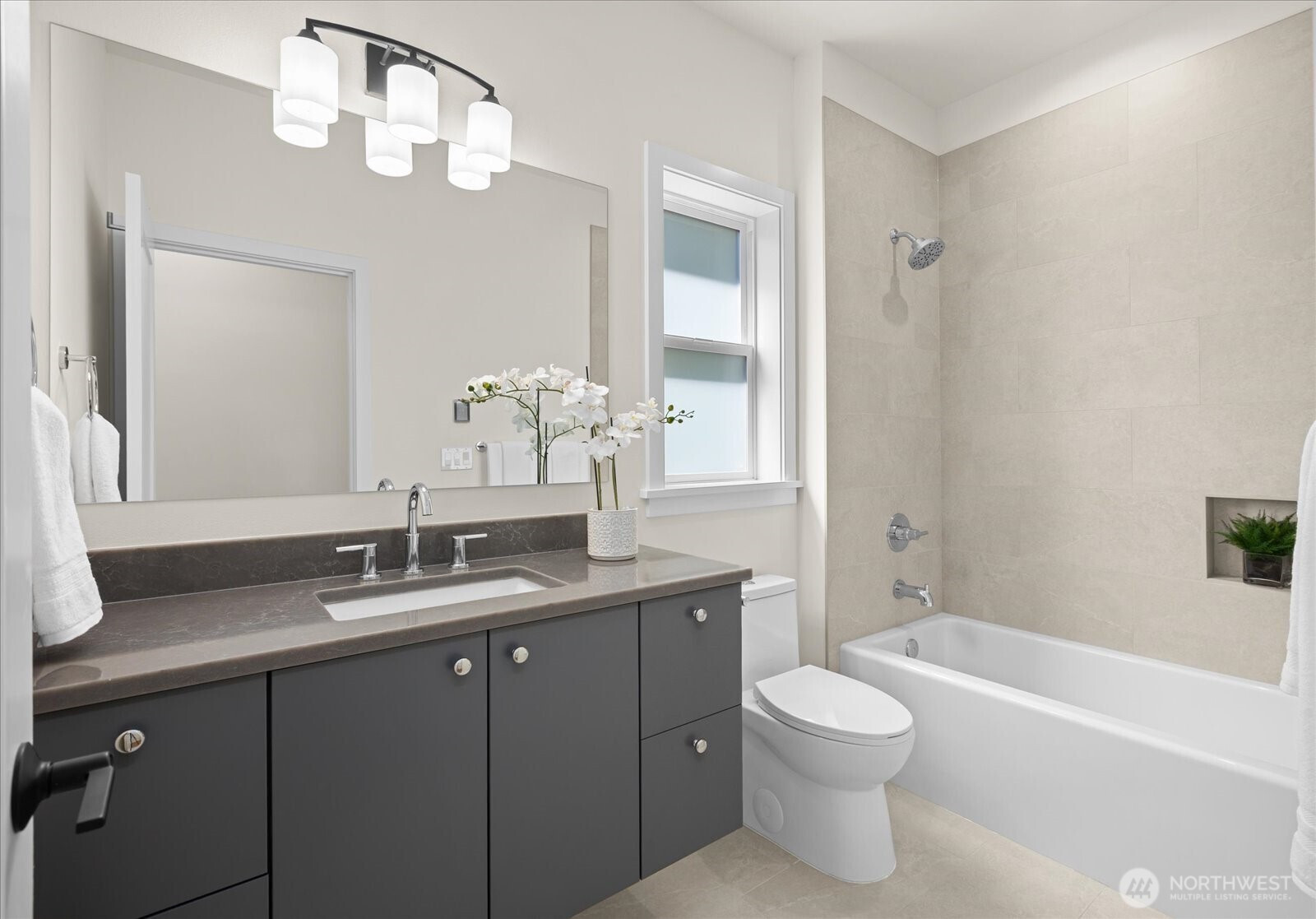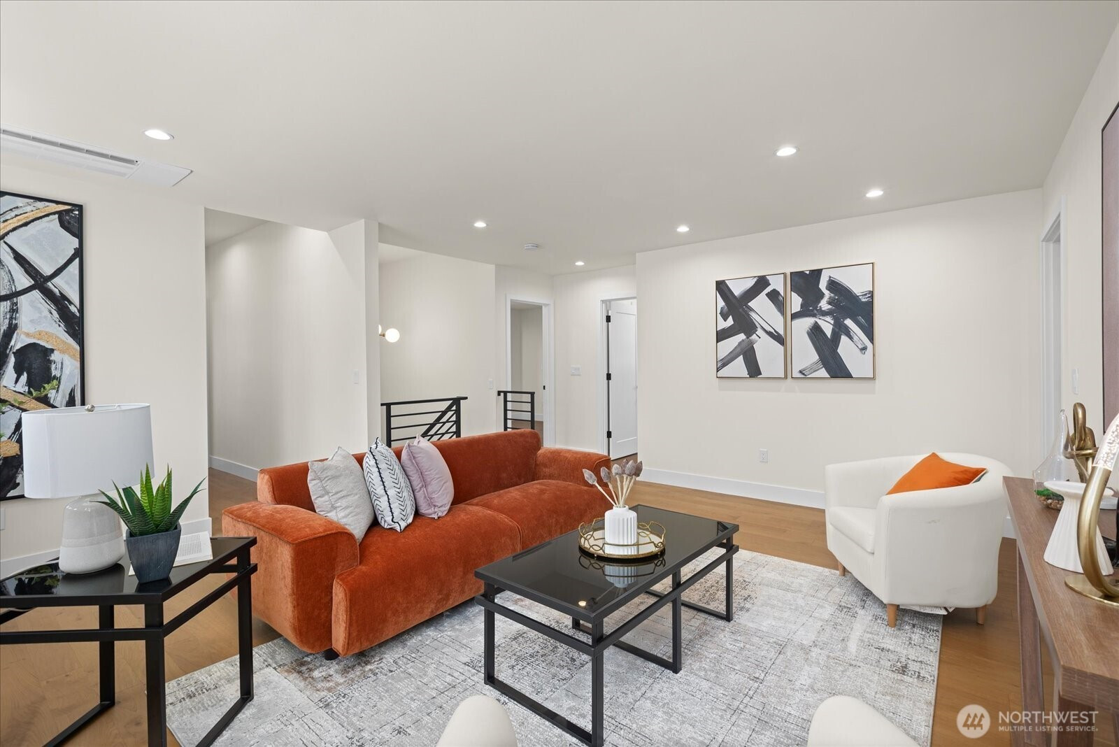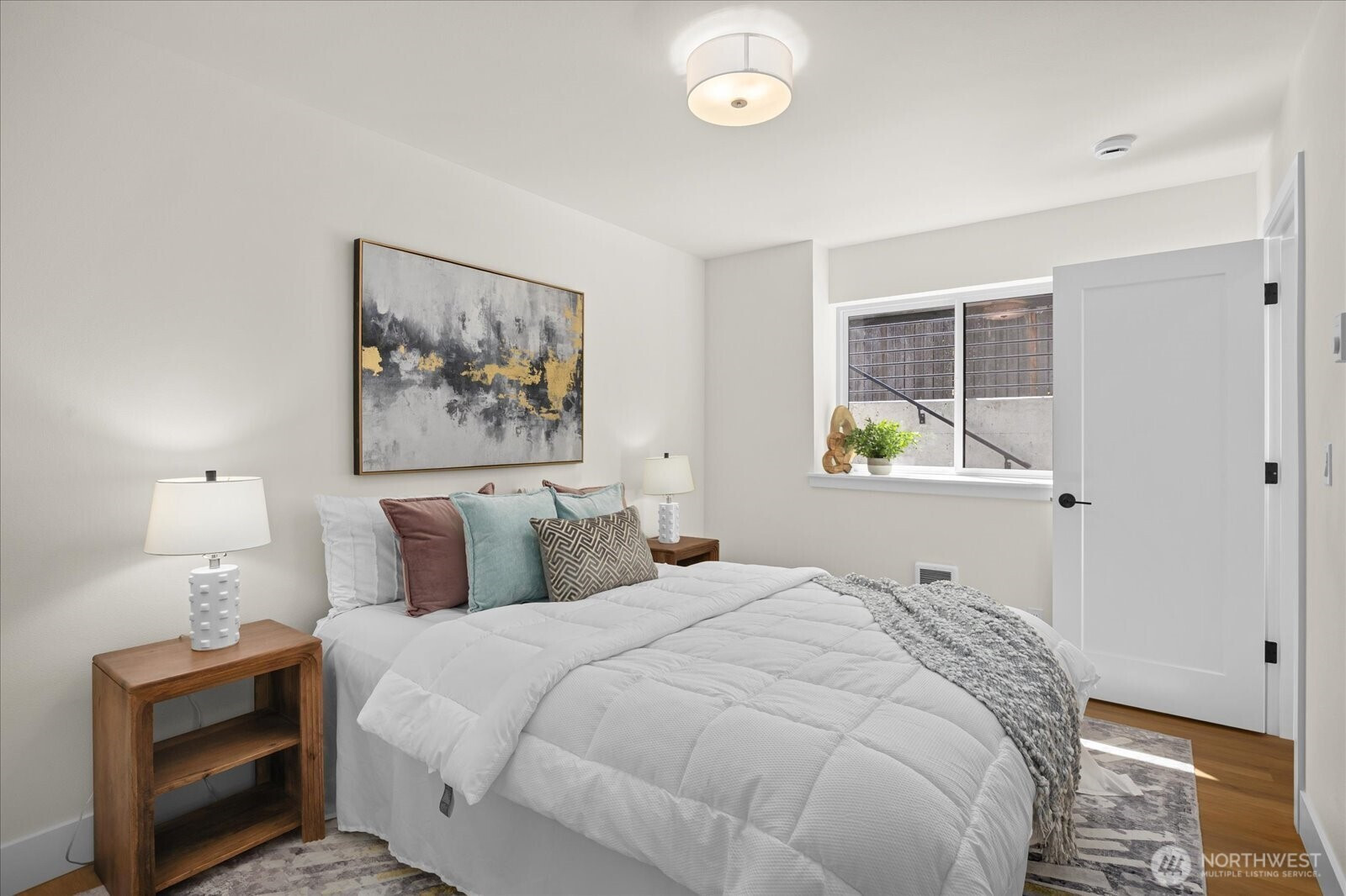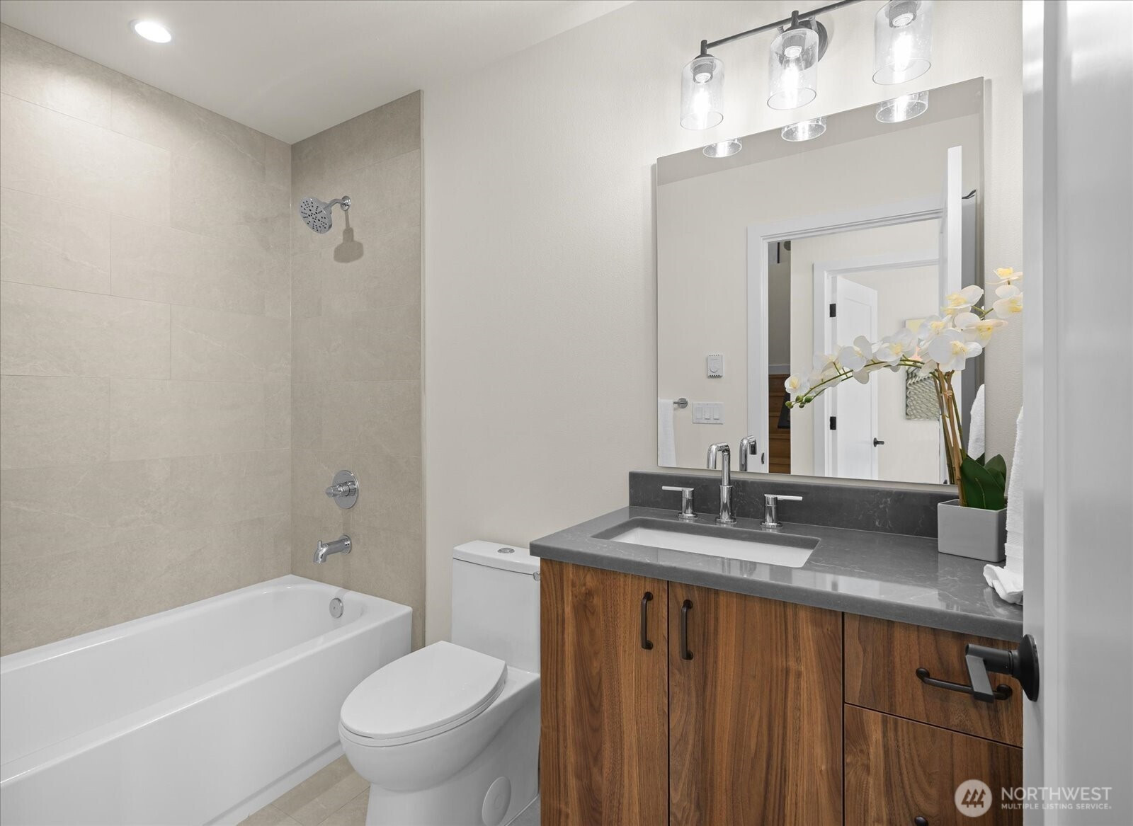 Located in a quiet friendly neighborhood, this 2025 stunning designer home makes an impression with a sleek kitchen with quartz countertops, high end appliances and pantry. Big private fully fenced yard and porch perfect for a wine out or evening out watching the neighbors walk their dogs. Upstairs, enjoy the big loft, huge romantic primary suite with a spa-inspired bath, walk-in closet and custom cabinets. Lower floor features a wet bar with second living room, two bedrooms and a bath to host your loving MIL. Huge two car garage with ample space to store all your holiday décor and car toys. Location close to I-5, public transport and light rail. Ask about our crazy low 4.125% rate to get you into this lovely home.