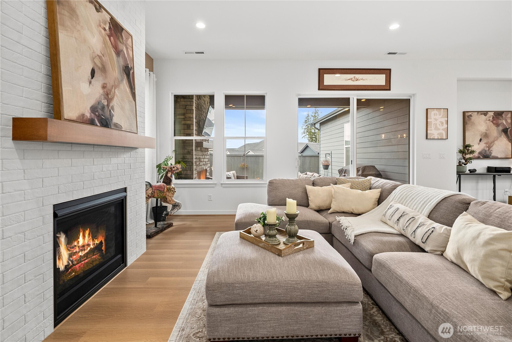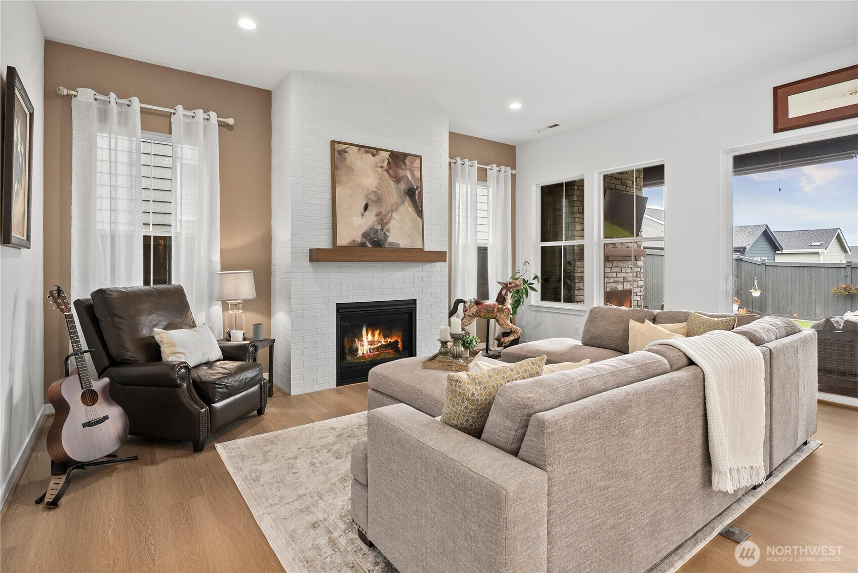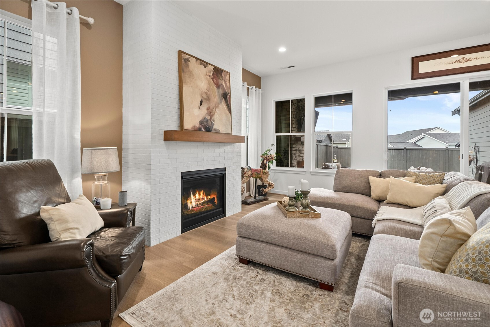 Located in the sought-after 55+ Regency at Ten Trails community by Toll Brothers, this elevated modern farmhouse offers nearly $50K in upgrades and has been lightly lived in. The thoughtfully designed Sirius floor plan features 2 bedrooms and 2 bathrooms, centered around an expansive great room with an upgraded fireplace and floating mantle, creating a warm and inviting space for everyday living and entertaining. The kitchen showcases white cabinetry with gold hardware, a gas range, large center island, generous cabinetry, and a spacious pantry, all seamlessly connected to the main living areas. Upgraded wide plank flooring and classic wainscoting add to the home’s refined feel, while a media den niche provides the perfect work from home setup. Oversized glass doors open to a covered back deck with fireplace and gas hookup for grilling, offering sunset views and effortless indoor/outdoor living. The private primary suite features a beautifully appointed bathroom with a frameless walk in shower and floor to ceiling tile. Additional highlights include EV charger pre wiring, heat pump, front yard sprinkler system, and a utility or garden shed that stays. Residents enjoy access to resort-style amenities including a stunning clubhouse, indoor pool, fitness and movement studio, pickleball and bocce courts, club lounge, outdoor gathering spaces, culinary spaces, dog park, and pet washing station.