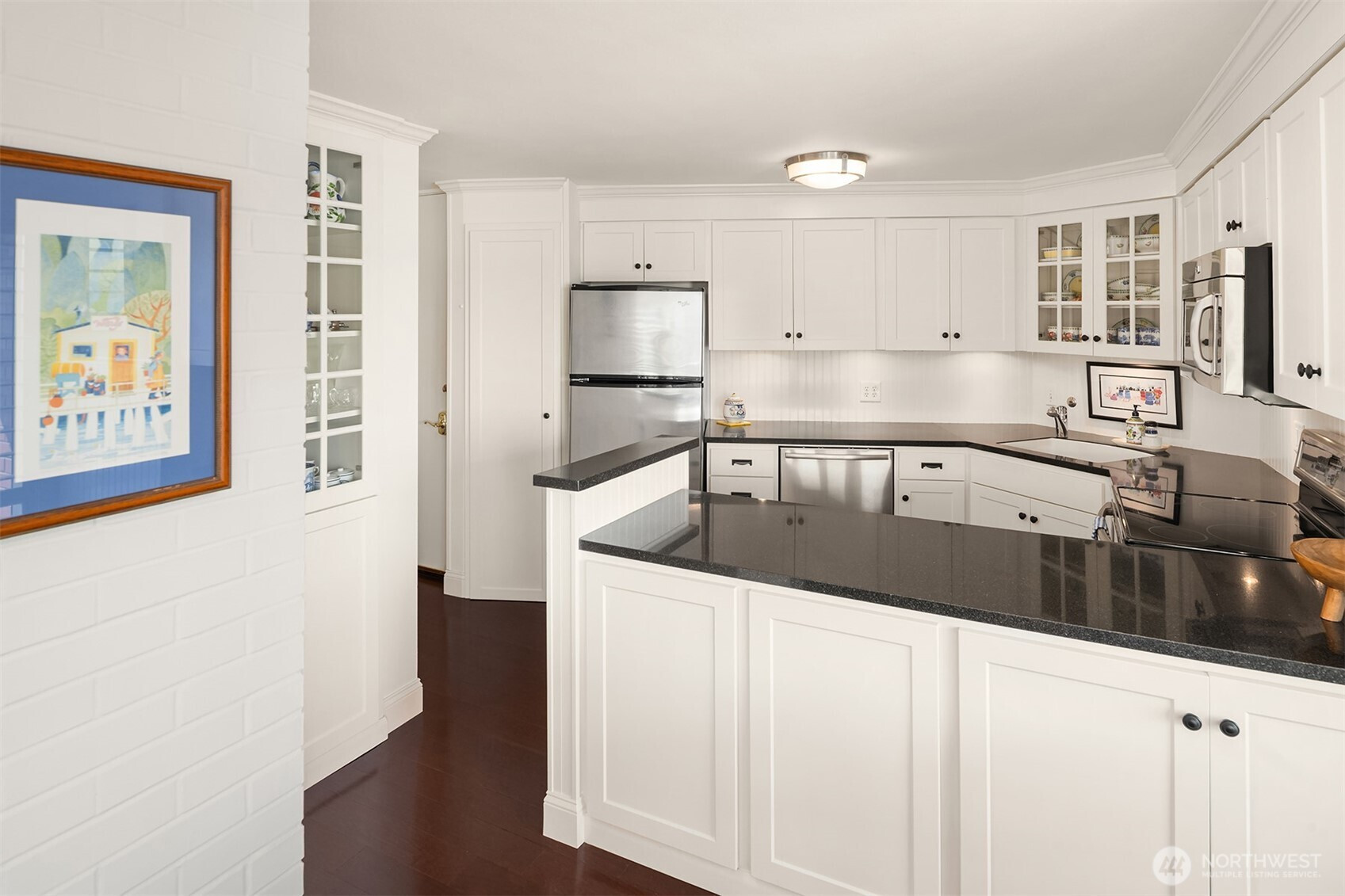Step into the timeless charm of this Madison Park condo at Lakeshore West. This two bedroom retreat blends classic details—beadboard accents, wood shutters, wood floors and built-ins—with an updated kitchen that makes everyday living a joy. South-facing windows flood the space with natural light, while the private balcony offers tranquil lake and Mt. Rainier views. Thoughtful design meets character in every corner, creating a warm and inviting home just steps from the shops, cafés, and waterfront of Madison Park. Covered tandem two car parking, large storage, private swim dock, lake access, kayak storage and on-site gym complete this rare offering.