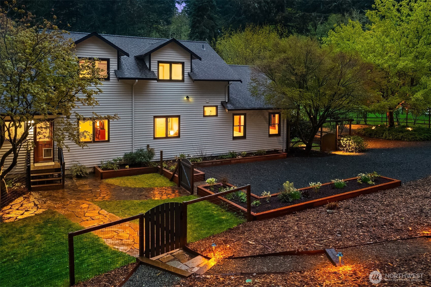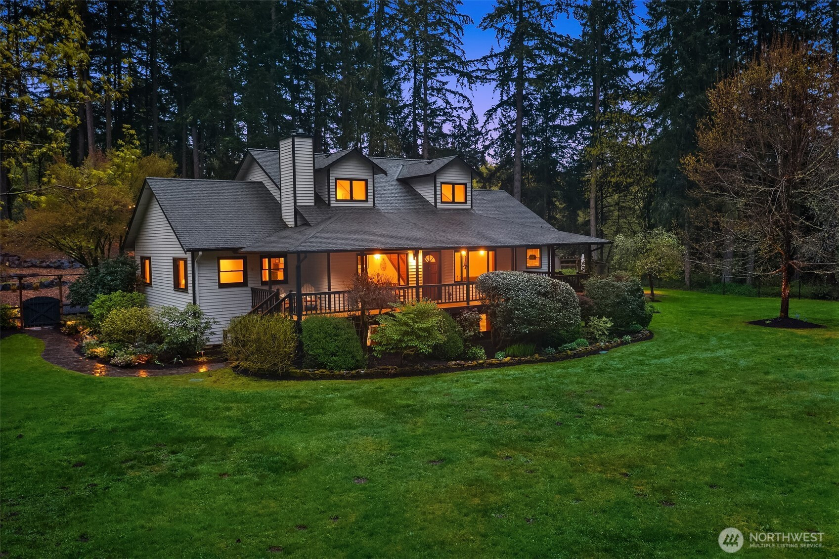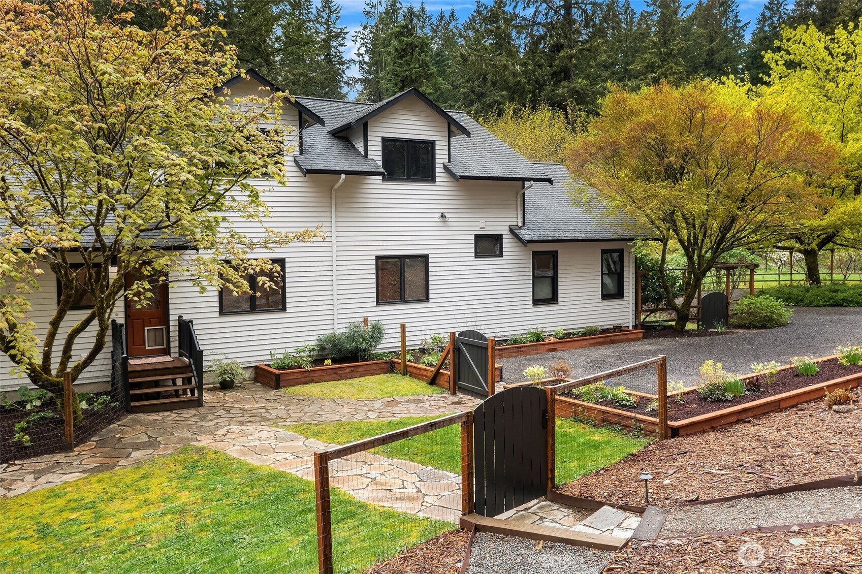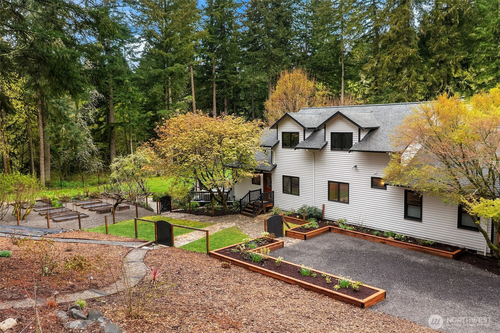 Rosebriar Farm on Vashon Island – Discover serenity and privacy within these 6+ gated acres set in a prime mid-island location. This beautifully crafted 4+ bedroom, 3 bath modern farmhouse showcases the renowned quality of Ed Palmer Construction. Soaring cedar-clad ceilings greet you at the entrance - sunlit interiors, a main-floor primary suite, and thoughtfully updated kitchen and baths check every box on your wish list. Enjoy seamless indoor-outdoor living with a spacious west-facing veranda and an expansive deck just off the kitchen. The exquisitely landscaped deer-fenced grounds feature a climbing-rose lined circular drive, stone terracing, and a kitchen garden with established berries, fruit trees, and raised vegetable beds. A charming small barn and sturdy chicken coop invite your hobby farm dreams. The property’s infrastructure is meticulously maintained, offering a newer detached garage, EV charging, automatic 60KW generator and 35-zone irrigation system. Surrounded by nature, the pristine 20-acre Fisher Forest adjoins the western property boundary. Experience the very best of Vashon Island living here.