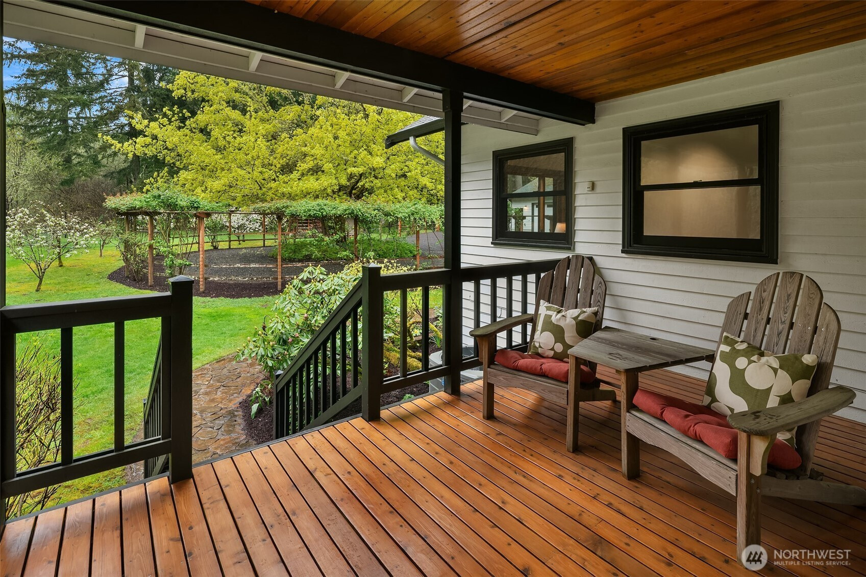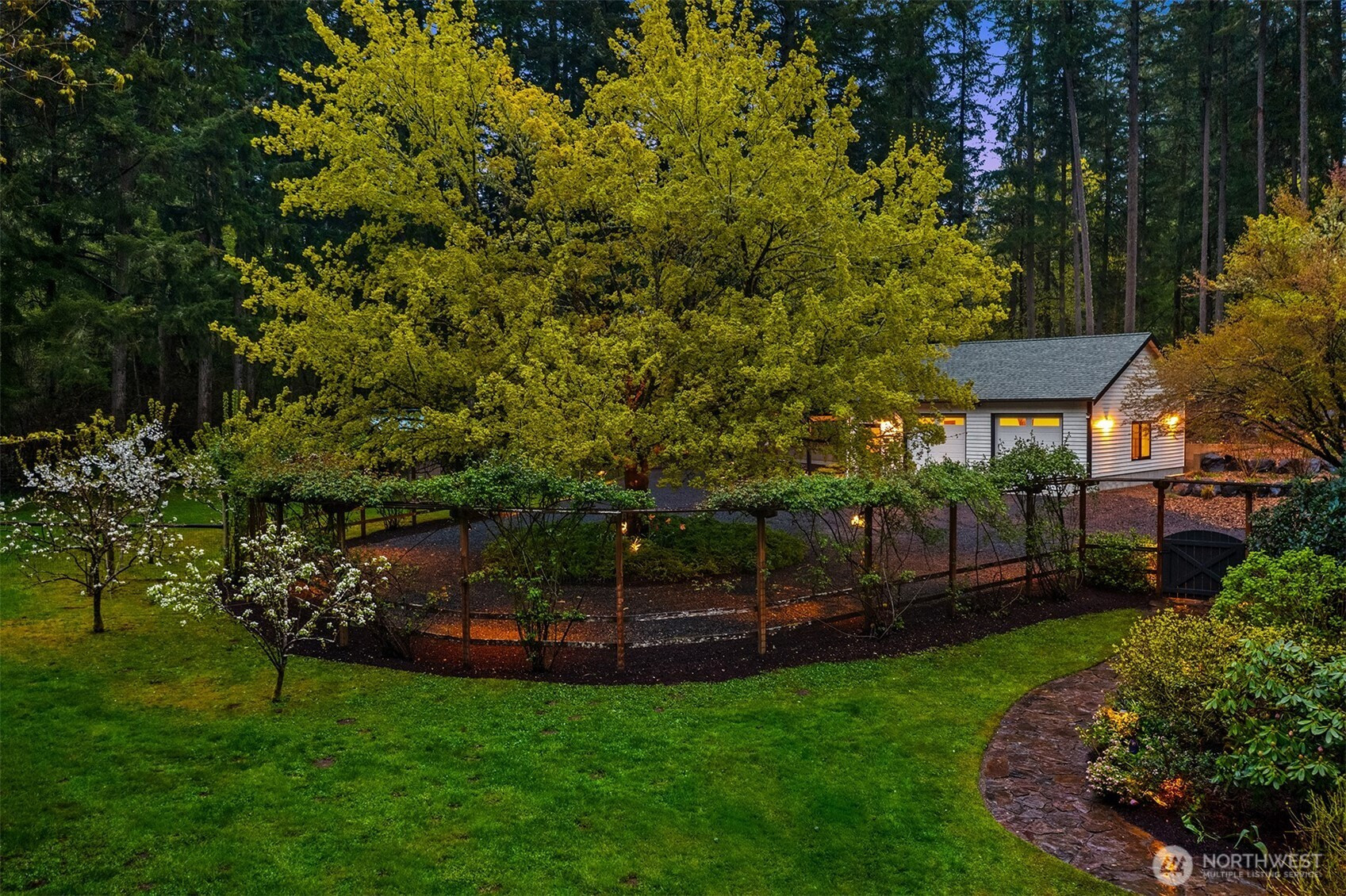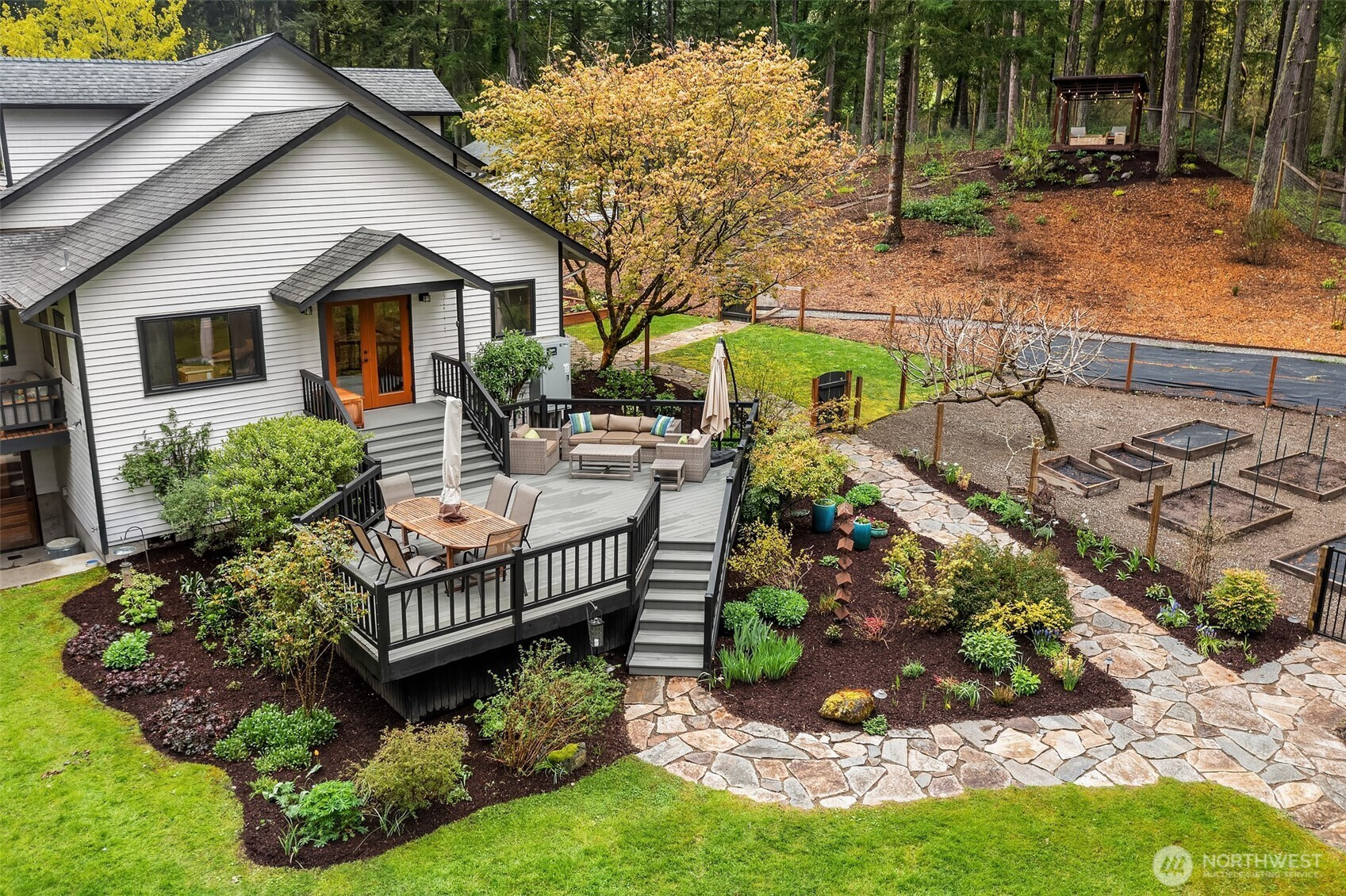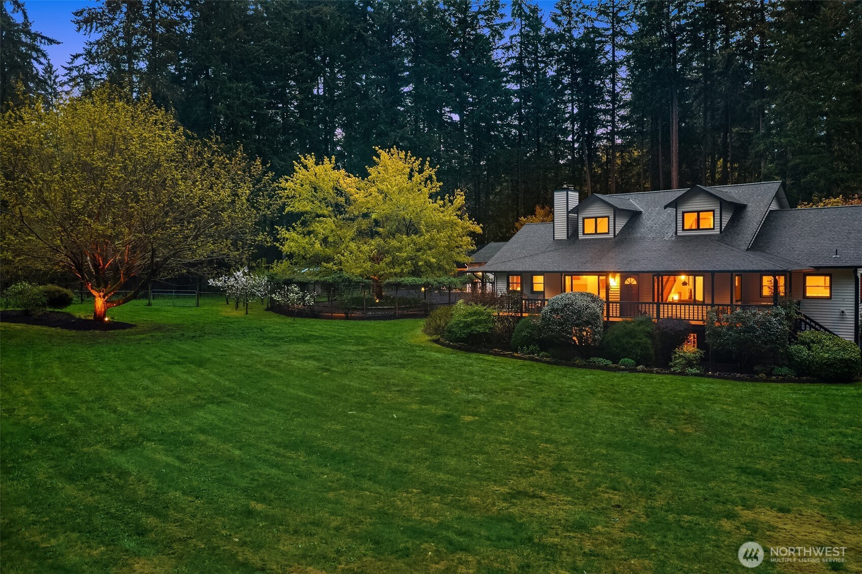 Rosebriar Farm on Vashon Island – Discover serenity and privacy within these 6+ gated acres set in a prime mid-island location. This beautifully crafted 4+ bedroom, 3 bath modern farmhouse showcases the renowned quality of Ed Palmer Construction. Soaring cedar-clad ceilings greet you at the entrance - sunlit interiors, a main-floor primary suite, and thoughtfully updated kitchen and baths check every box on your wish list. Enjoy seamless indoor-outdoor living with a spacious west-facing veranda and an expansive deck just off the kitchen. The exquisitely landscaped deer-fenced grounds feature a climbing-rose lined circular drive, stone terracing, and a kitchen garden with established berries, fruit trees, and raised vegetable beds. A charming small barn and sturdy chicken coop invite your hobby farm dreams. The property’s infrastructure is meticulously maintained, offering a newer detached garage, EV charging, automatic 60KW generator and 35-zone irrigation system. Surrounded by nature, the pristine 20-acre Fisher Forest adjoins the western property boundary. Experience the very best of Vashon Island living here.