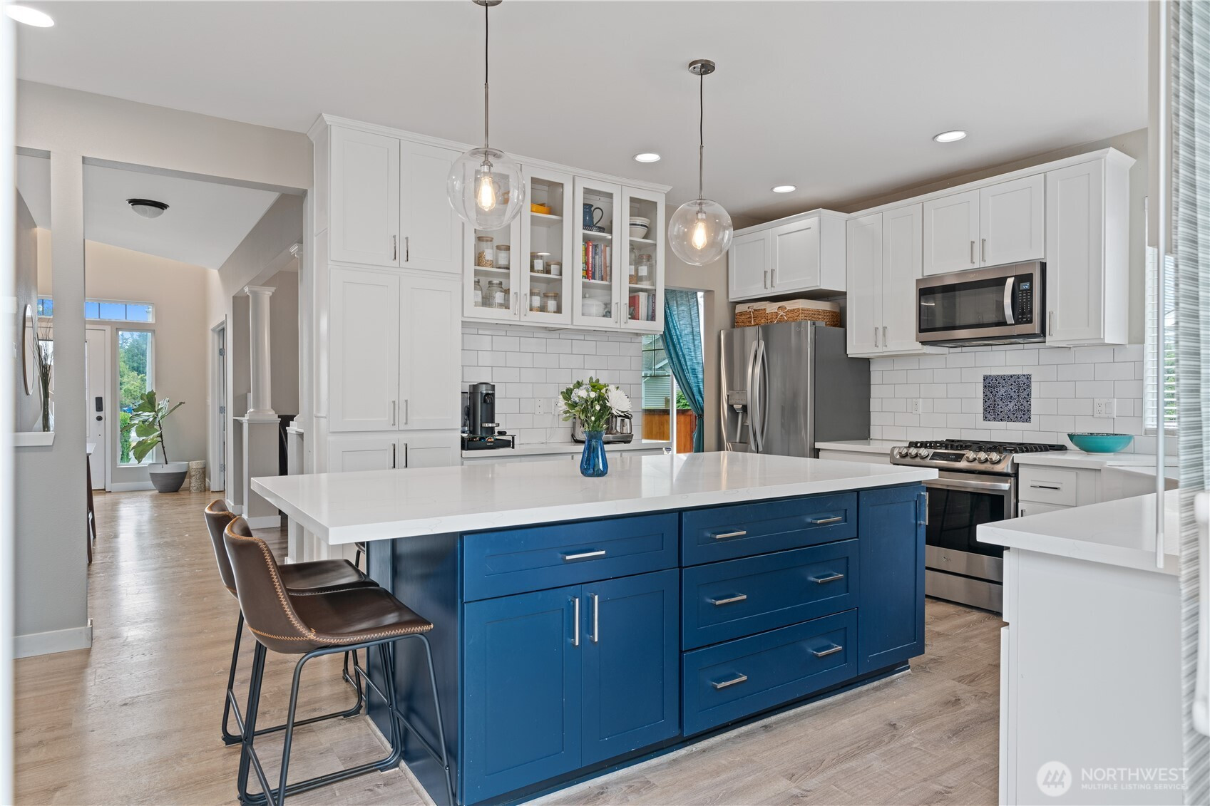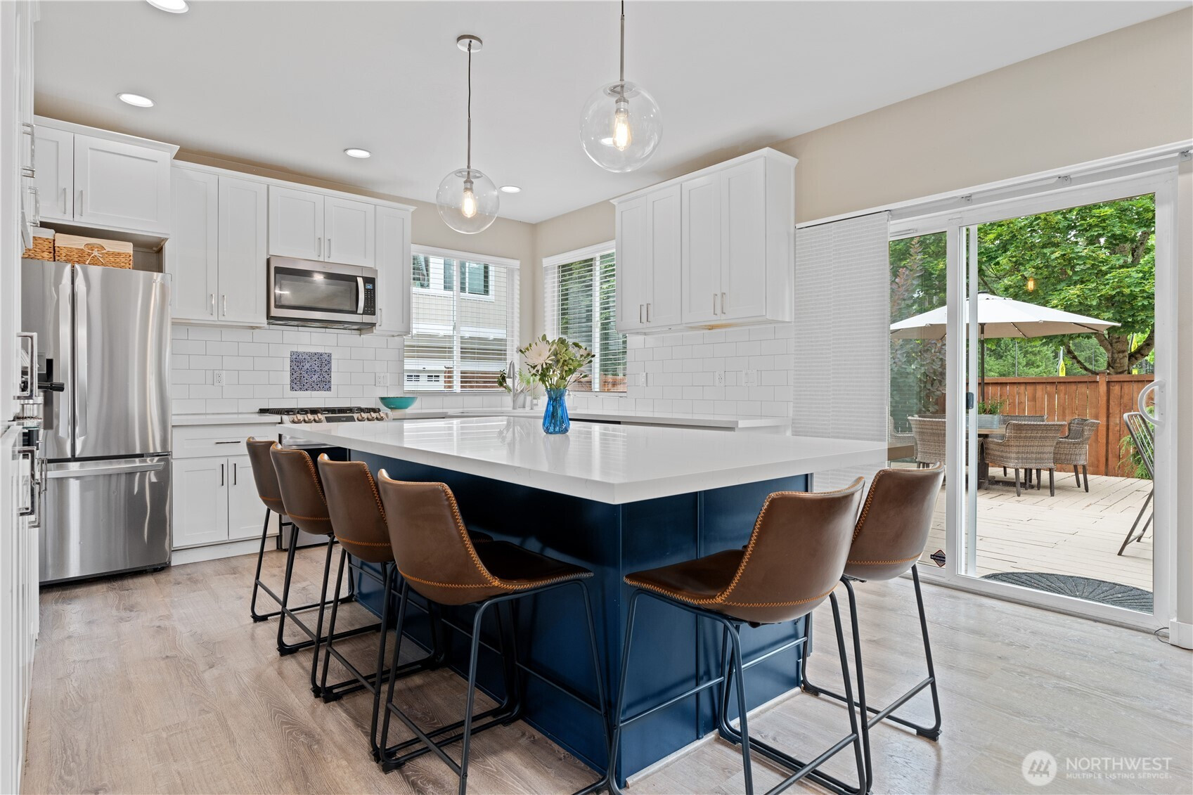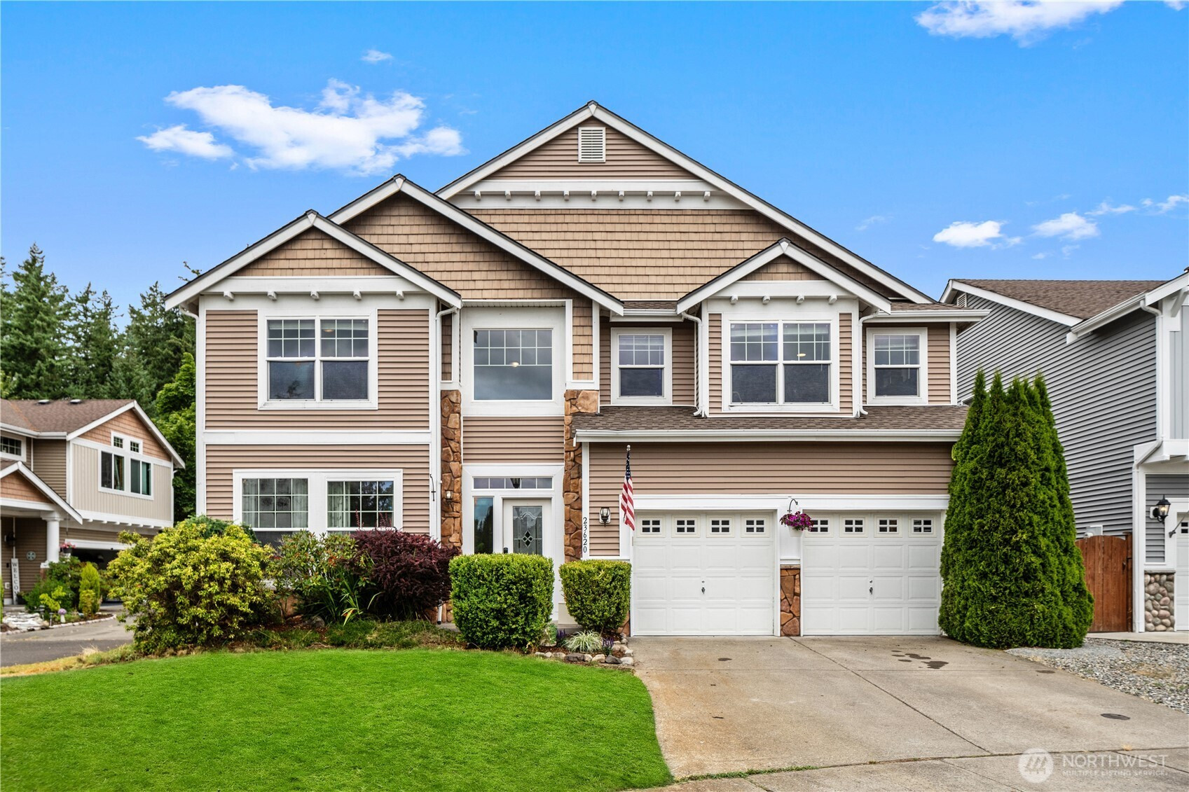 Now priced below market value! Don't wait!!! Set apart from the ordinary, this Maple Valley gem offers modern design, flexible spaces, and a coveted location across from Glacier Park Elementary and minutes to Tahoma High. The stylish kitchen showcases quartz counters, stainless appliances, and an oversized island—perfect for gatherings. Enjoy four bedrooms, a dedicated office, versatile bonus, and a serene primary suite with sitting area and spa-inspired bath. Outside, a fenced yard and expansive deck invite entertaining and play. The three-car garage features epoxy floors, built-ins, bike storage, and a huge attic. A lifestyle of comfort and convenience awaits in the heart of MV.