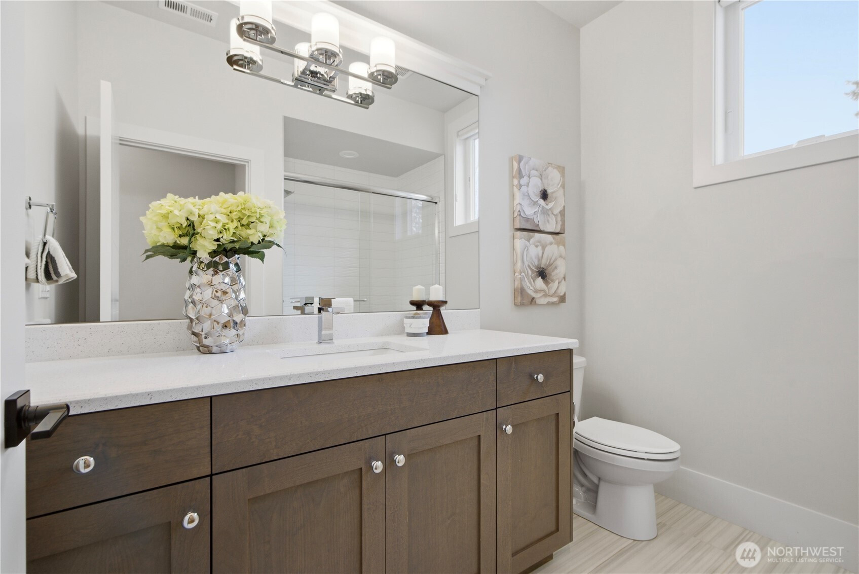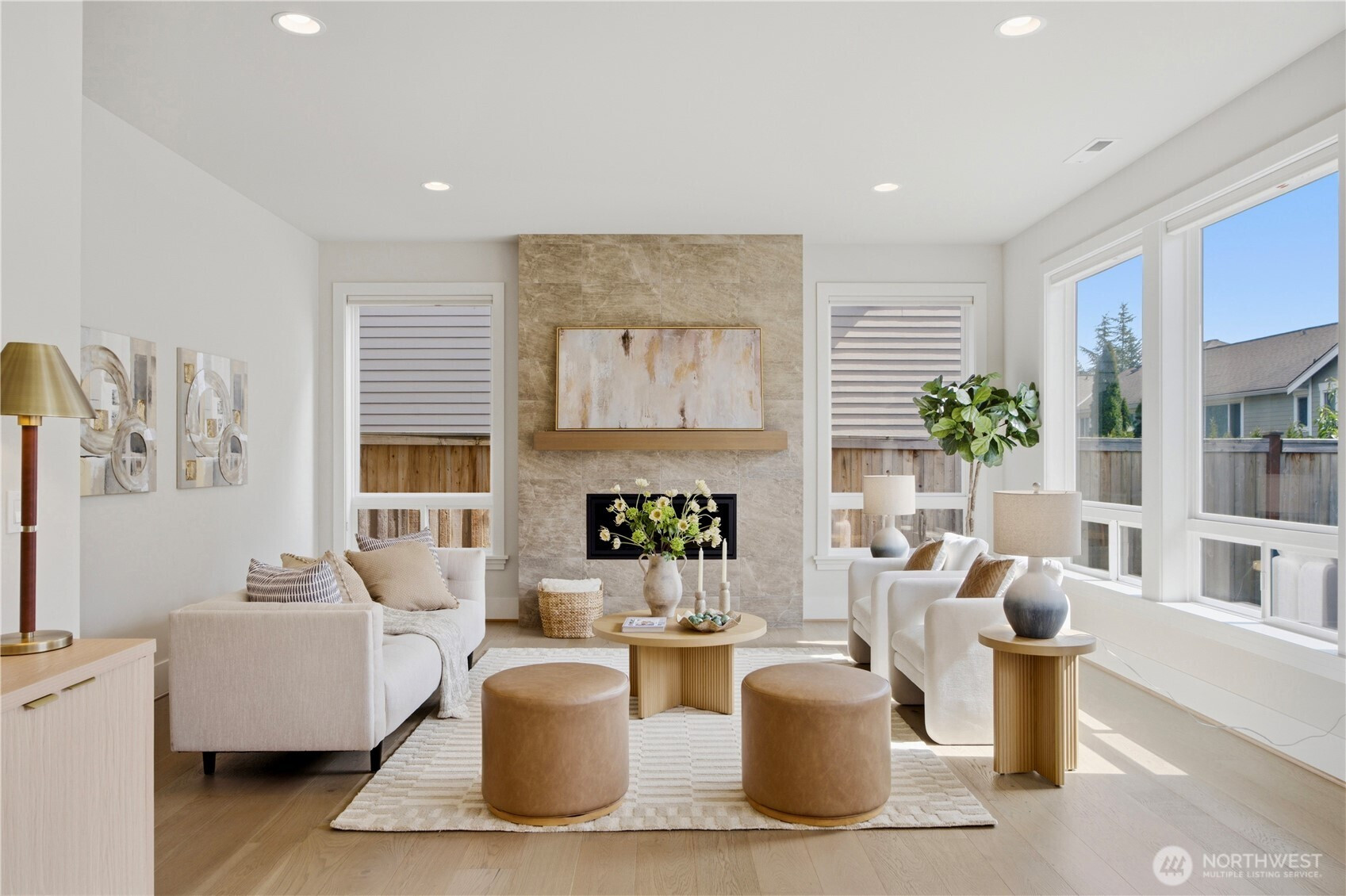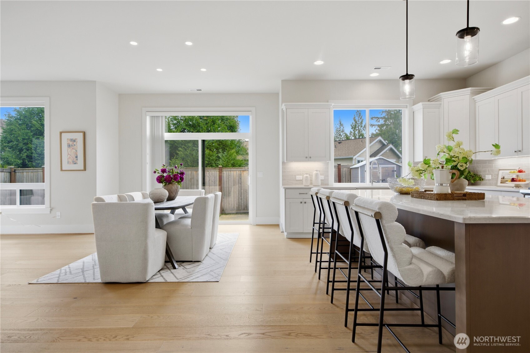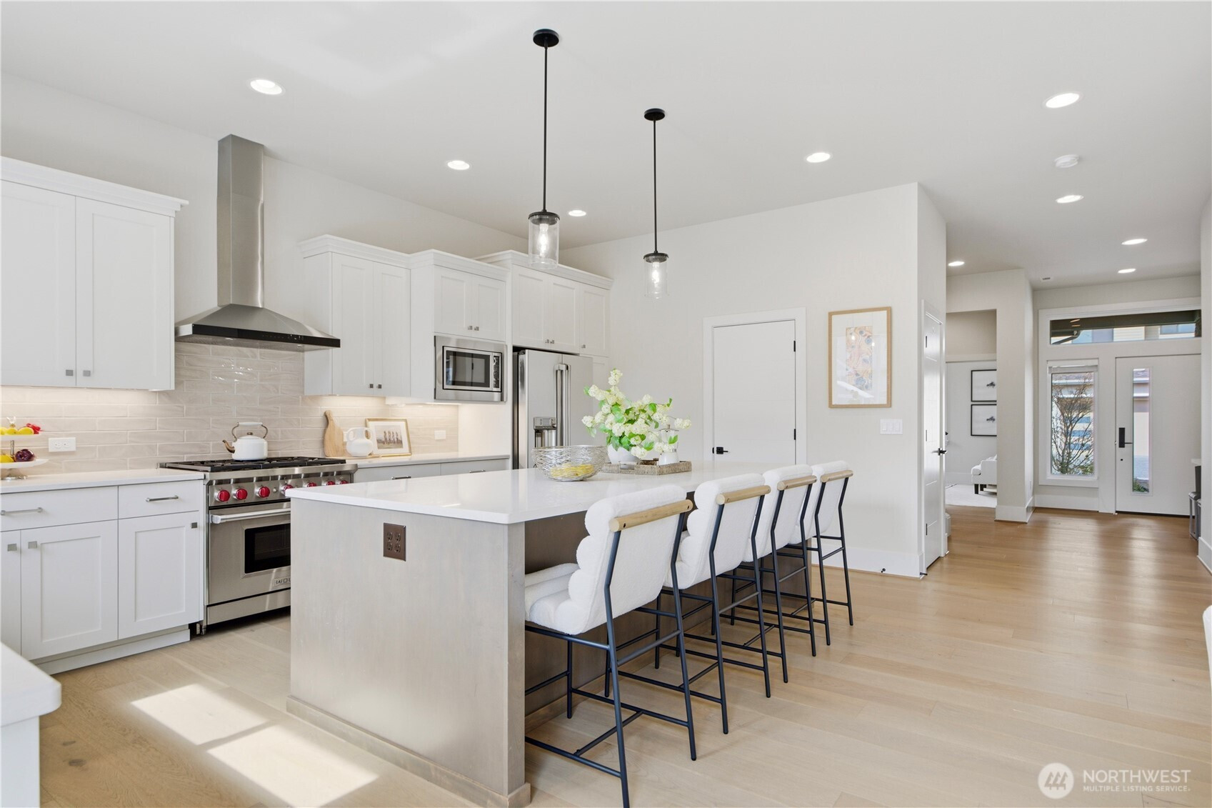 Legendary William Buchan quality in Tofino—an exclusive 6-home cul-de-sac enclave! This 2023-built masterpiece backs to a serene greenbelt, offering the perfect blend of luxury and privacy. The light-filled Great Room floor plan features wide-plank engineered hardwoods, a cozy gas fireplace, and a chef’s kitchen complete with a Wolf range, custom cabinetry, and premium slab quartz. Main floor includes a versatile guest suite/office with an adjacent 3/4 bath. Retreat upstairs to the luxurious primary suite featuring a spa-like bath with a freestanding soaking tub and custom closet organizers. Three additional bedrooms and a bonus room provide ample space for everyone. The bonus room can also be the 5th bedroom. Energy-efficient hybrid heating/cooling and a fully fenced, low-maintenance yard with a large patio. Prime Sammamish Plateau location just minutes from Pine Lake Village, transit, and I-90. Award-winning Issaquah Schools: Sunny Hills, Pine Lake, and Skyline High.