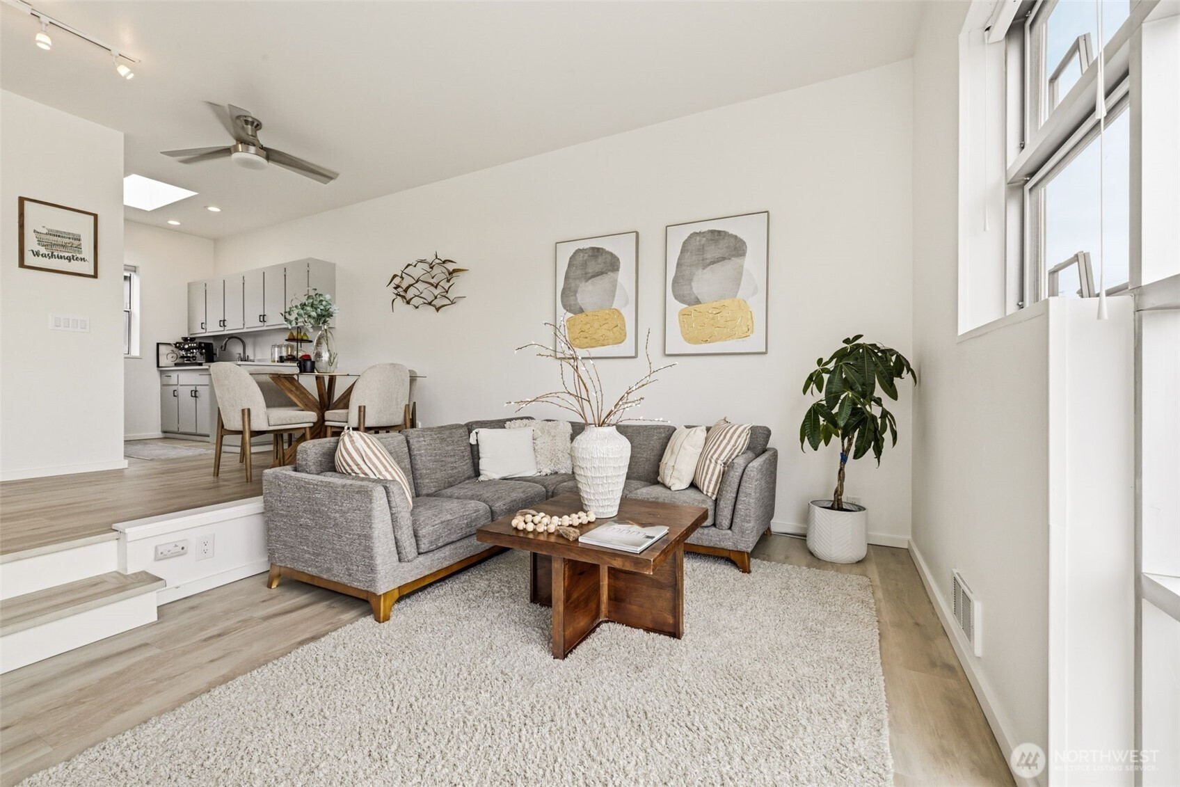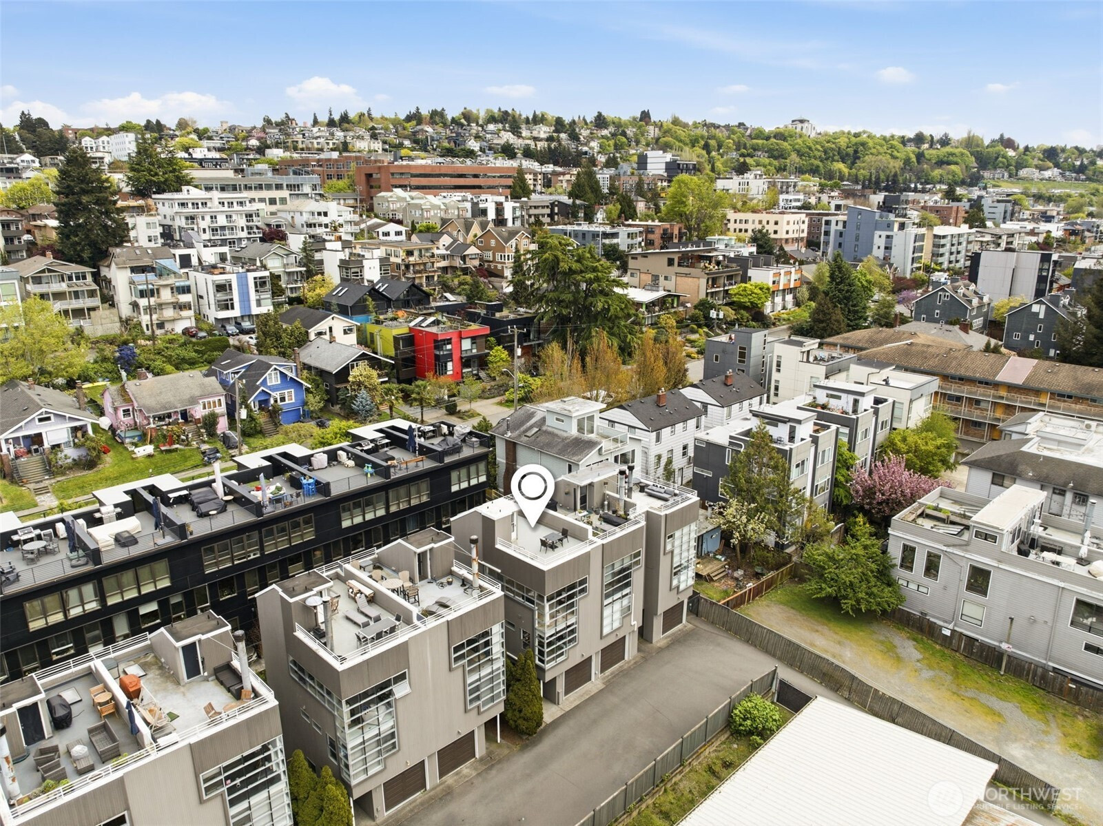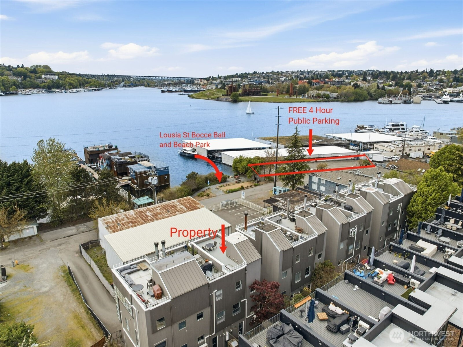 Eastlake waterfront is one of the city's most treasured & quaint neighborhoods. Come and see how locals experience a small-town beach life all while being in the heart of the city. Several beach pocket parks allow for sunbathing, SUP & kayak launch, bocce ball tournaments & picnics. Rogers Playfield serves as the hub for dog & playground aficionados alike. Pete’s Market is just a short walk away past the houseboats for your essentials and an unrivaled wine selection. This rare & coveted floorplan is designed for enjoyment, inside & out. Unwind or host a July 4th fireworks watch party on the expansive rooftop deck. Western-facing views provide longer sunshine & exquisite sunsets. The open-concept top floor living ensures constant & dynamic daily views from early AM crew practice, summer sailboat races, Xmas ship parades, seaplanes & more, all from the cozy seat in your home or on your roof top deck. The TH has a mini-split heating/AC system which will keep you comfortable all year round. Just off the garage is your laundry room opening up to your private, fenced garden oasis with a side yard for housing SUPs, kayaks or a dog run. The garage has room for your car and storage plus an add’l designated parking spot in front of the unit for you or a guest. This remodeled townhome is well maintained with premium laminate wood flooring, quartz counters, new stove/oven, remodeled bathrooms and a new flat roof.
