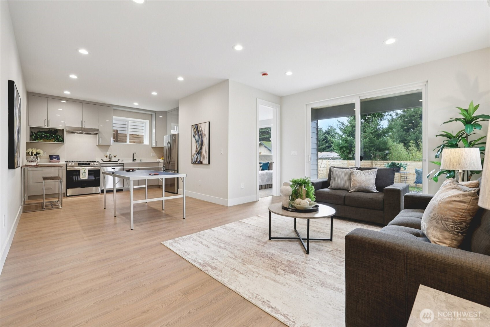 Welcome to this beautifully crafted custom-built two-story home with a fully finished basement, offering flexible living and excellent rental potential. The open-concept main floor features a spacious living area along with a full bedroom and bathroom, ideal for guests or multi-generational living. The home showcases engineered hardwood floors, quartz countertops, stainless steel appliances, and stylish tile bathrooms, combining modern finishes with quality construction. The lower level includes its own full kitchen, bedroom, bathroom, and living room, making it perfect for rental income, extended living space, or a private guest suite. Enjoy the freedom of no HOA and a convenient location just minutes from everyday amenities. The home is within walking distance to shops, bus routes, and an elementary school, and only 5 minutes to the Sounder Train, Downtown Kent, and Hwy 167, providing easy commuting access.