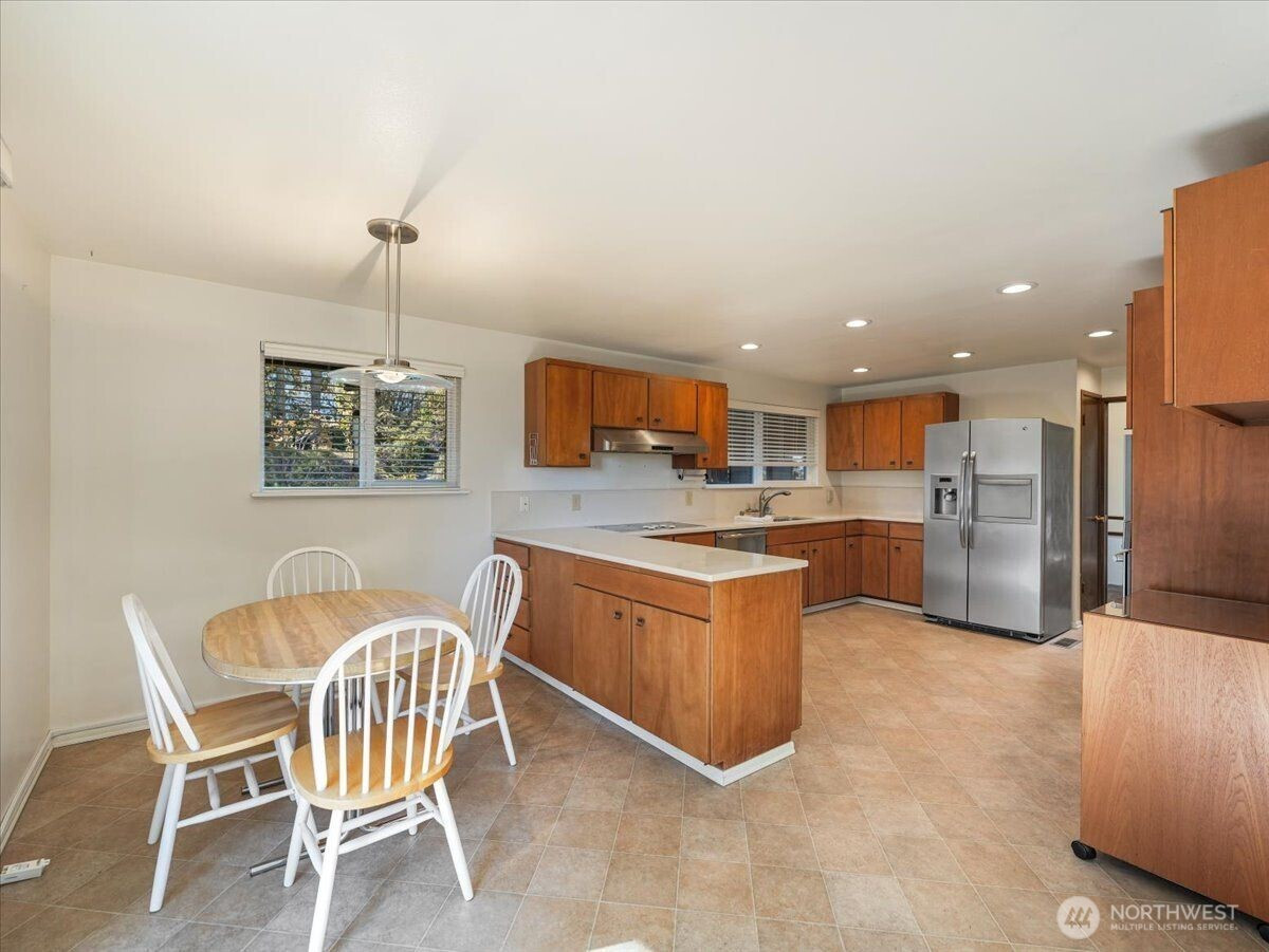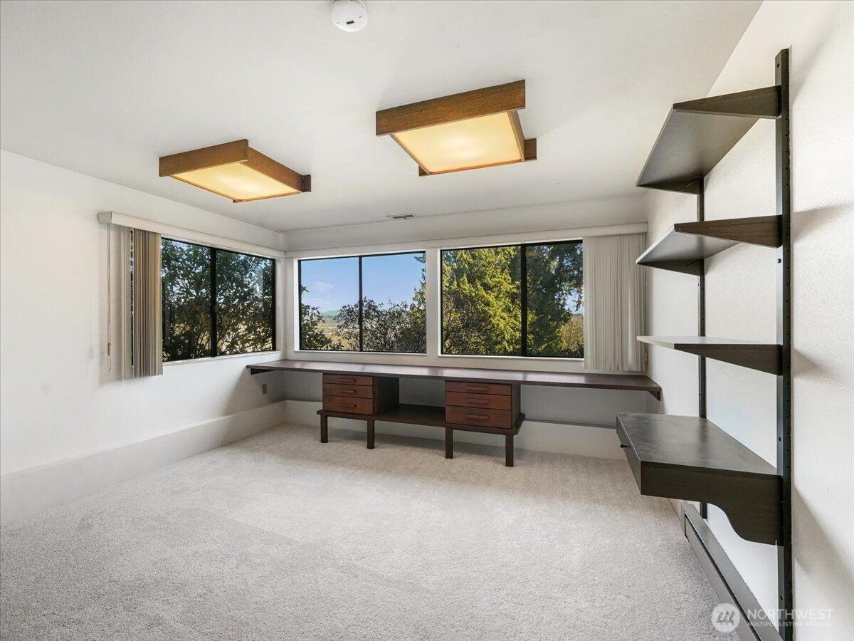Location! Private custom build mid-century rambler with daylight basement offering breathtaking views of Mt. Rainier, the Cascades, & sweeping territorial valley views from your deck perfect for enjoying the scenery year-round. Property sits on a 1.05 acres lot in unincorporated King County. This 3,440 SF home blends privacy, natural light, & timeless design. Expansive windows illuminate formal living & dining rooms, 1/2 guest bath, three real wood-burning fireplaces, built-ins, window-seat storage. The main-level primary suite features a private bath, walk-in closet. 2nd bedroom/office. The chef’s kitchen boasts quartz counters, stainless steel appliances, pull-out drawers, large pantry, & an eating area that opens to an additional deck for outdoor entertaining. Downstairs, a spacious family room, two bedrooms, a full bath & ¾ bath provide versatile living for guests or multi-generational households. Large laundry room. Outdoors, mature 60-year rhododendrons & azaleas create beauty & privacy, complemented by fruit trees, berry patches, raised beds, & wooded areas for a serene retreat. Car enthusiasts will enjoy a 4-car garage with shop, 2-car carport, RV parking, & loft storage. Additional highlights include, lots of windows & natural light, skylights, new furnace, heat pump, double-pane windows, central vacuum, recessed lighting, dark room & a lot storage. Quick access to I-5 and Hwy 167.