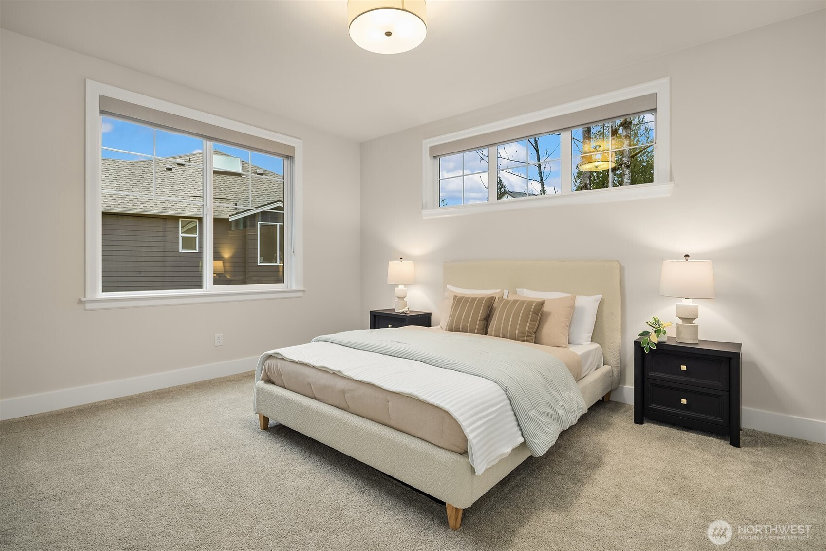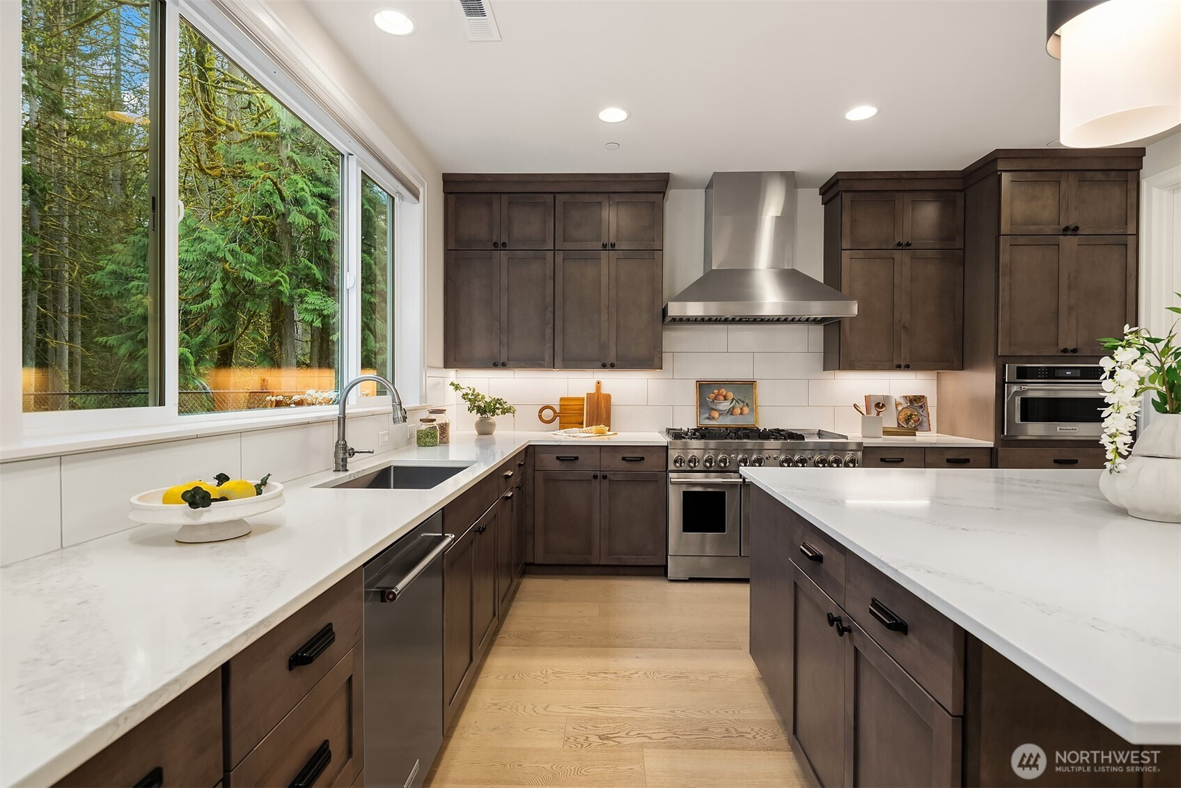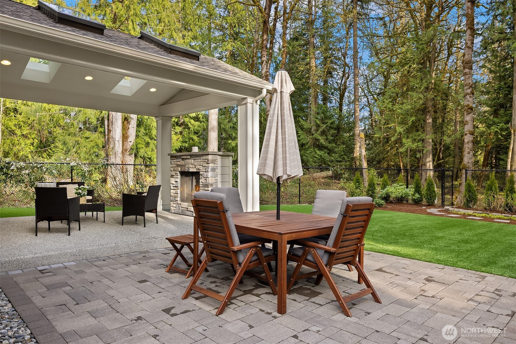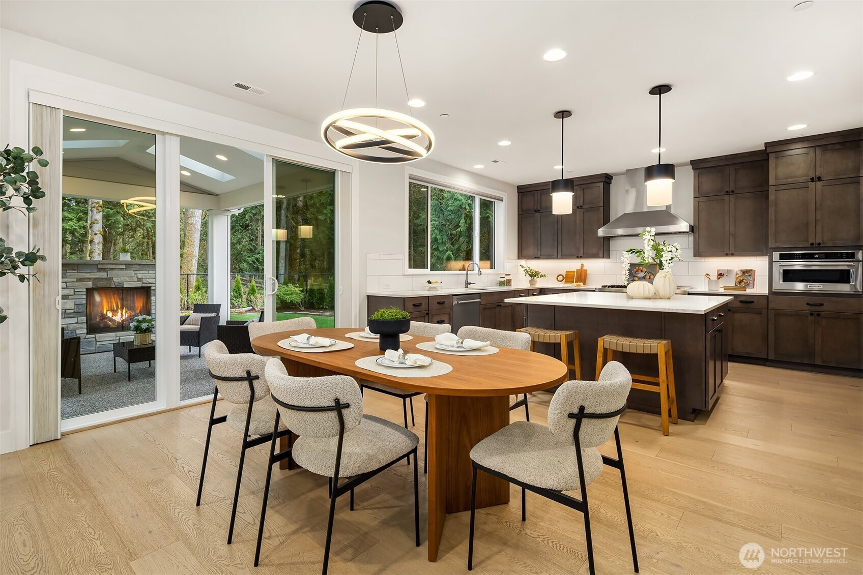 Better than new Murray Franklin resale in a beloved Sammamish neighborhood, offering the perfect blend of sophisticated design and natural serenity. Tucked away at the end of a quiet drive and bordered by protected green belts on three sides, this exceptional 4-bedroom, 3.5-bath home provides rare privacy and peace of mind. Step inside to an open-concept layout filled with high-end finishes and effortless comfort. The chef’s kitchen shines with premium appliances, ideal for everyday living and entertaining. Enjoy year-round comfort with central A/C, while the luxurious primary suite serves as a true retreat, complete with a spa-inspired bath featuring heated floors. Designed for modern living, this Smart Home-ready residence includes Ethernet in every room, ultra-fast Fiber internet, and whole-house blinds with motorized and automatable treatments across the main level. The garage is equipped with a dedicated EV charging outlet. Outdoor living is effortless with professionally designed, low-maintenance landscaping and premium artificial turf for year-round greenery. Located within the highly rated Lake Washington School District and less than a mile to WA-202 for easy access to Redmond and Bellevue, this home offers an unmatched combination of privacy, convenience, and lifestyle.