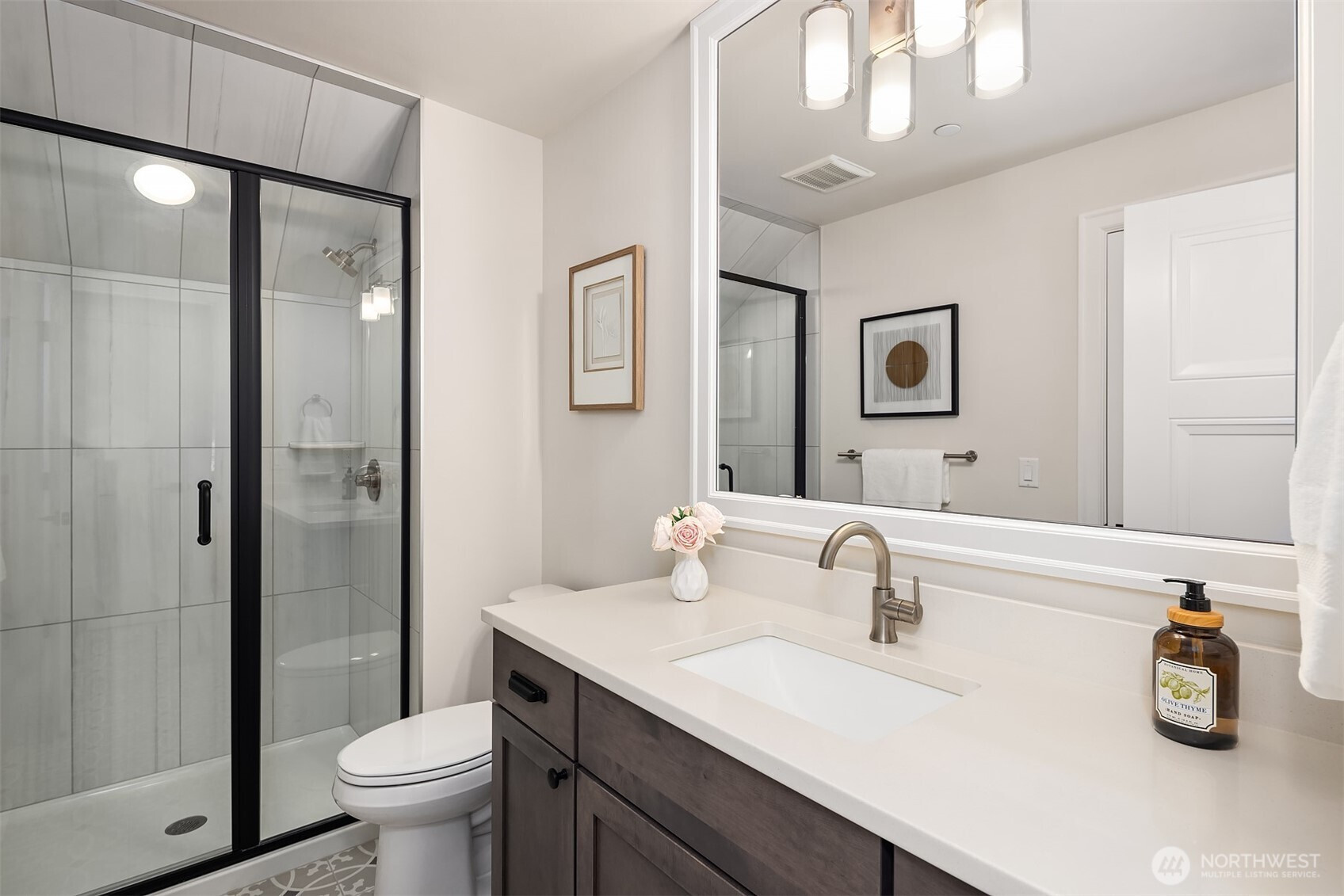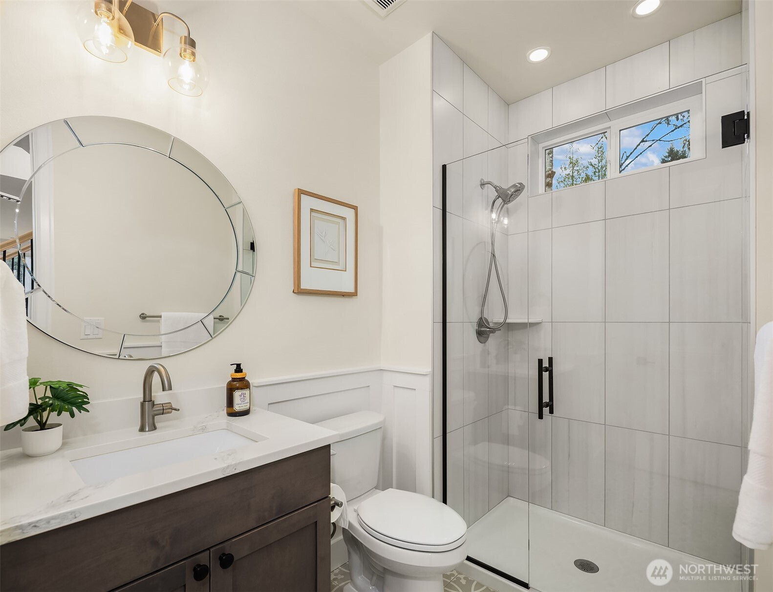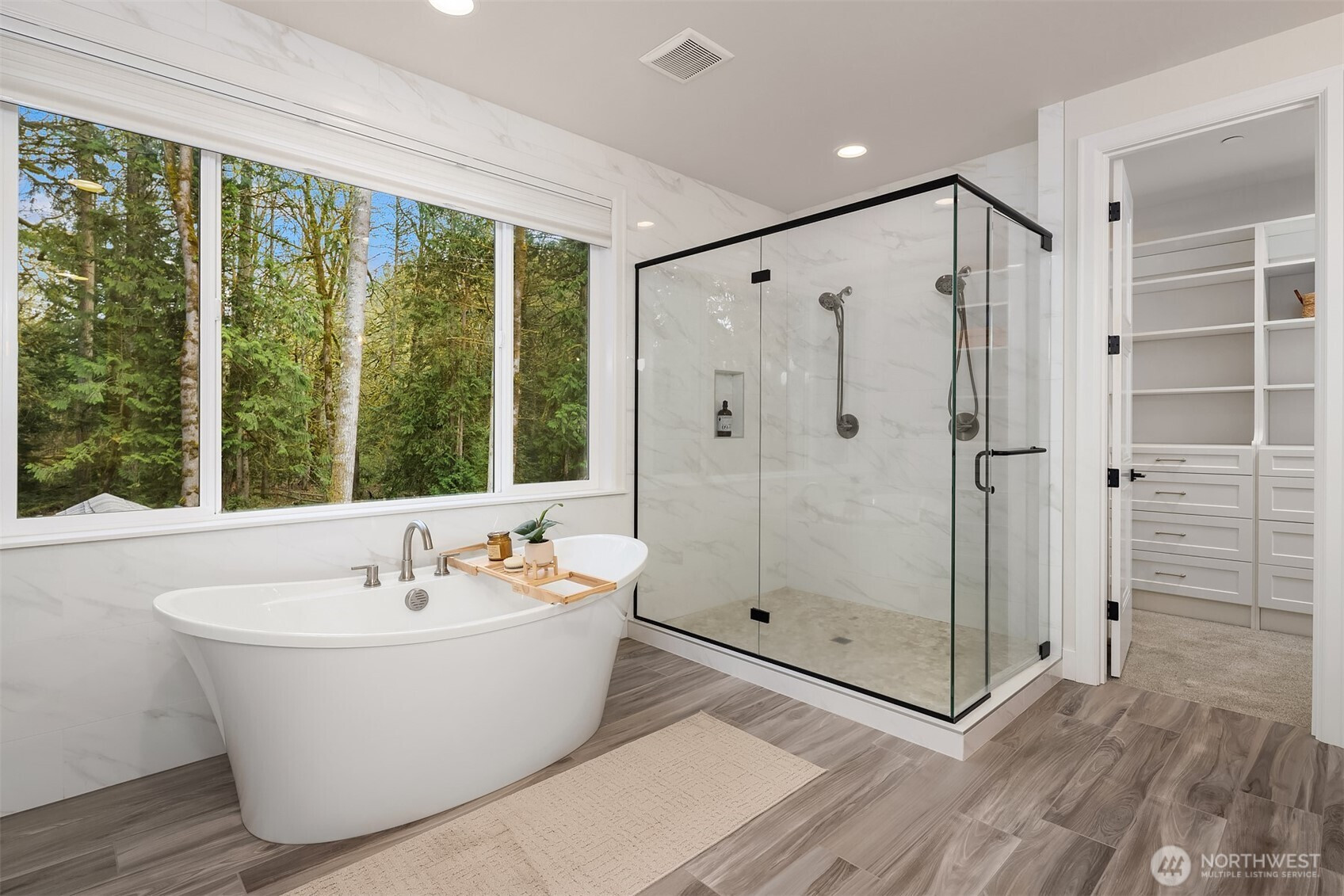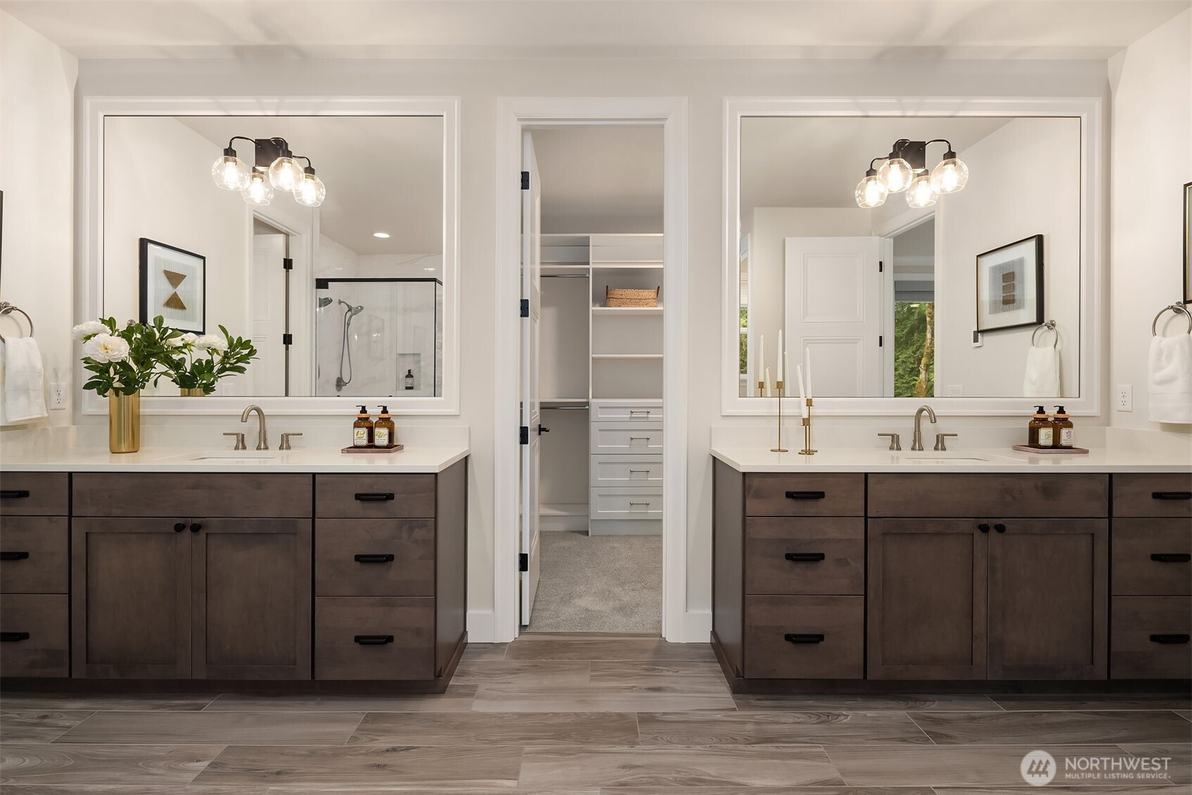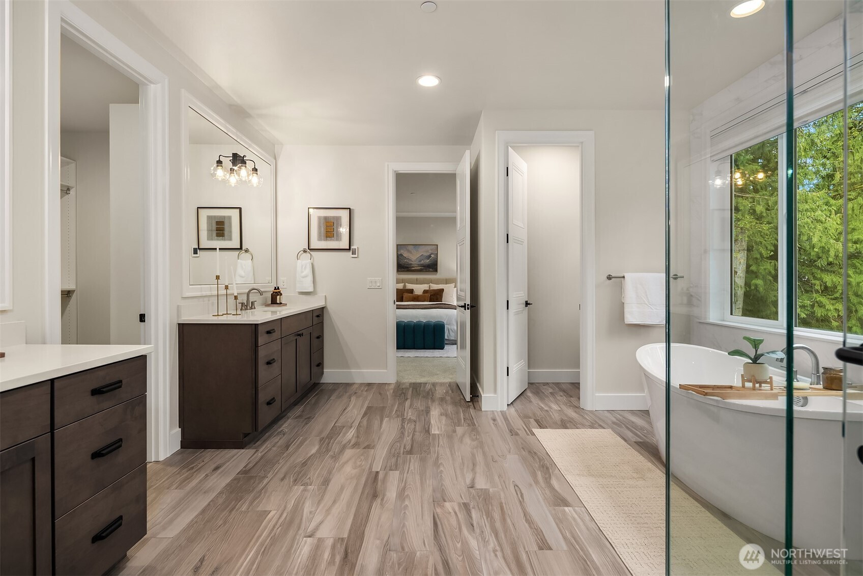 Better than new Murray Franklin resale in a beloved Sammamish neighborhood, offering the perfect blend of sophisticated design and natural serenity. Tucked away at the end of a quiet drive and bordered by protected green belts on three sides, this exceptional 4-bedroom, 3.5-bath home provides rare privacy and peace of mind. Step inside to an open-concept layout filled with high-end finishes and effortless comfort. The chef’s kitchen shines with premium appliances, ideal for everyday living and entertaining. Enjoy year-round comfort with central A/C, while the luxurious primary suite serves as a true retreat, complete with a spa-inspired bath featuring heated floors. Designed for modern living, this Smart Home-ready residence includes Ethernet in every room, ultra-fast Fiber internet, and whole-house blinds with motorized and automatable treatments across the main level. The garage is equipped with a dedicated EV charging outlet. Outdoor living is effortless with professionally designed, low-maintenance landscaping and premium artificial turf for year-round greenery. Located within the highly rated Lake Washington School District and less than a mile to WA-202 for easy access to Redmond and Bellevue, this home offers an unmatched combination of privacy, convenience, and lifestyle.