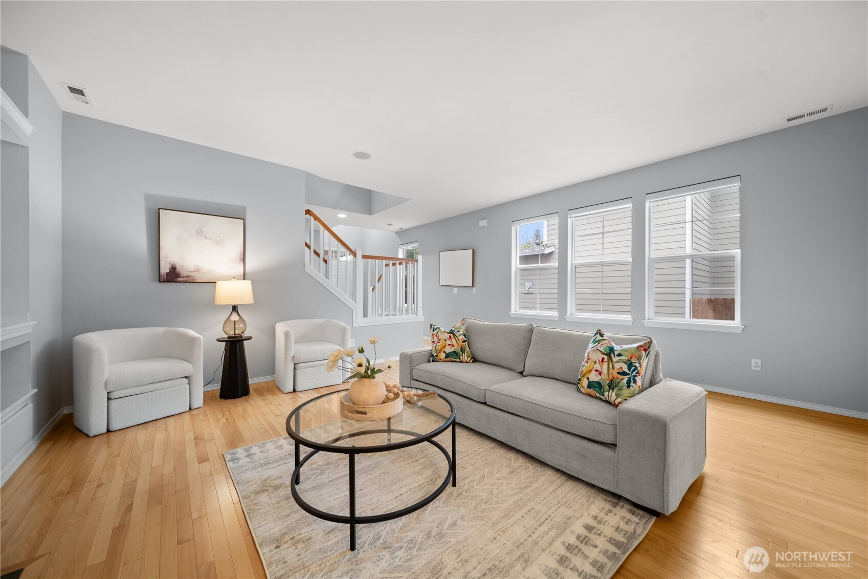 HUGE PRICE REDUCTION!!! Welcome to this beautiful South facing home in sought after Laurels community! This well-maintained 2,340 SF home featuring great room concept, gleaming hardwood floors, main floor office/den with built-in desk/cabinets. Chef's kitchen with slab granite counters, high end SS appliances, Viking gas range & center island. Master suite with 5 piece bath & walk in closet. 2 more good size bedrooms and a open loft for rec/media can easily convert to 4th bedroom. Private fully fenced yard. Professional EV charger in the 2-car garage. Roomy driveway for ample parking. Great location! Close to parks & lakes. Top rated schools. Pre-inspected. Motivated seller.