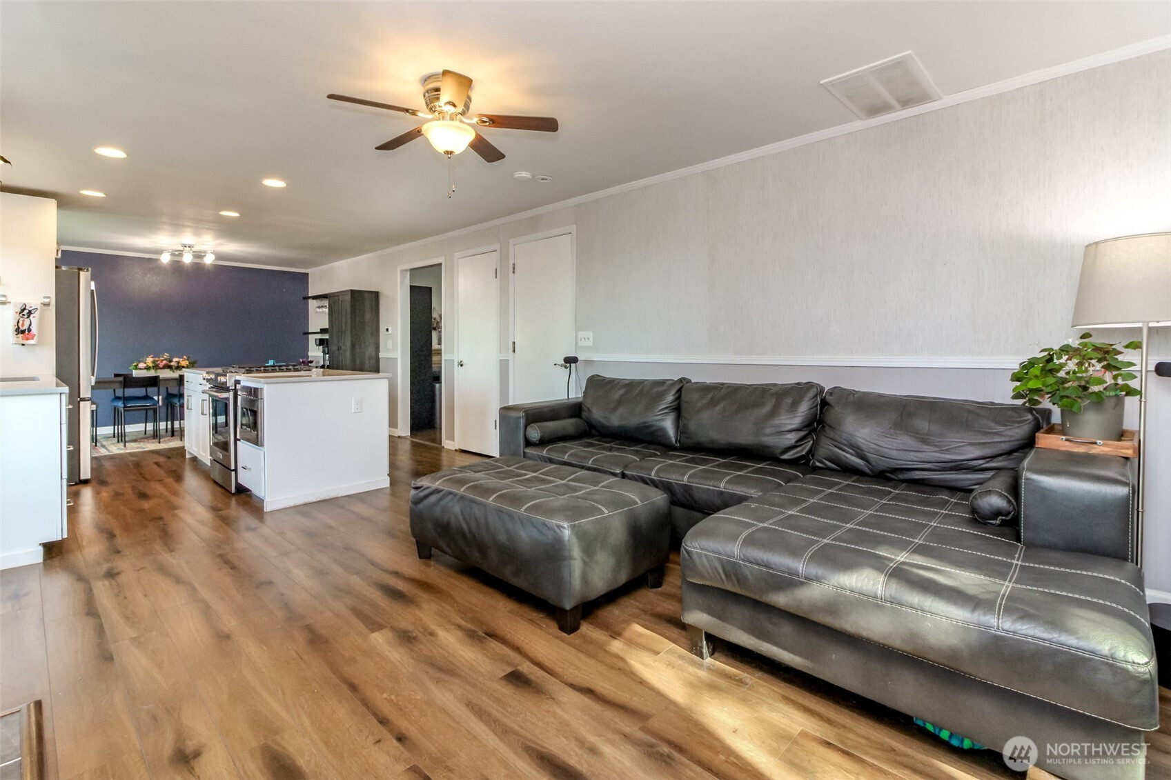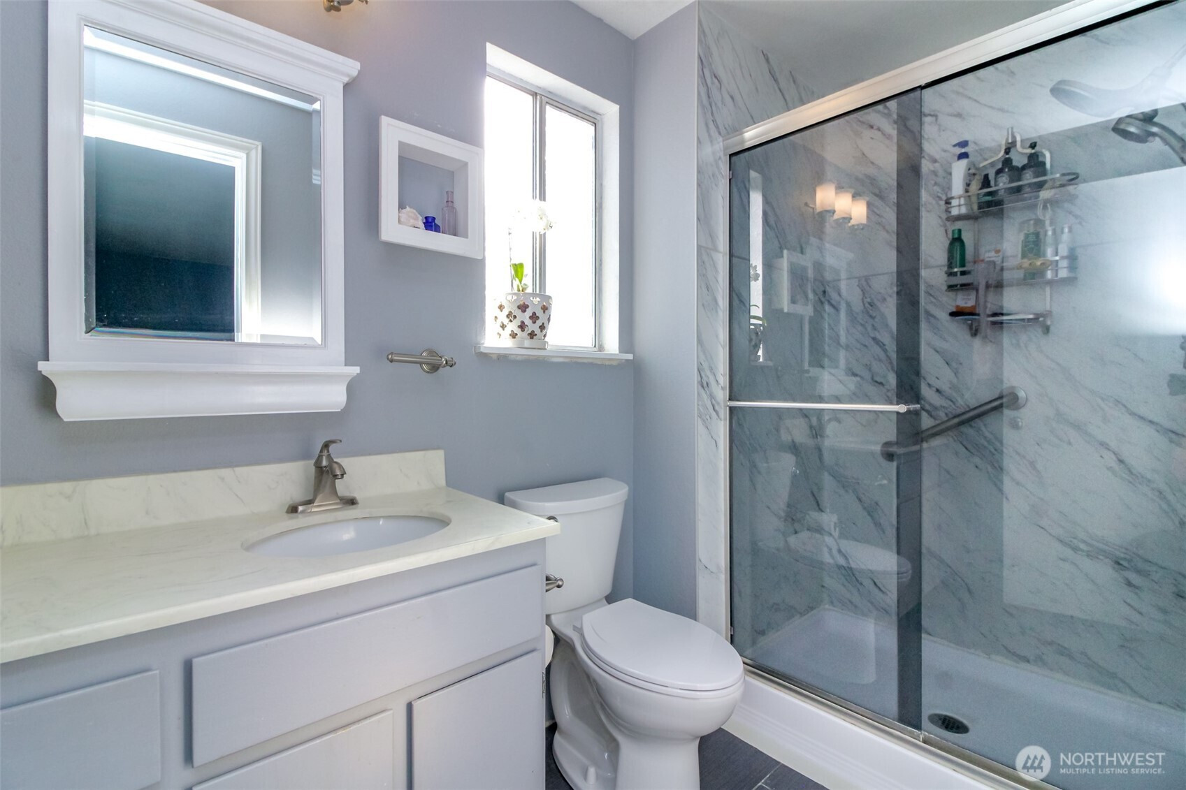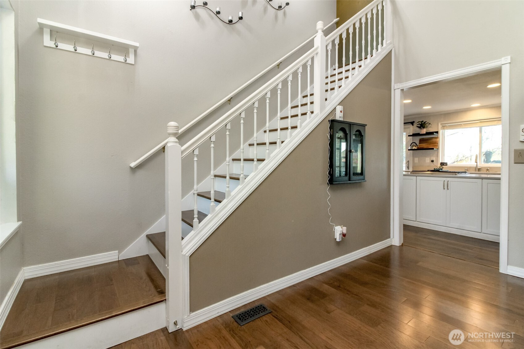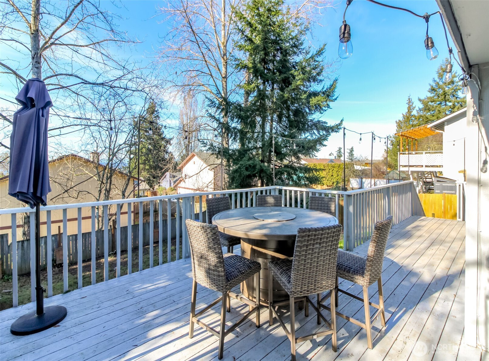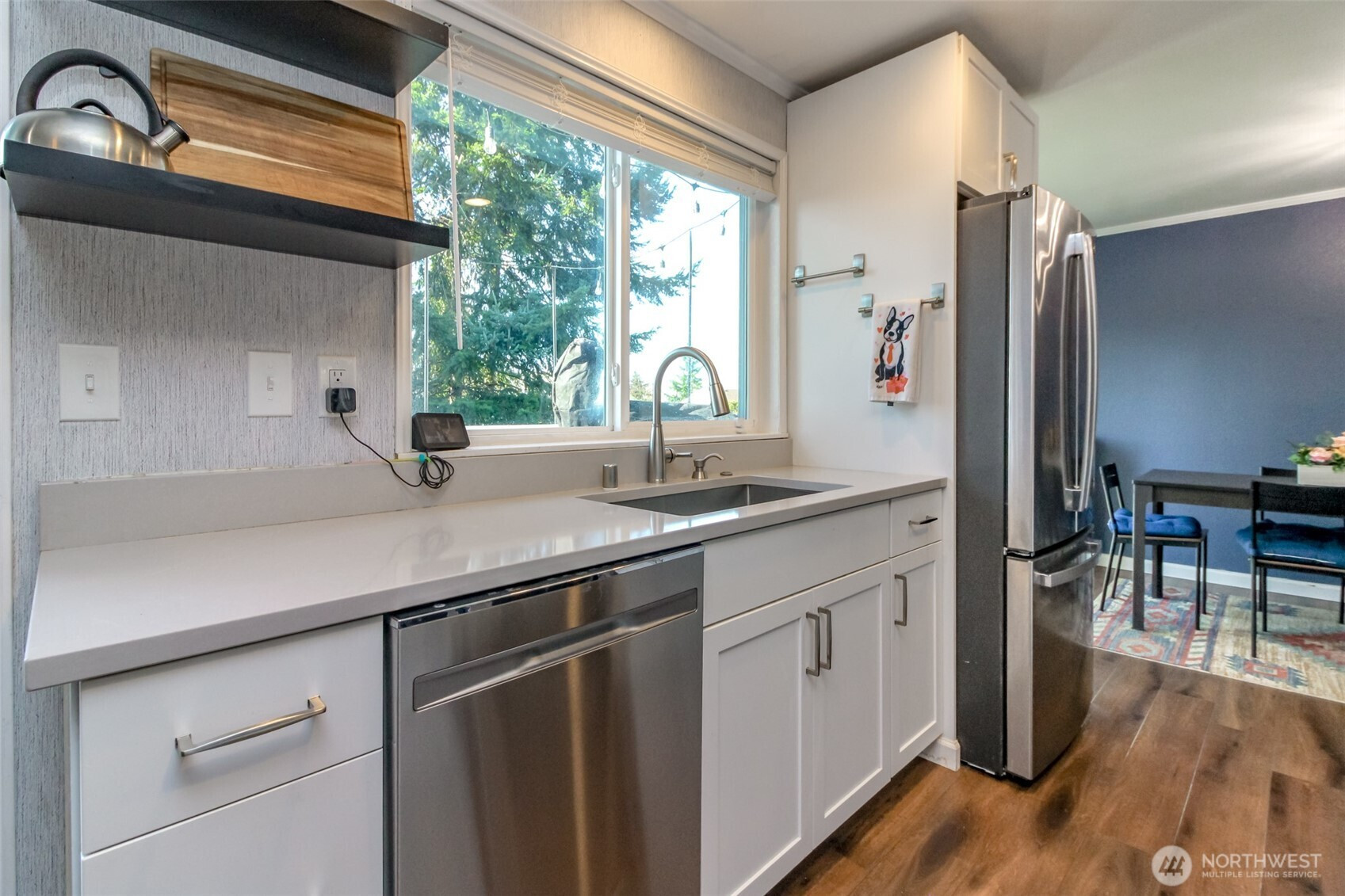 Glimpses of water, rare RV parking, exceptional privacy, and true turn-key living — this is the one you’ve been waiting for. From the moment you enter, vaulted ceilings and an elegant banister create a dramatic yet welcoming first impression. The heart of the home is the stunning kitchen — featuring a generous prep island, quartz countertops, stainless steel appliances, and bright white shaker cabinets that blend style with functionality. Fresh exterior paint, updated windows, and gorgeous LVP flooring showcase the pride of ownership throughout. Abundance of windows invite sunshine into every corner, filling the home with warmth and natural brightness. Backyard is fully fenced and thoughtfully designed with a spacious wood deck — ideal for entertaining while enjoying peaceful peak-a-boo water views and added privacy. Bring the RV, boat, or extra vehicles — dedicated RV parking and ample off-street space make this home as practical as it is beautiful. the generous lot provides privacy and room to breathe. Located just minutes from Light Rail, I-5, and 167 for effortless commuting. Walking distance to Highline Community College. You’ll enjoy combination of upgrades, privacy, parking, and water close by which is hard to find — convenience without compromising serenity. Don’t miss your opportunity.