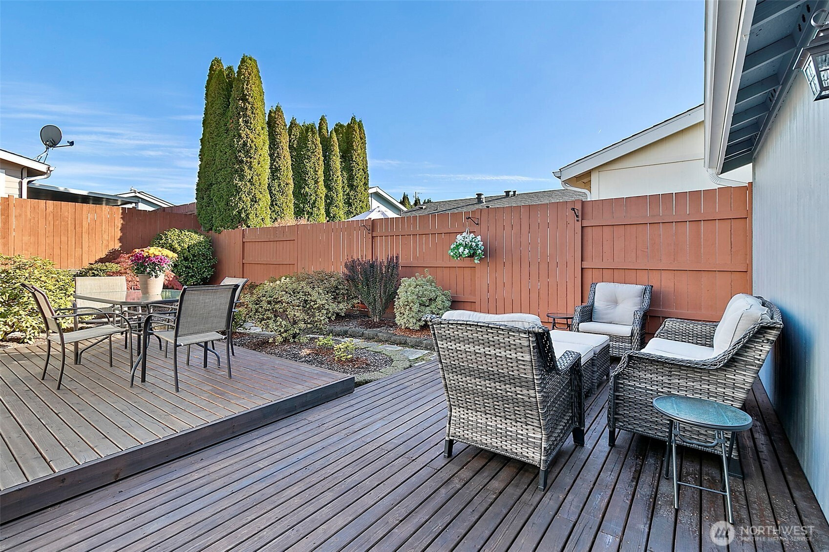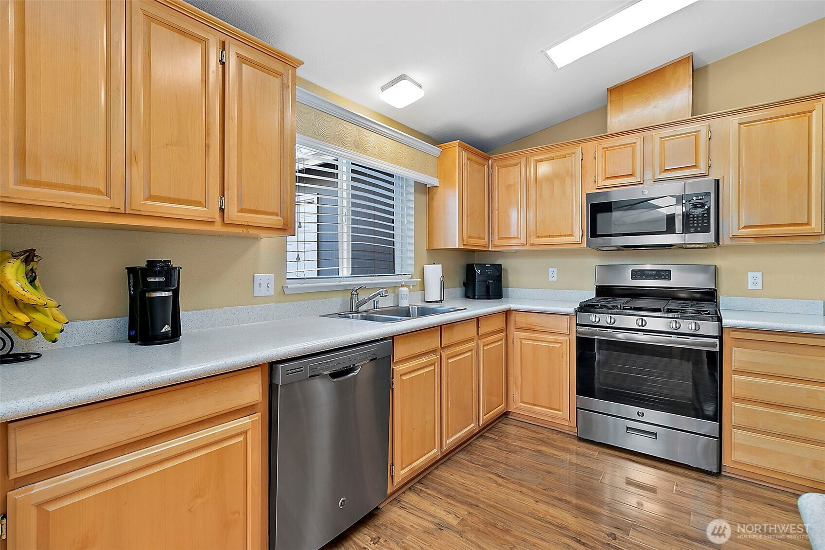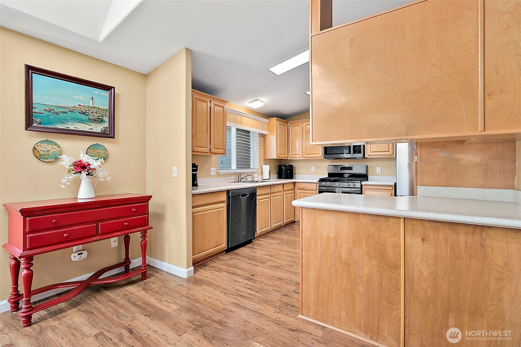 Welcome to sought-after Wilderness Villa, a vibrant 55+ community! This beautifully maintained 3-bed, 2-bath home offers comfort, style, and convenience just steps from the clubhouse and amenities. The spacious living area features vaulted ceilings, skylights, and a cozy gas fireplace that fills the home with warmth and natural light. The bright kitchen boasts newer SS appliances, abundant cabinetry, and plenty of counter space. Relax or entertain on the private, low-maintenance backyard deck surrounded by easy-care landscaping. The primary suite includes a walk-in tub and separate shower for added comfort. Additional highlights include a full laundry room, two-car garage, and prime location near shopping, dining, and medical services.
