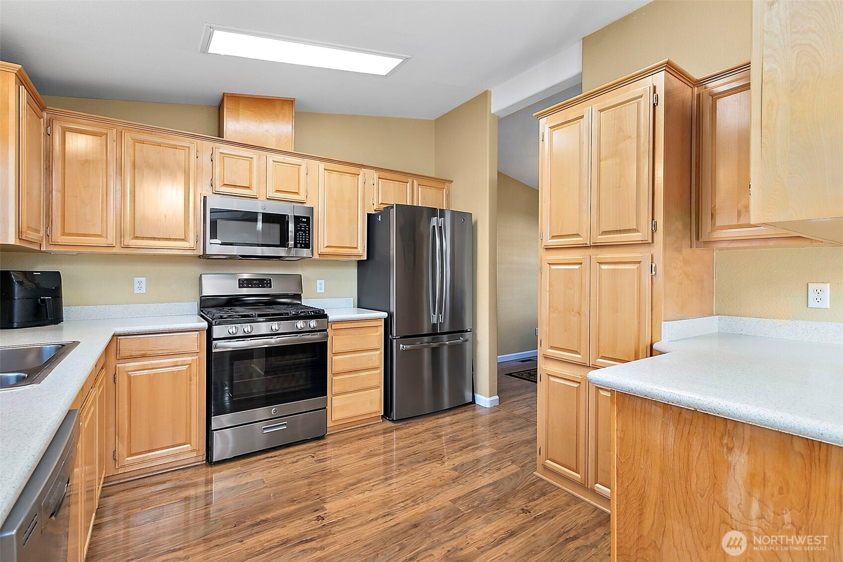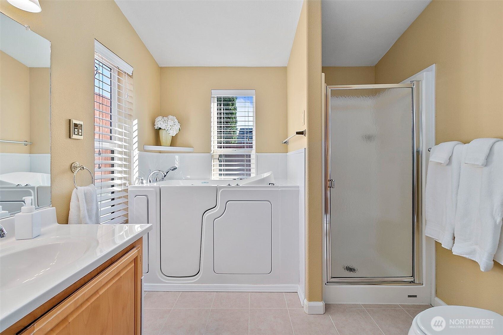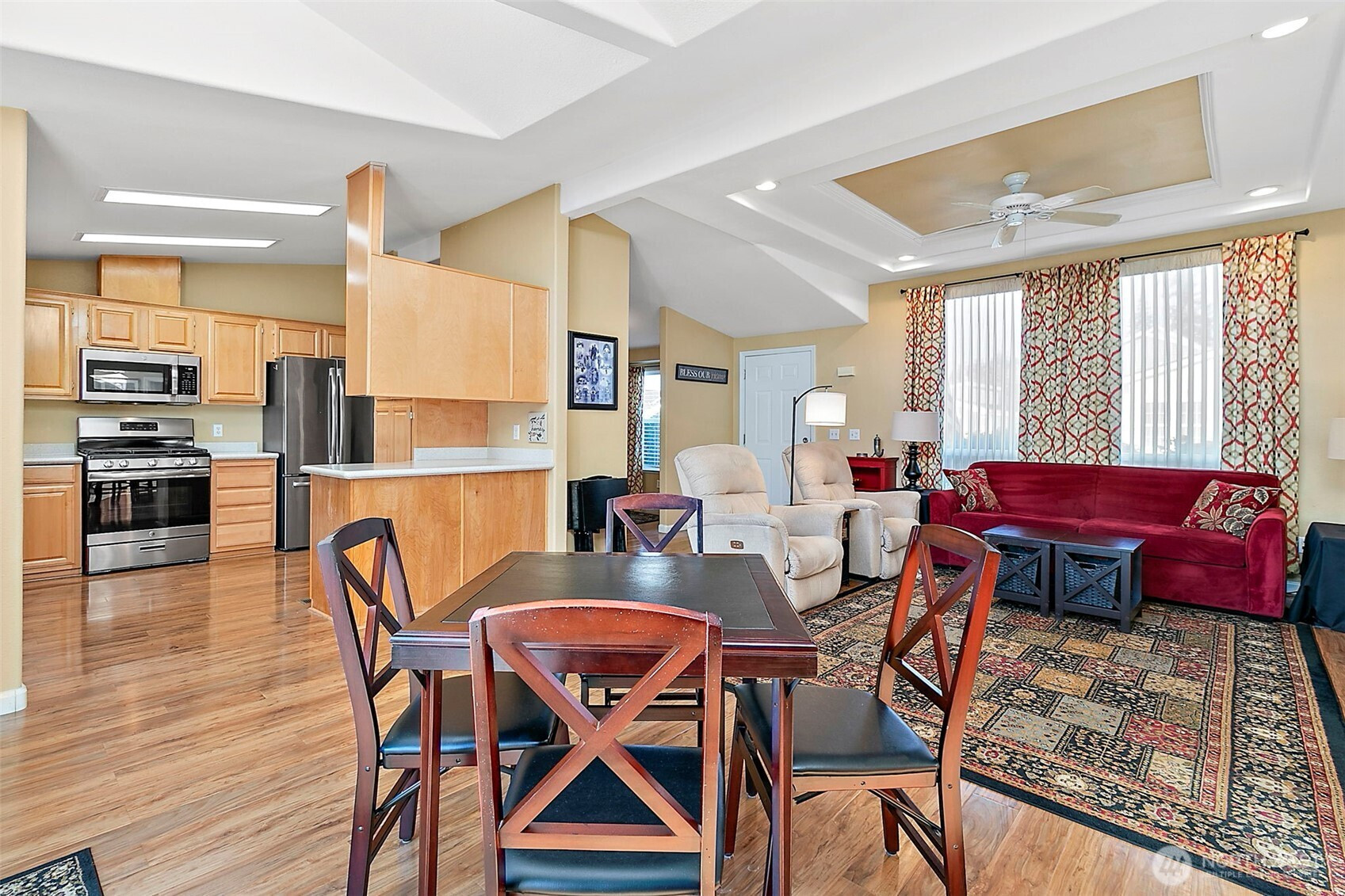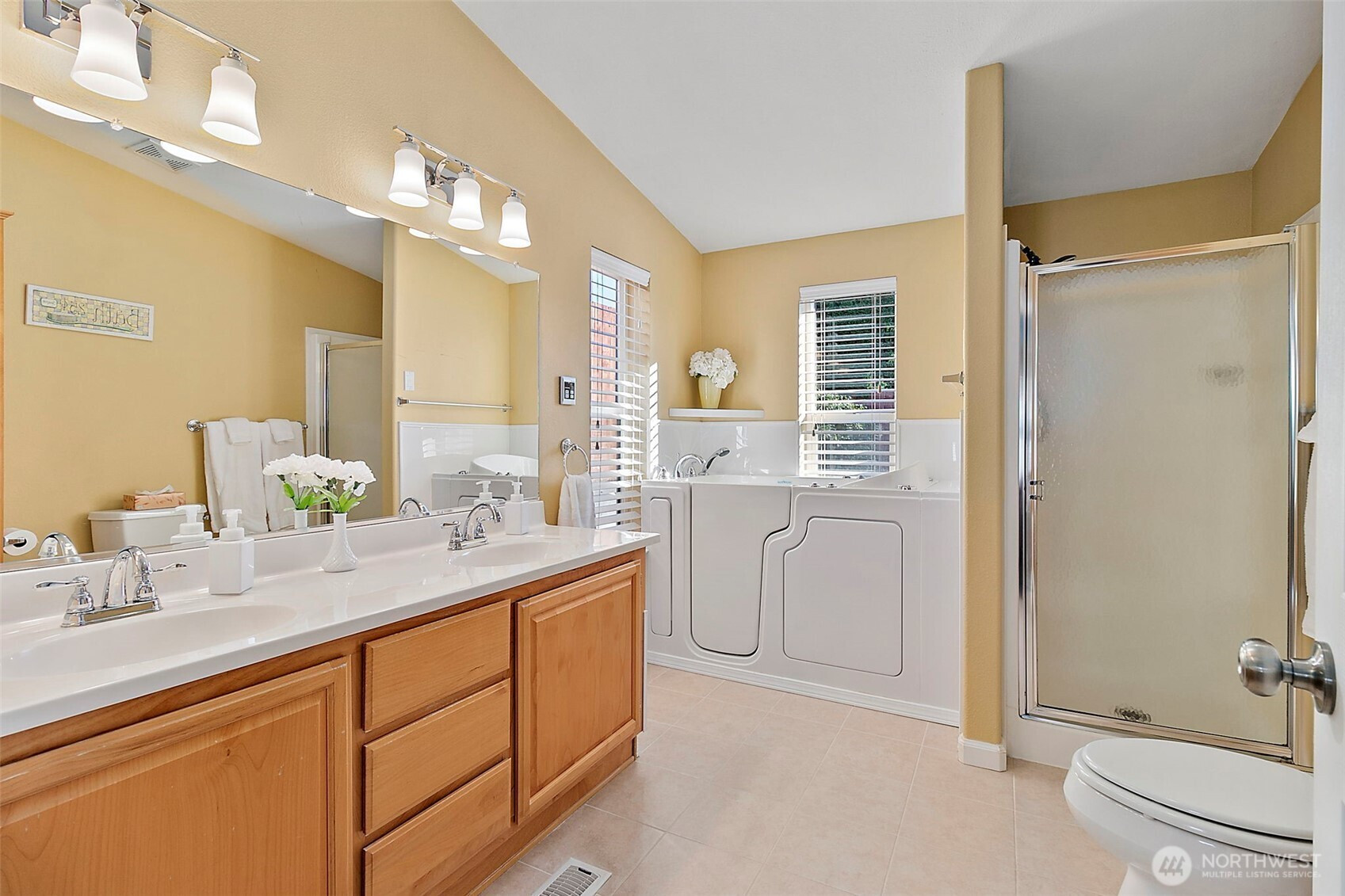 Welcome to sought-after Wilderness Villa, a vibrant 55+ community! This beautifully maintained 3-bed, 2-bath home offers comfort, style, and convenience just steps from the clubhouse and amenities. The spacious living area features vaulted ceilings, skylights, and a cozy gas fireplace that fills the home with warmth and natural light. The bright kitchen boasts newer SS appliances, abundant cabinetry, and plenty of counter space. Relax or entertain on the private, low-maintenance backyard deck surrounded by easy-care landscaping. The primary suite includes a walk-in tub and separate shower for added comfort. Additional highlights include a full laundry room, two-car garage, and prime location near shopping, dining, and medical services.