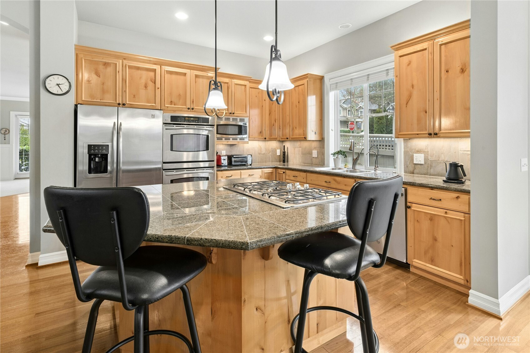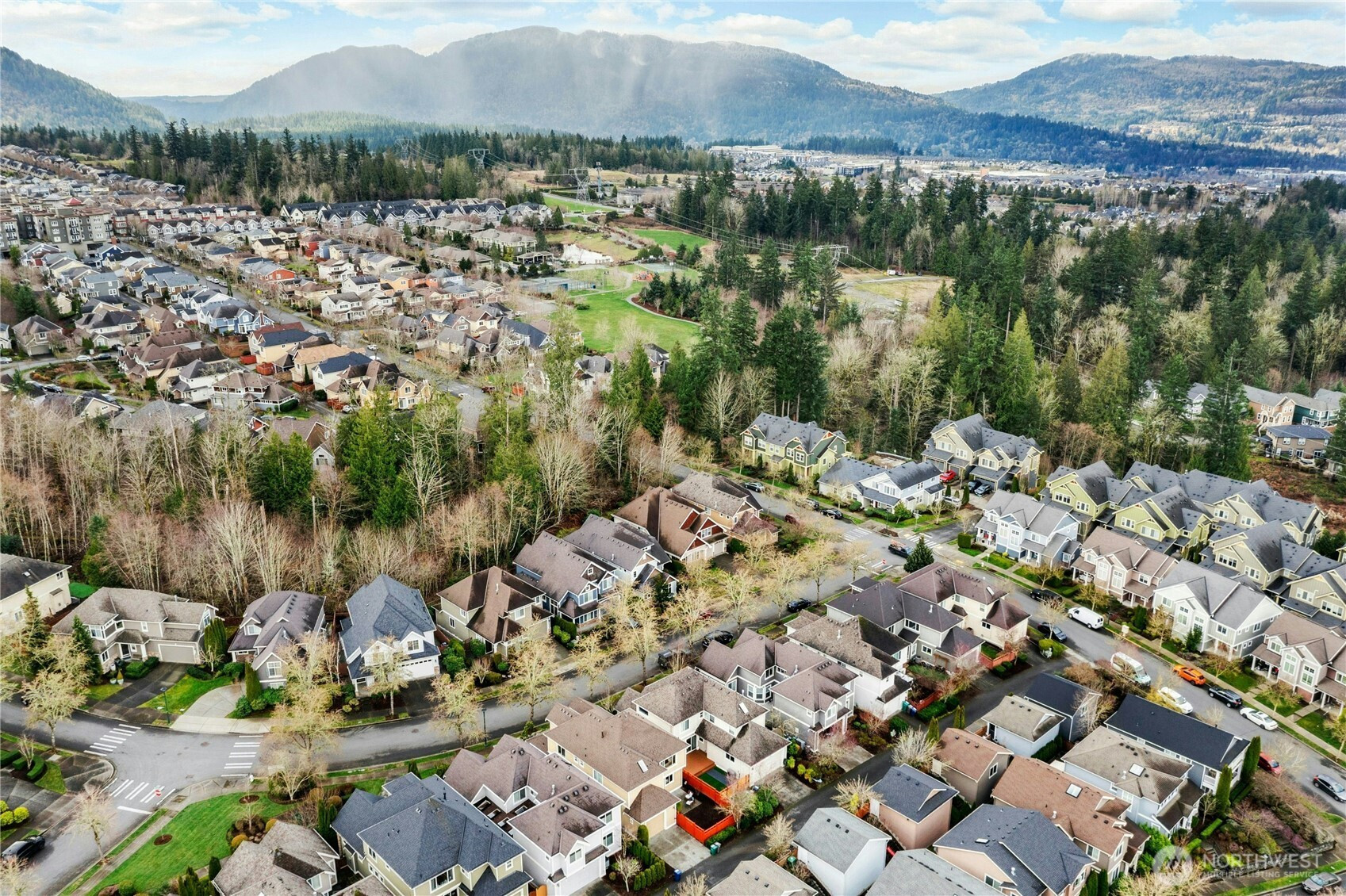 New England style craftsman and former Specialized model home located on prime 30th Ave corner lot. Showcasing exceptional architecture and high-end finish work, this stunning residence welcomes with a formal rotunda foyer creating an impressive entry. The 10' ceiling design features an open main plan including formal dining and living rooms with double sets of French doors opening to covered patio - ideal for both everyday living and entertaining. A chef's kitchen with beautiful pine cabinetry, oak hardwood flooring, an expansive center island, and an inviting breakfast nook, also opens to the family room. A grand staircase leads to upstairs retreating to a private primary suite complete with sitting room, primary bath and walk-in closet. Upstairs finds a total of 4 bedrooms, with second bedroom ensuite, plus 3 full bathrooms and laundry room. The versatile bonus room with views could be used as a 4th bedroom with the Jack-and-Jill bathroom. Additional highlights include extensive millwork, custom inlays, wrought iron railings, expansive windows, vaulted ceilings, and built-in cabinetry. The exterior has been newly repainted and this home has been well maintained. Enjoy beautiful territorial views, a spacious two-car garage offering high ceiling height for future loft and/or storage capabilities. Steller Issaquah Highlands location on quiet street, yet close to parks, Grand Ridge Elementary and much more.