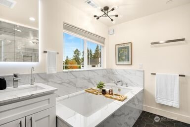 Welcome to this beautiful home. Top notch finishes meet you at the front door and take you thru ought the home. Tall ceilings and tall doors that make it feel even bigger. Quartz on the kitchen counter and the enormous island that can fit everyone around. all tile bathroom and heated floors. Primary bedroom has a personal steam shower great for our PNW weather or after a good workout. Deck in backyard covers you from any rain but the massive skylights let 100% of the sun thru for you to enjoy. Did I mention the ADU? Separate entrance and full size everything, with a 1,000SQFT 2 Bed you can use for yourself or rent out for potential passive income.