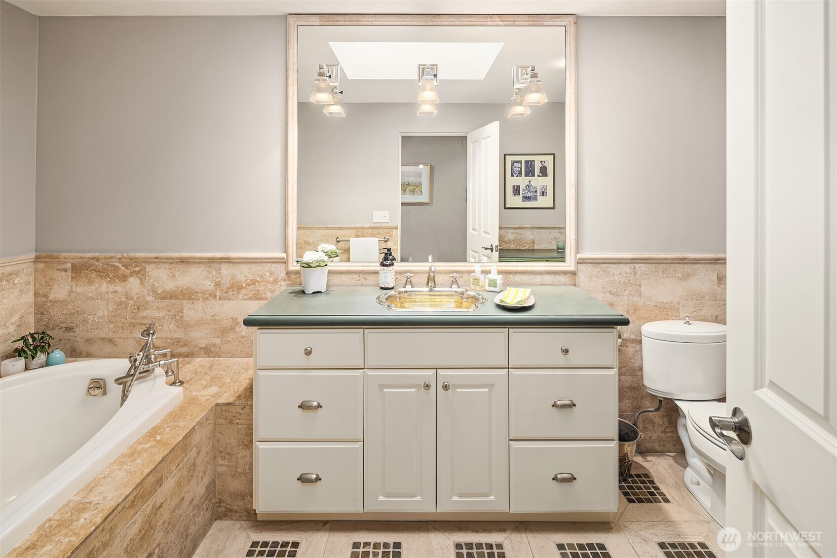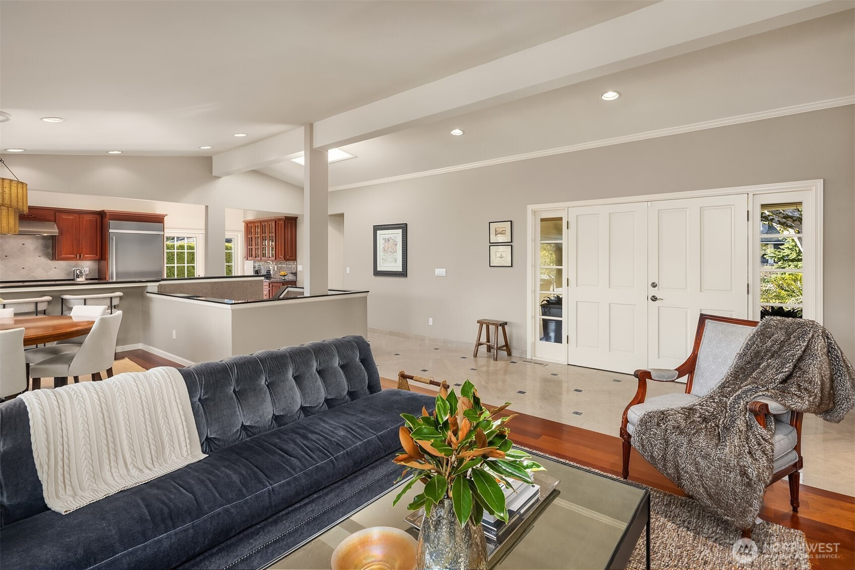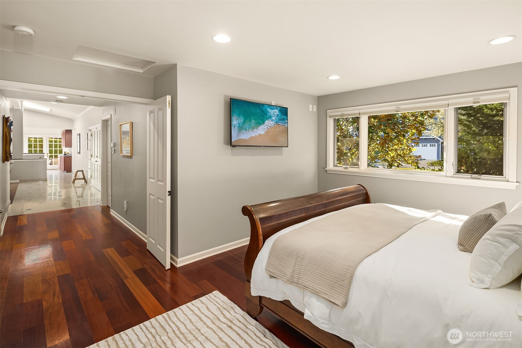 Offered for the first time in decades, this luminous daylight rambler is move-in ready and utterly worth the wait. Walls of windows bathe every room in natural light through every season, while an open floor plan creates an effortless flow between spaces — the kind that makes gatherings feel easy and everyday living feel gracious. The main floor strikes a perfect balance of warmth and refinement: gleaming white millwork, rich hardwood floors, and strong stone countertops set a tone that is both timeless and fresh. An East Coast sensibility runs throughout — classic without being fussy, elegant without trying too hard. Step outside to a generous deck or a separate dining patio, and the home extends beautifully into the outdoors. A private yard frames serene views of verdant Clyde Hill — lush green by day, and sparkly downtown Bellevue views by night. Five bedrooms across two levels offer remarkable flexibility for any stage of life. The primary suite is tucked thoughtfully on the main floor, delivering the ease and privacy of single-level living when you want it. Downstairs, a garden-level bonus room with a cozy fireplace invites slower evenings, while the adjacent office-gym keeps your ambitions close at hand. And then there's Medina itself: top-ranked schools, easy access to the waterfront and parks, proximity to Overlake Golf & Country Club, and a pace of life that feels like a reward in itself. This one doesn't come around often. Welcome home.