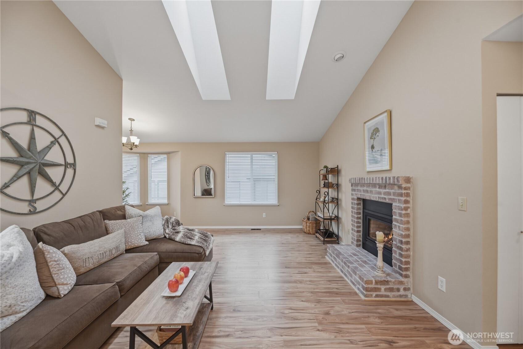 Light and bright well-maintained 3 bedroom, 2 bath rambler in sought after Falcon Ridge gated community, backing greenbelt. Peaceful, quiet neighborhood. Great room concept with generous spaces including living room with vaulted ceilings and cozy brick gas fireplace, dining with slider to the private, backyard deck, patio and garden areas. Kitchen with plenty of prep area, slab granite countertops, large pantry, and stainless appliances. Large Primary suite with walk in closet and ¾ bath. Two additional bedrooms and full-bath. Two car garage and plenty of off-street parking. Community amenities include walking trails with views of the lake and city , clubhouse, and sports court. Easy access to area conveniences, parks, I-405, I-5, and SR-167 access.