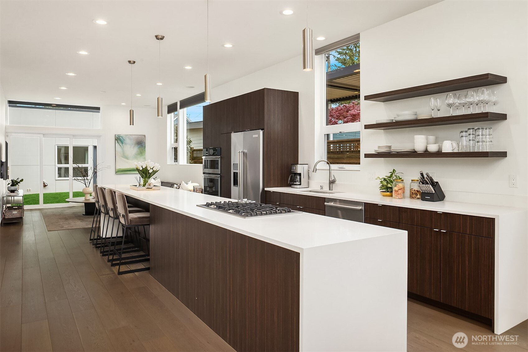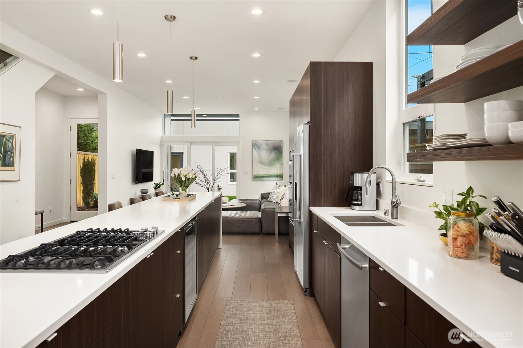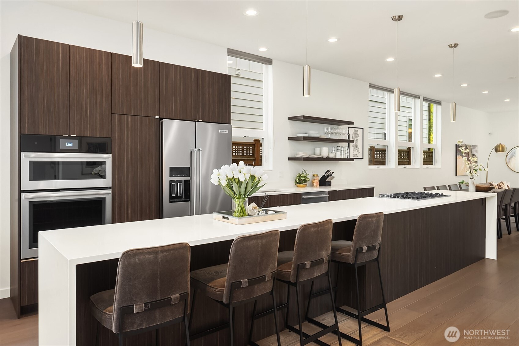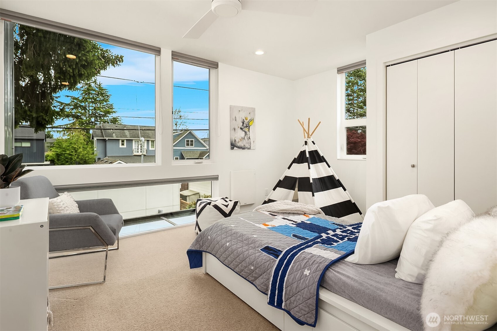 Custom built in 2015 with a focus on intentional design and modern livability, this residence offers a rare blend of quality, light, and flexibility in the heart of Queen Anne. From the moment you enter, oversized windows and thoughtful sightlines create an immediate sense of openness, filling the home with natural light throughout. The main level is designed for both effortless entertaining and everyday ease, anchored by a striking chef’s kitchen with an oversized island, Jenn-Air appliances, a wine fridge, and sleek quartz surfaces. The space flows seamlessly into the living and dining areas, creating a cohesive, inviting environment. Upstairs, three well-appointed bedrooms are complemented by an open bonus living area, ideal for media, work-from-home flexibility, or relaxation, along with a dedicated laundry room for added convenience. The primary suite is a true retreat, featuring floor-to-ceiling windows, a spa-inspired bath with a double vanity, and a generous walk-in closet. Set on a flat, fully fenced lot, the property also includes a one-car garage with a private en-suite bedroom, perfect for guests, a home office, or creative studio. Above it all, there’s a stunning ~1,000 SF rooftop deck with expansive space for entertaining, unwinding, and taking in the surrounding cityscape. Moments from Queen Anne’s top dining, parks, and amenities, with easy access to South Lake Union and downtown, this home delivers a seamless balance of design, location, and lifestyle.