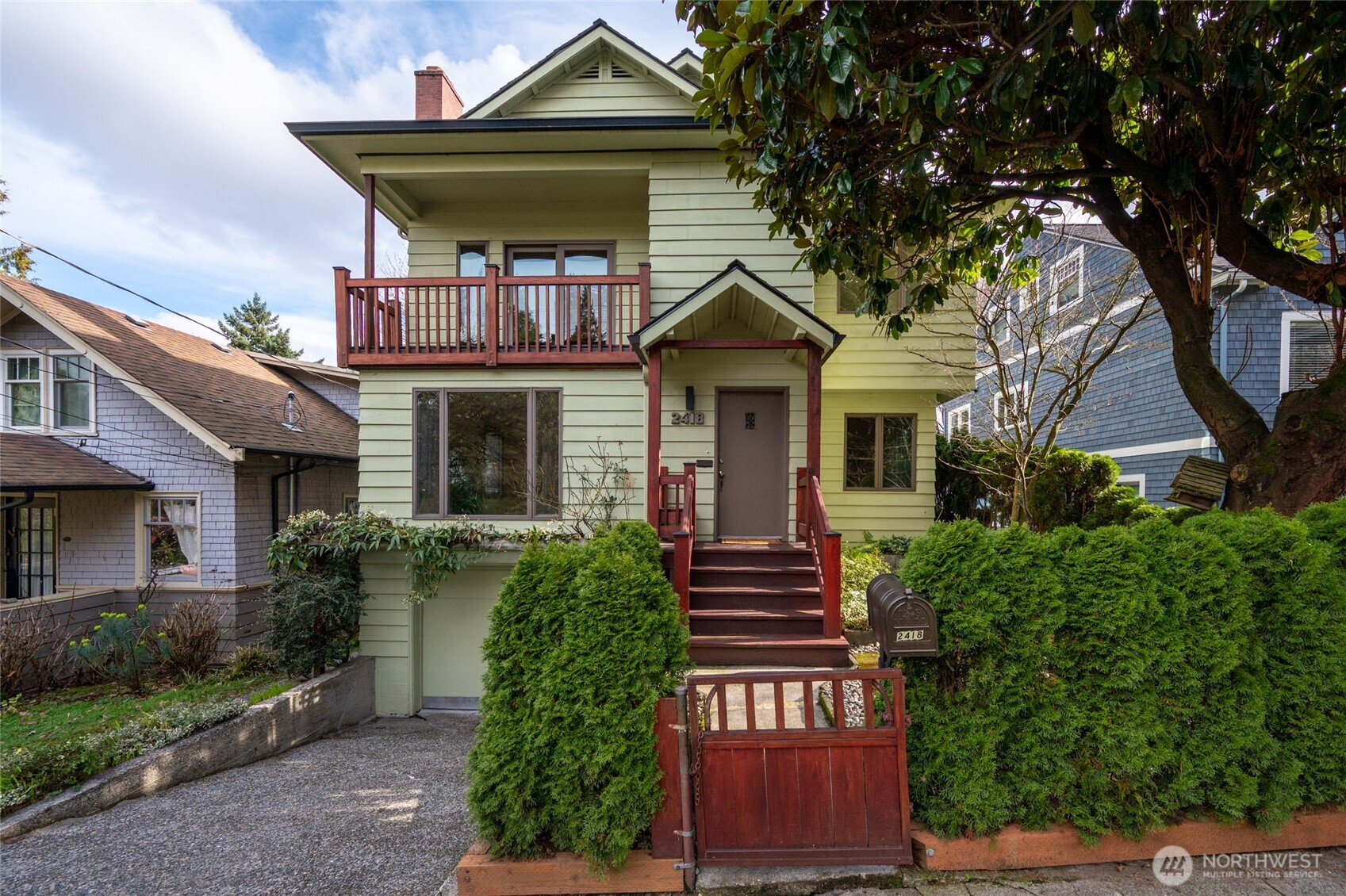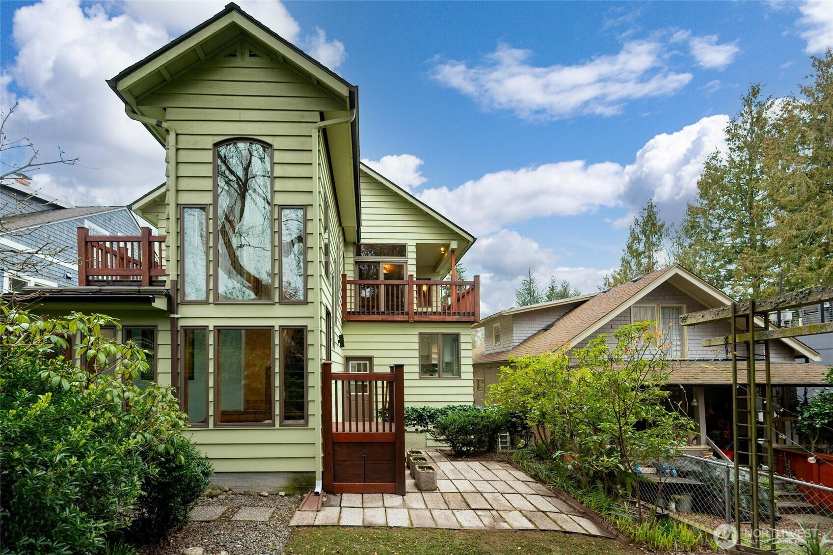 This charming and spacious home offers exceptional flexibility and timeless appeal. Newer hardwood floors, wood framed windows and light filled living spaces create a warm, inviting atmosphere throughout. Main level features a formal living, dining room, large kitchen and three generously sized bedrooms. Upstairs provides an incredibly versatile layout with a second living area, additional kitchen, bedroom, bath, and beautiful decks with territorial views - ideal for extended living, guests, or potential short- or long-term rental income. The flexible floor plan easily adapts to a variety of living arrangements. A sunny atrium with built-in spa/hot tub offers a relaxing year-round retreat and opens to a fully fenced backyard with mature landscaping and beautifully maintained gardens. Multiple decks extend the living space outdoors, perfect for entertaining or unwinding. Lower level includes a spacious basement with bonus room, utility area, abundant storage, and garage parking. Conveniently located just steps to parks, public transportation, schools, restaurants, and everything Capitol Hill has to offer. A rare opportunity combining space, versatility, and location.