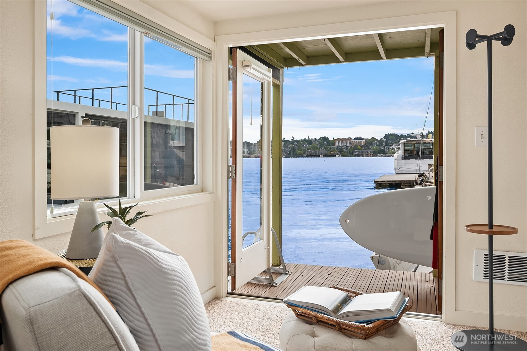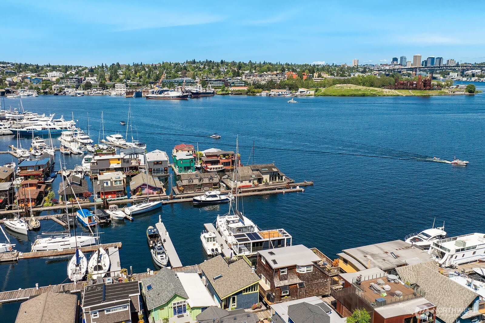 Beautiful Lake Union floating home with expansive views including Gas Works, Montlake cut and Eastlake. Wonderful spot to entertain! Fabulous upper deck for star gazing and relaxing, Great room has outstanding natural light and high ceilings. Chef's kitchen, SubZero fridge, custom cabinets. Romantic primary with french doors opening to the lake. Mini-splits a/c keep it cool in the summer. View one of the best 4th of July's ever. Minutes to the restaurants, tech and UW. Life on the water is the best! Located on a gated dock with big views and that is very quiet and serene. You'll feel a welcoming sense of community, Pet friendly, Furniture, Paddleboards and deck furniture stay. Kenmore Air on Lake Union has float planes to the San Juans.