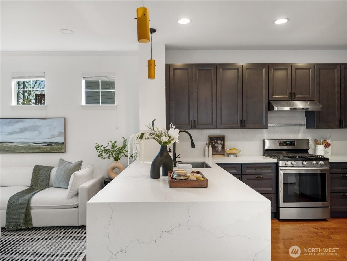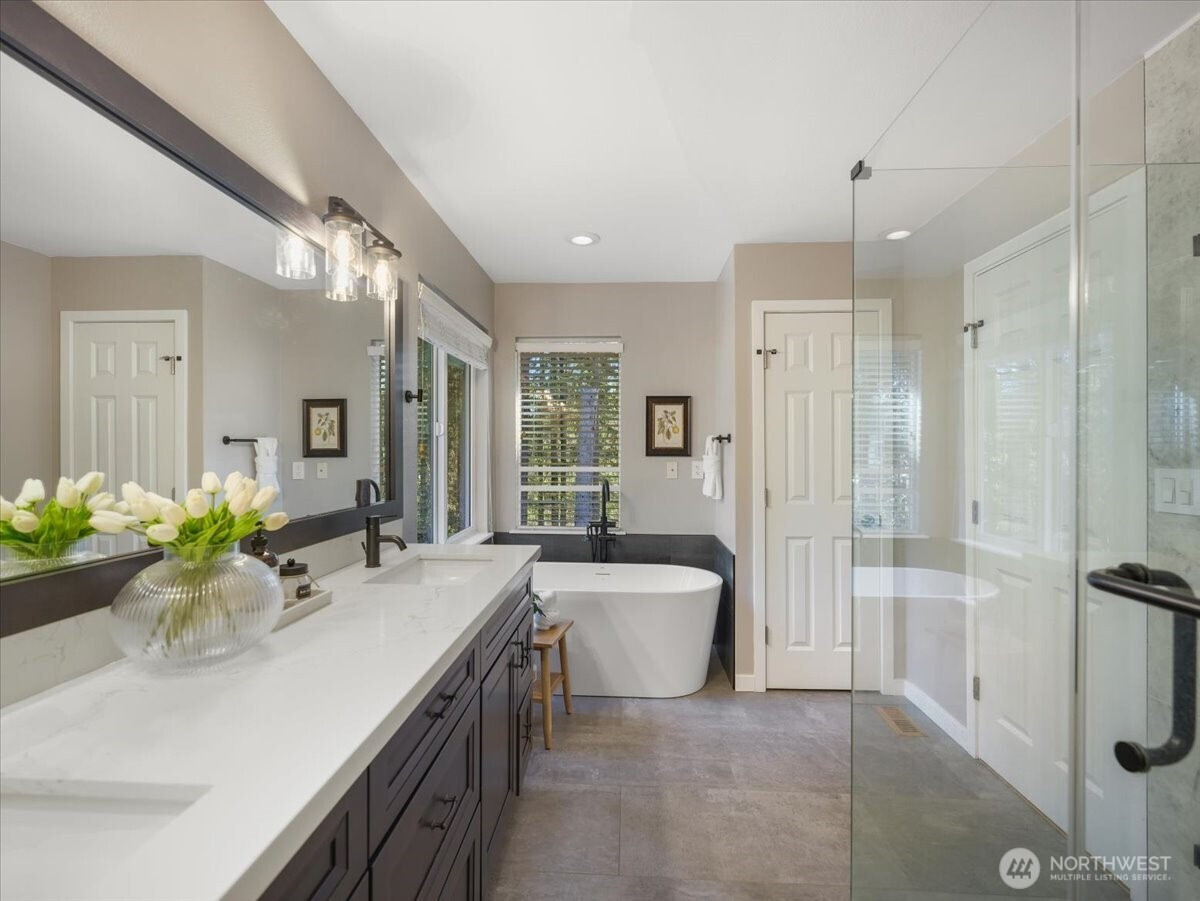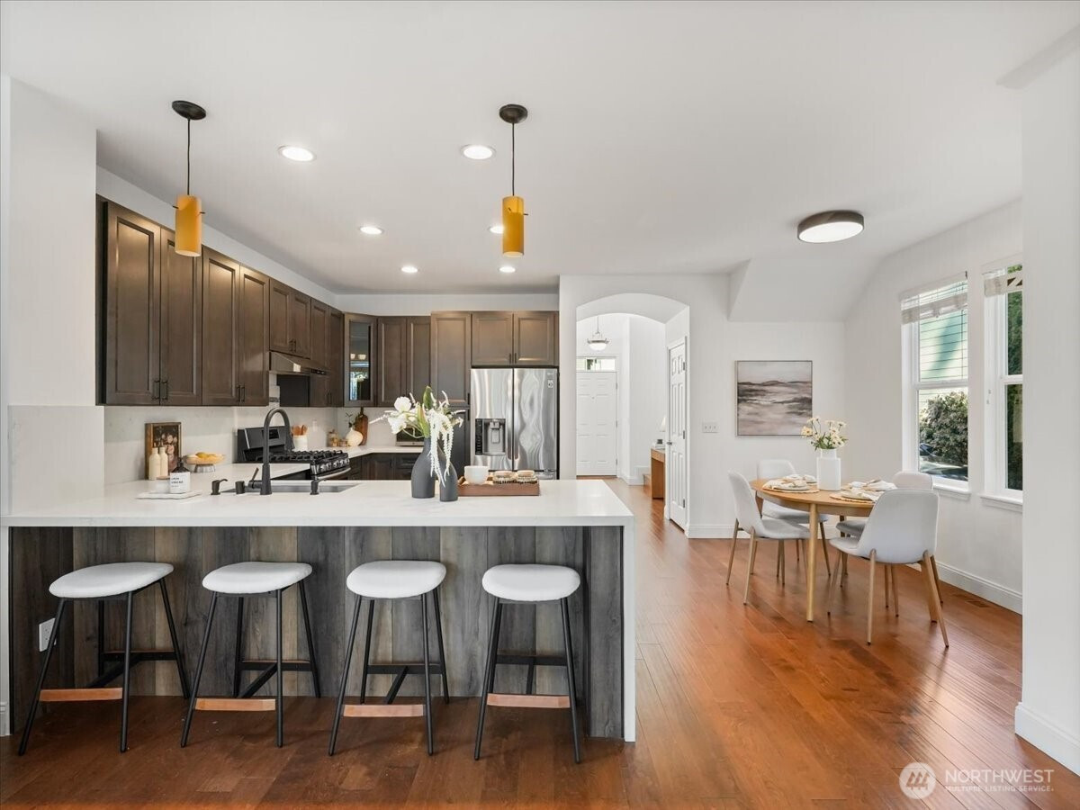 Beautifully updated home on a quiet street in the heart of Sammamish, where a dramatic double-height entry and living room, hard-surface flooring on both levels, and a sunny south-facing backyard create an exceptional sense of light and livability. The open-concept main floor connects the remodeled kitchen, dining area, and spacious family room, all overlooking the private, fully fenced backyard. Upstairs offers 3 bedrooms, including a spacious primary suite, Jack-and-Jill bath, and convenient laundry. Thoughtful updates throughout make this home truly move-in ready. Coveted Issaquah schools complete the package.