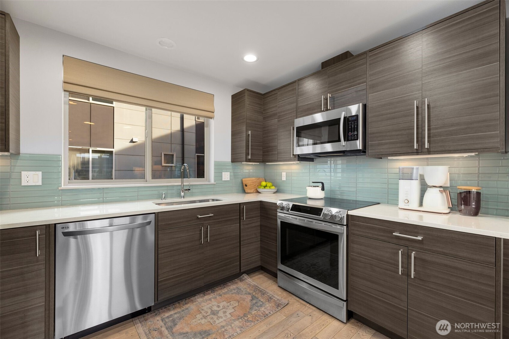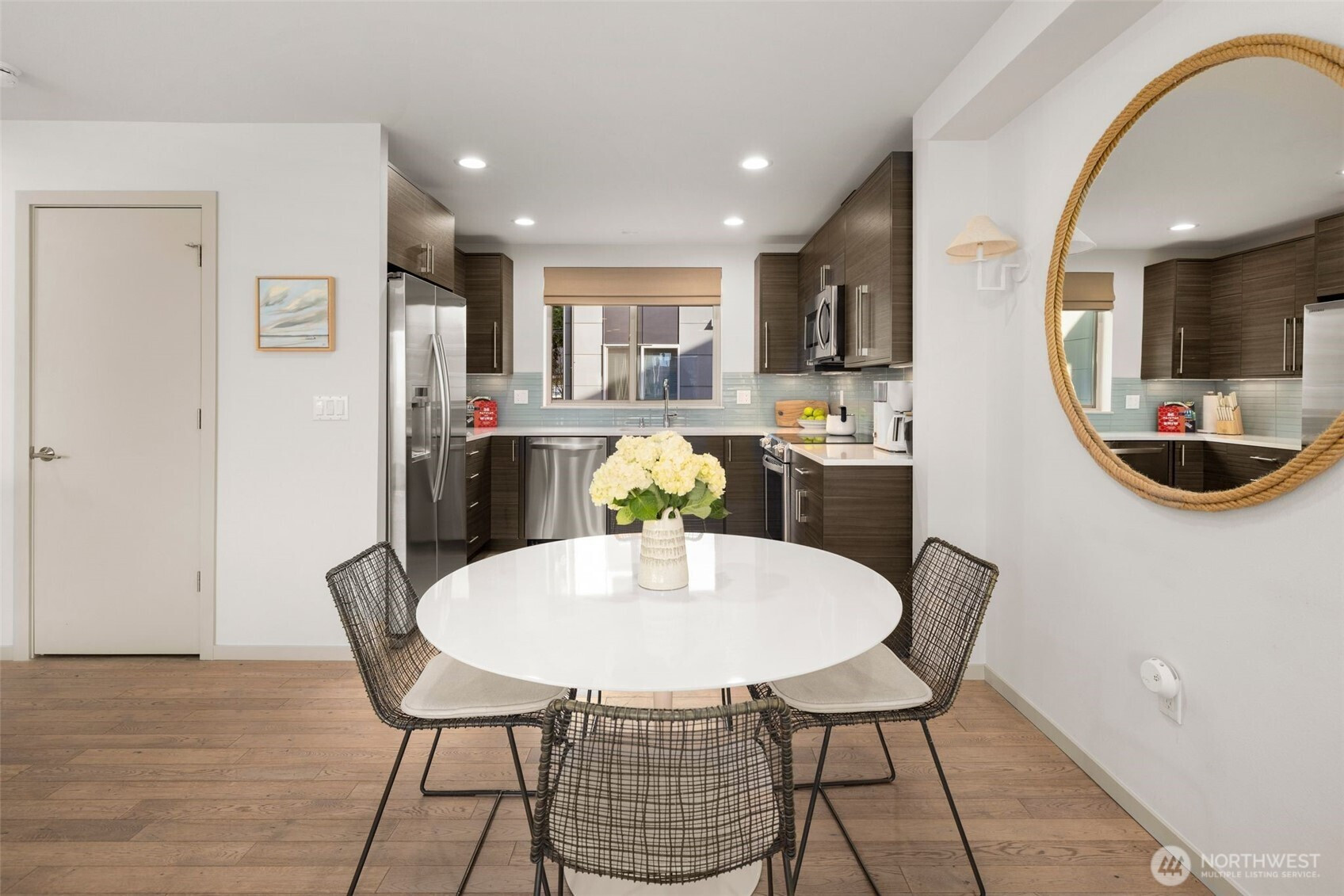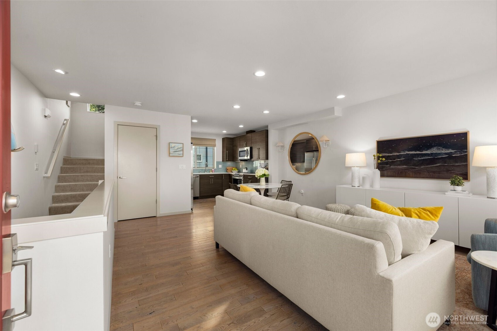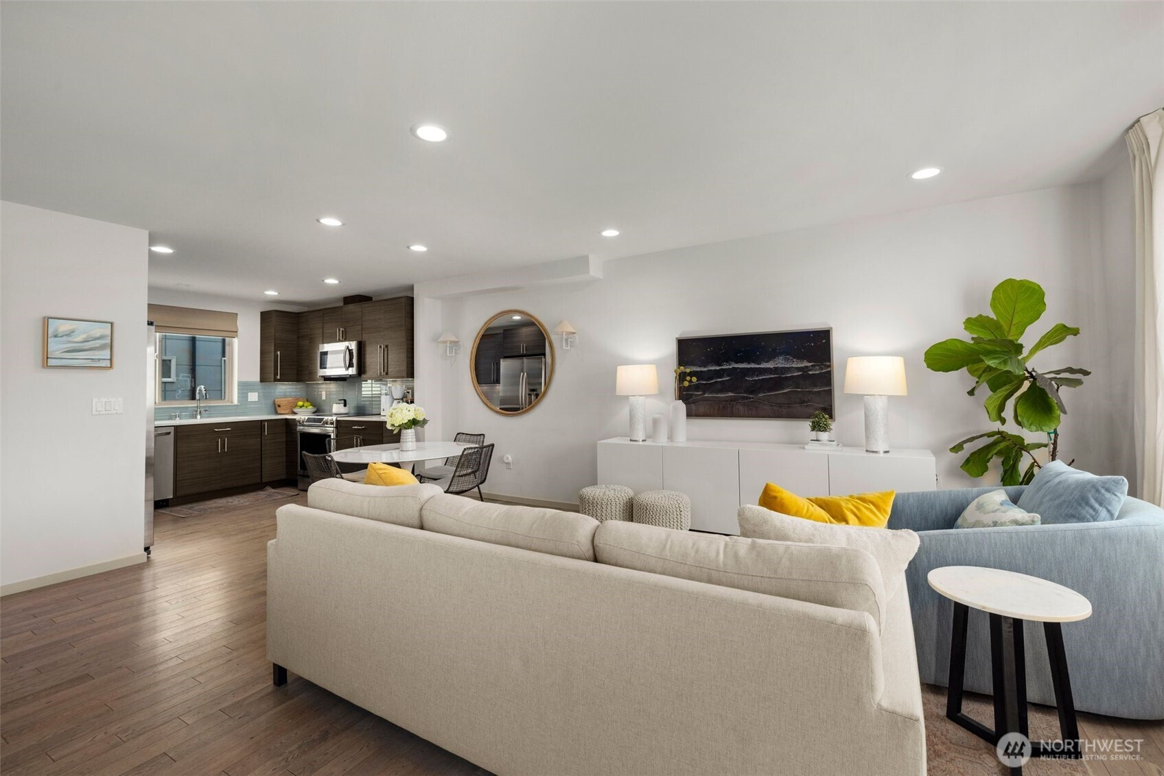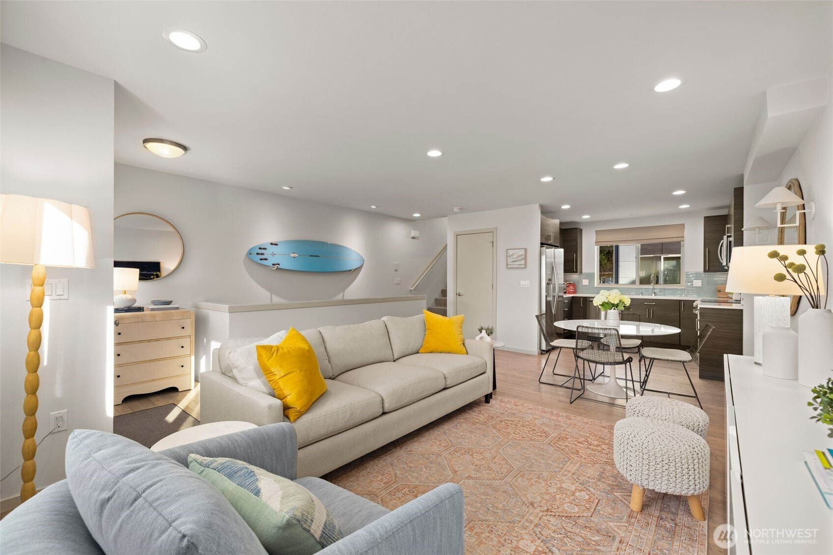 Bright, easy living meets the best of Alki in this townhome that feels nearly new. Thoughtfully designed across multiple levels, the upper level primary suite is a true retreat with sliders opening to a private view deck, that's perfect for morning coffee or sunset unwinding. The second floor offers two comfortable bedrooms and a full bath, while the main level features a well-appointed, open concept beautiful kitchen, dining & living space designed for effortless entertaining. A cozy bonus room creates the perfect spot for movie nights or relaxed evenings at home plus a dedicated office space adds flexibility for work or creative pursuits. Enjoy the convenience of a two-car attached garage and a location just moments from Alki Beach, where you can sauna, enjoy beach time, soak in the Sound, and savor some of Seattle’s most beloved waterfront restaurants. This is modern coastal living at its best!