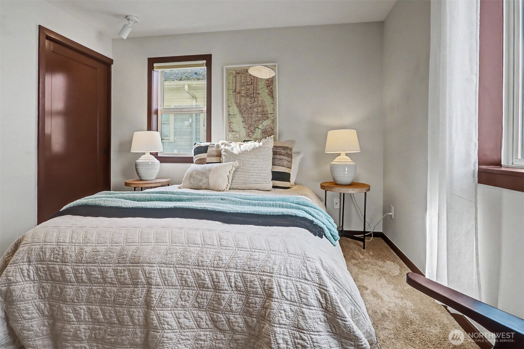 Stunning 2-bedroom, 2-bath condo in the heart of Ballard featuring high-end quartz finishes, wide-plank wood floors, and a bright, open layout. The modern kitchen with premium stainless-steel appliances flows into a spacious living area with a cozy gas fireplace—perfect for entertaining. The primary suite offers light and bright layout and private well-appointed en-suite bathroom. A second bedroom is ideal for guests or a home office, with a nearby 3/4 bath for added convenience. Enjoy in-unit laundry, plus a bonus storage locker and bike storage in the secure garage. Very rare for Ballard—this home includes TWO parking spaces. Yes, two spaces! Located in one of Seattle’s most desirable and walkable neighborhoods, just steps to Ballard’s best restaurants, cafés, boutiques, parks, transit, and the waterfront. This home offers luxury, comfort, and unbeatable urban convenience. Small 5-unit boutique building with a well-run HOA is ready for you. Welcome Home!