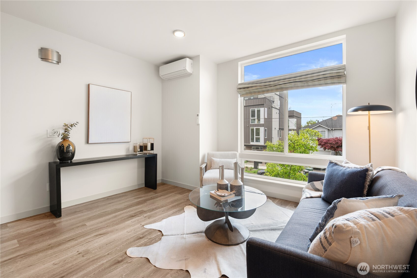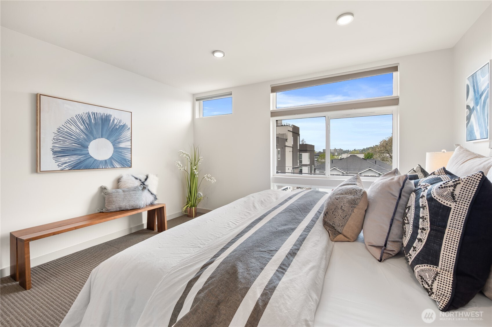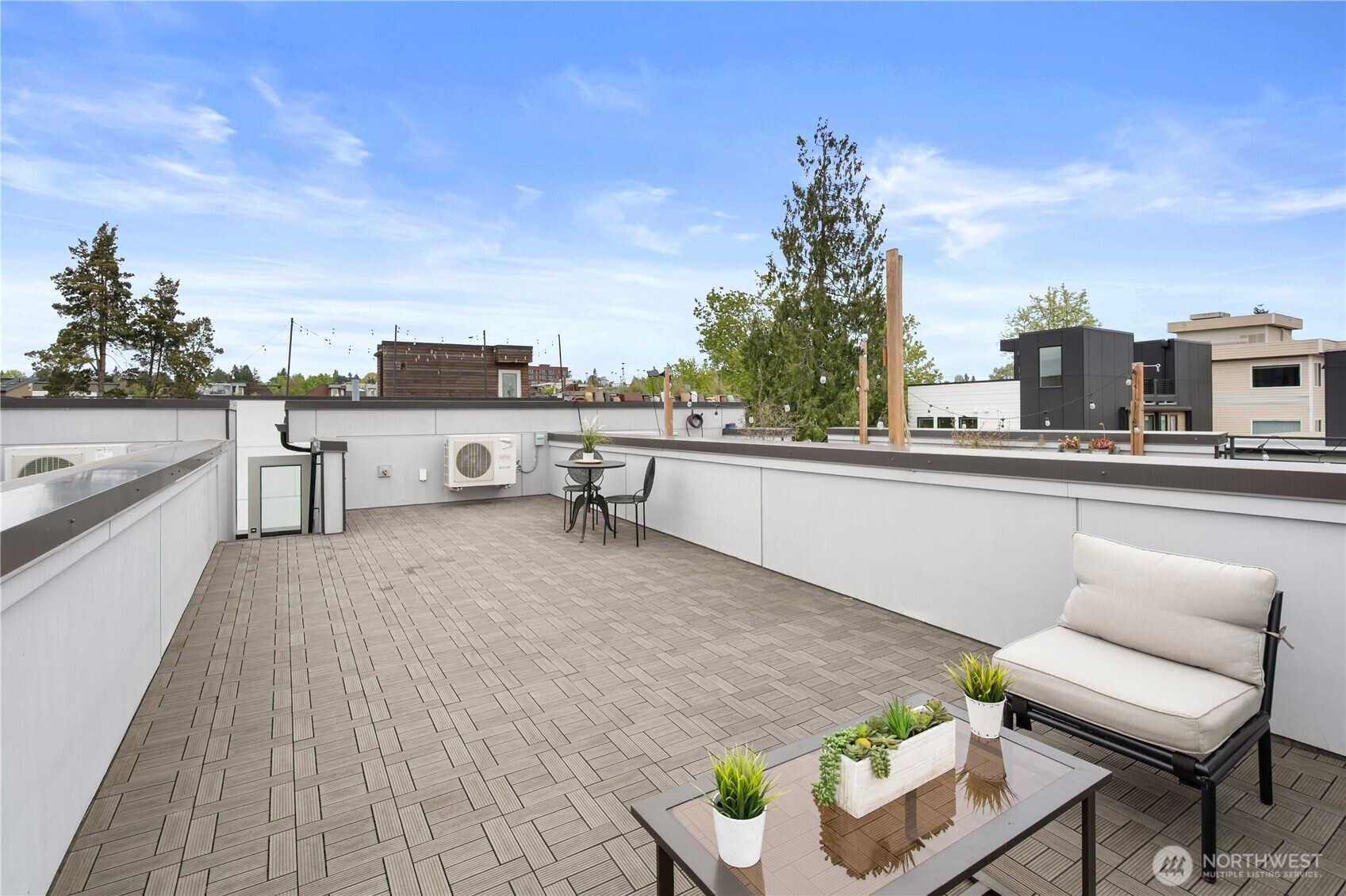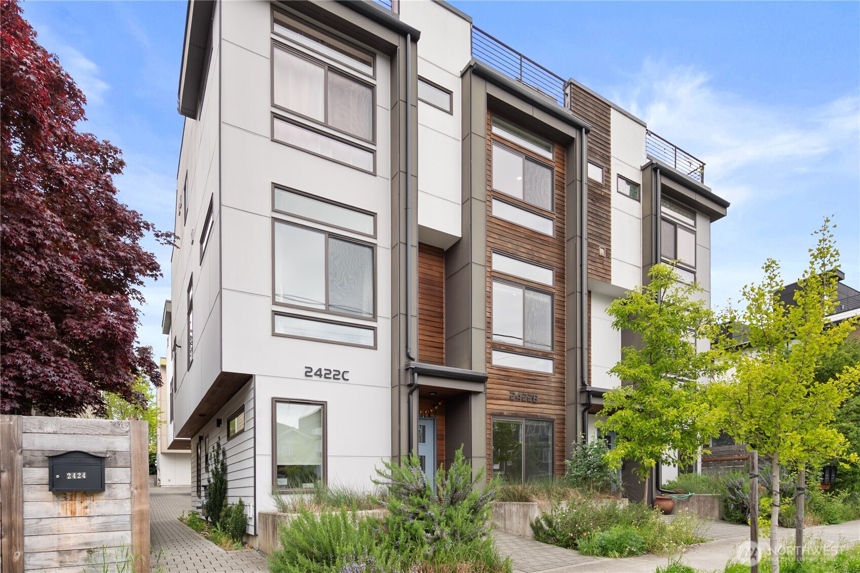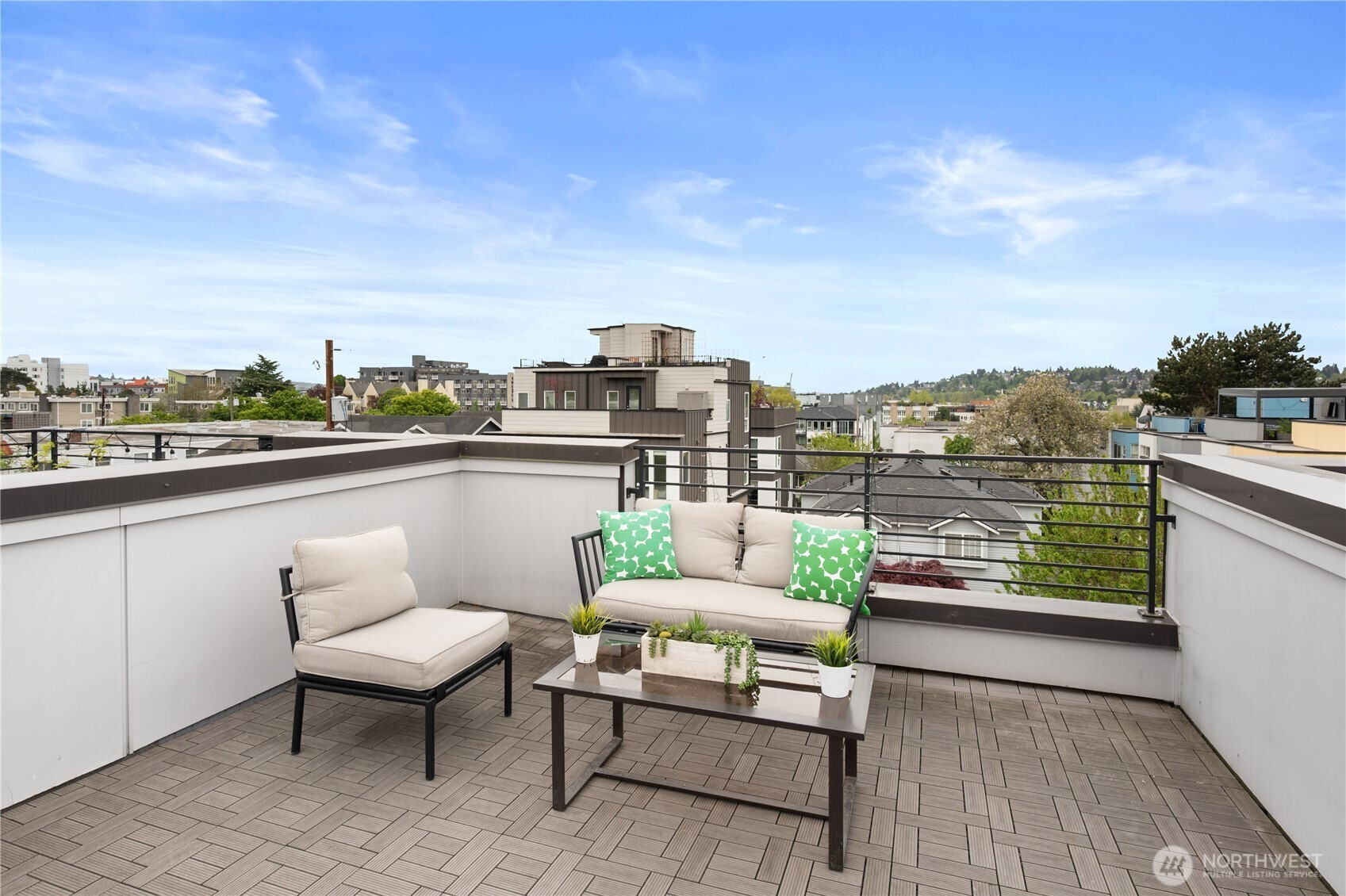 Discover the perfect blend of elegance, comfort, and unbeatable location in this 4-star Built Green residence appointed with hand-selected premium finishes and an unwavering attention to detail offering the best features of contemporary urban living in prime Ballard location. This spacious home boasts an open living concept with fresh paint, light-filled rooms, gourmet chef's kitchen with stainless steel appliances and designer touches, exquisite floating staircase, A/C and elegantly designed bathrooms on separate floors for your enhanced convenience. Top-floor primary suite is a private sanctuary featuring a spa-inspired ensuite bath and large walk-in closet. Two well-proportioned bedrooms and a full bath occupy the lower level, offering thoughtful separation and flexibility for guests or a home office. Enjoy sweeping views on oversized rooftop deck fully outfitted with gas, water, and electricity, purposefully built for year-round entertaining for your friend gatherings and BBQ. Reserved off-street parking space included. Tucked along a quiet cul-de-sac yet just minutes away from the neighborhood's most cherished shops, restaurants, parks and waterfront, this home is a rare convergence of style, comfort, and lifestyle in one of Seattle's most coveted enclaves!