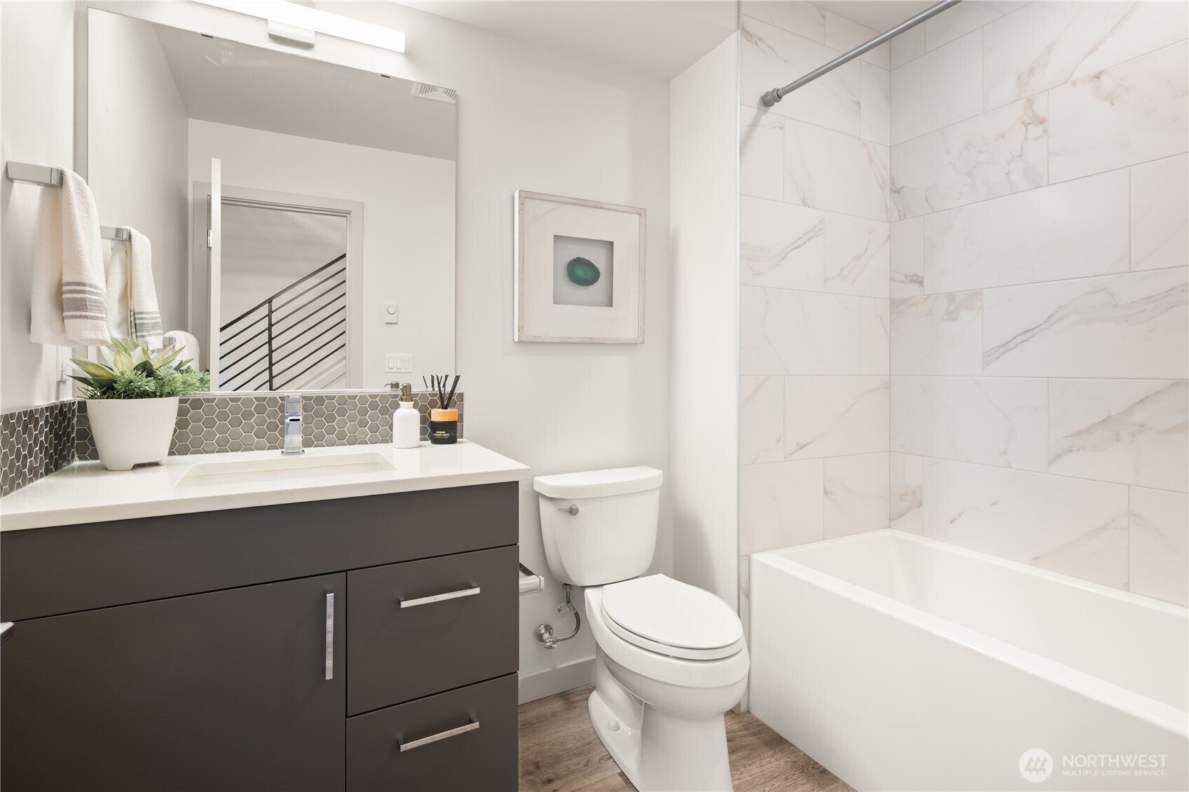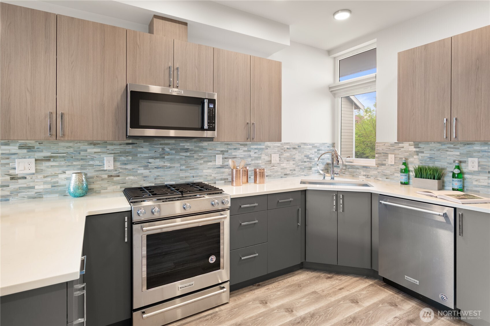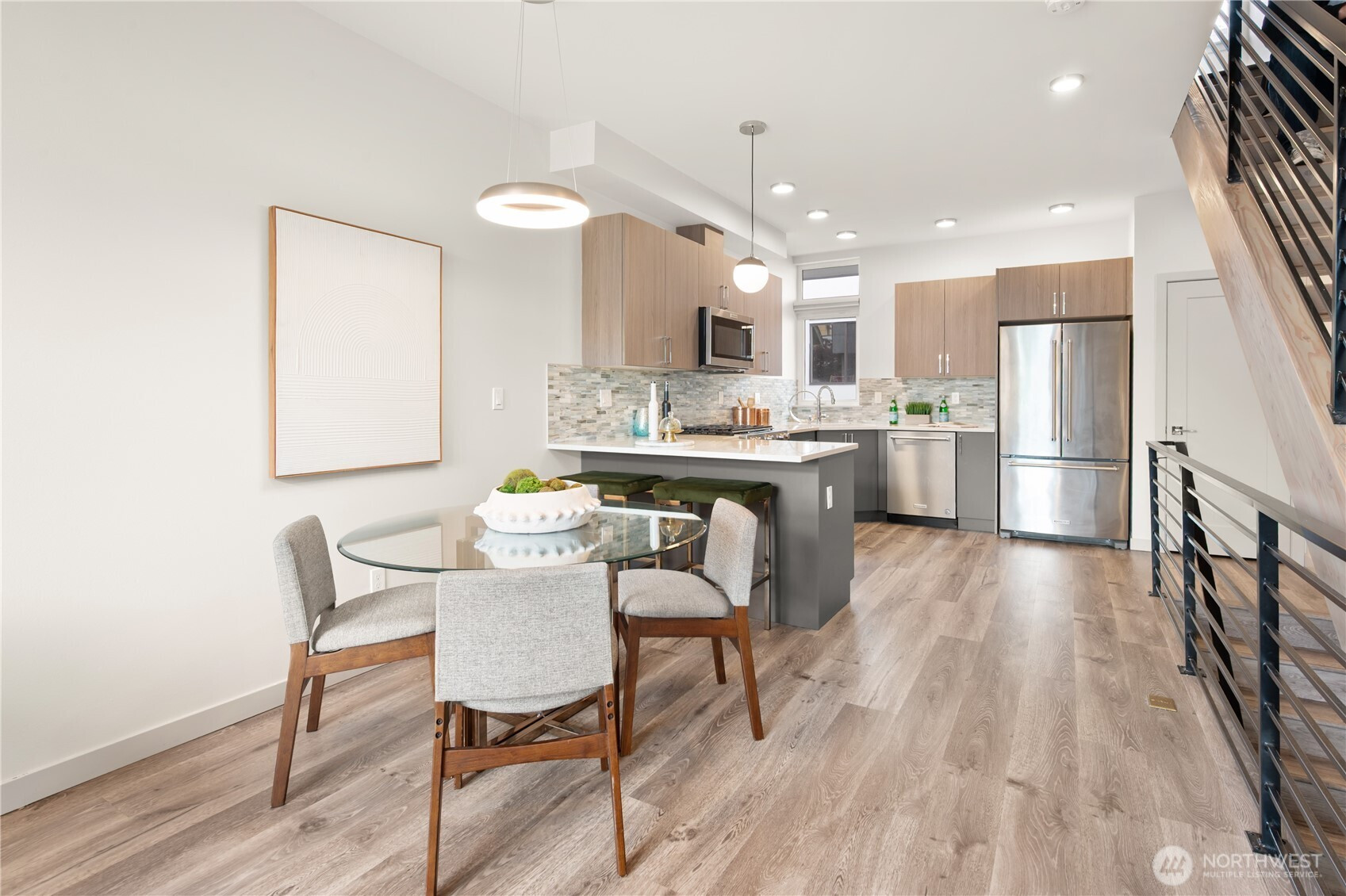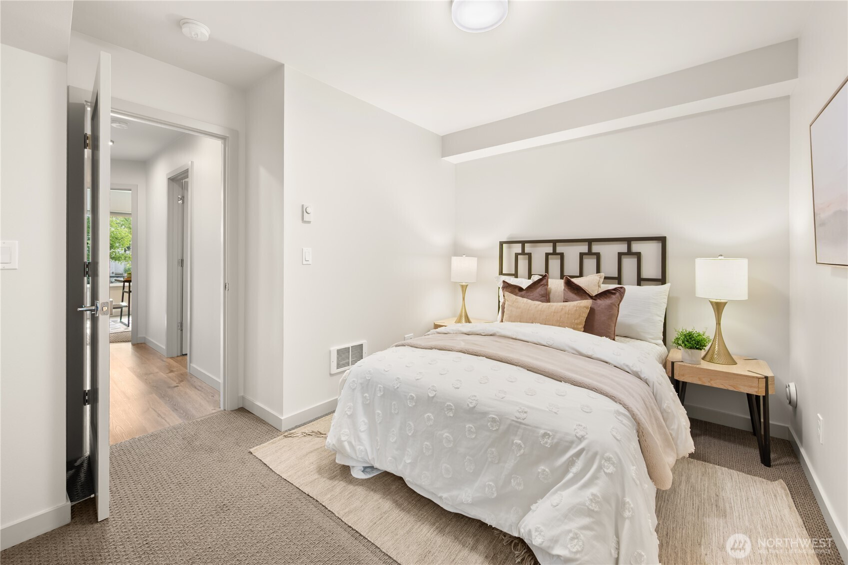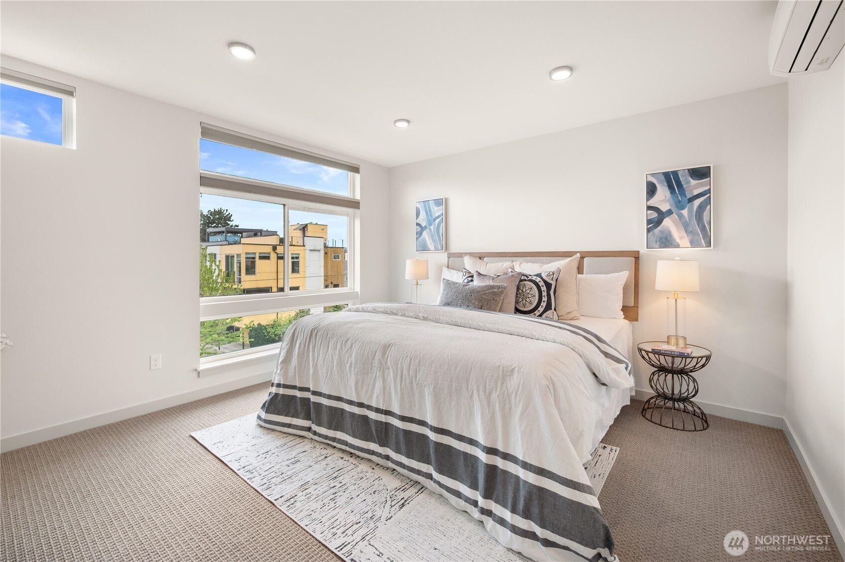 Discover the perfect blend of elegance, comfort, and unbeatable location in this 4-star Built Green residence appointed with hand-selected premium finishes and an unwavering attention to detail offering the best features of contemporary urban living in prime Ballard location. This spacious home boasts an open living concept with fresh paint, light-filled rooms, gourmet chef's kitchen with stainless steel appliances and designer touches, exquisite floating staircase, A/C and elegantly designed bathrooms on separate floors for your enhanced convenience. Top-floor primary suite is a private sanctuary featuring a spa-inspired ensuite bath and large walk-in closet. Two well-proportioned bedrooms and a full bath occupy the lower level, offering thoughtful separation and flexibility for guests or a home office. Enjoy sweeping views on oversized rooftop deck fully outfitted with gas, water, and electricity, purposefully built for year-round entertaining for your friend gatherings and BBQ. Reserved off-street parking space included. Tucked along a quiet cul-de-sac yet just minutes away from the neighborhood's most cherished shops, restaurants, parks and waterfront, this home is a rare convergence of style, comfort, and lifestyle in one of Seattle's most coveted enclaves!