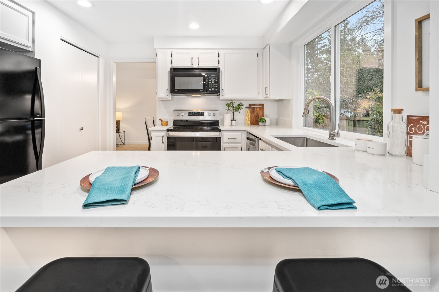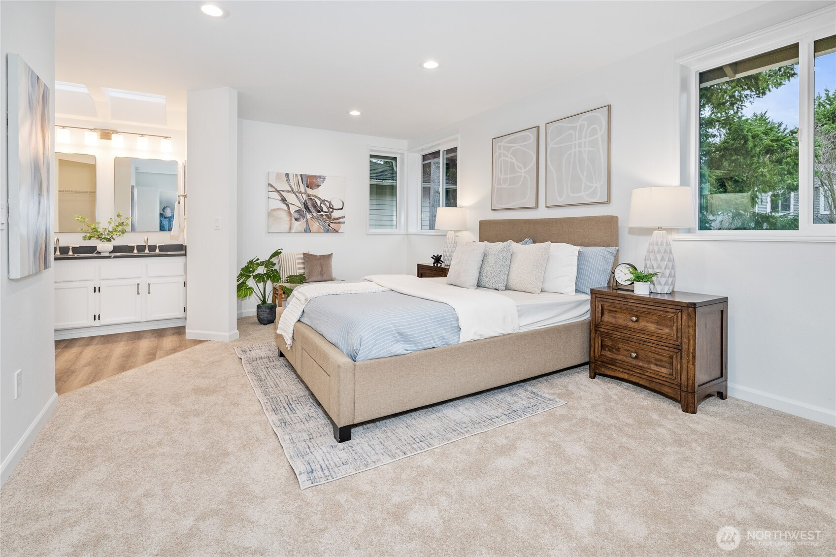 After over 30 years of ownership, no expense was spared to prepare this beautifully remodeled Audubon Park home for its new owner. Set on a sunny corner lot, it features vaulted ceilings, skylights and a cozy wood-burning fireplace across the living, dining and family rooms. The remodeled primary suite offers two walk-in closets. Updates include new windows, refinished and new LVP floors, new carpet, interior paint, windows, quartz counters, new lighting, Decora switches/outlets, wide baseboards, new water heater and refreshed cabinetry. New sinks, faucets, toilets and water heater add peace of mind. Enjoy the fully fenced, newly landscaped yard with patio, steps to the park, top-rated Issaquah Schools and Klahanie amenities. Pre-inspected.