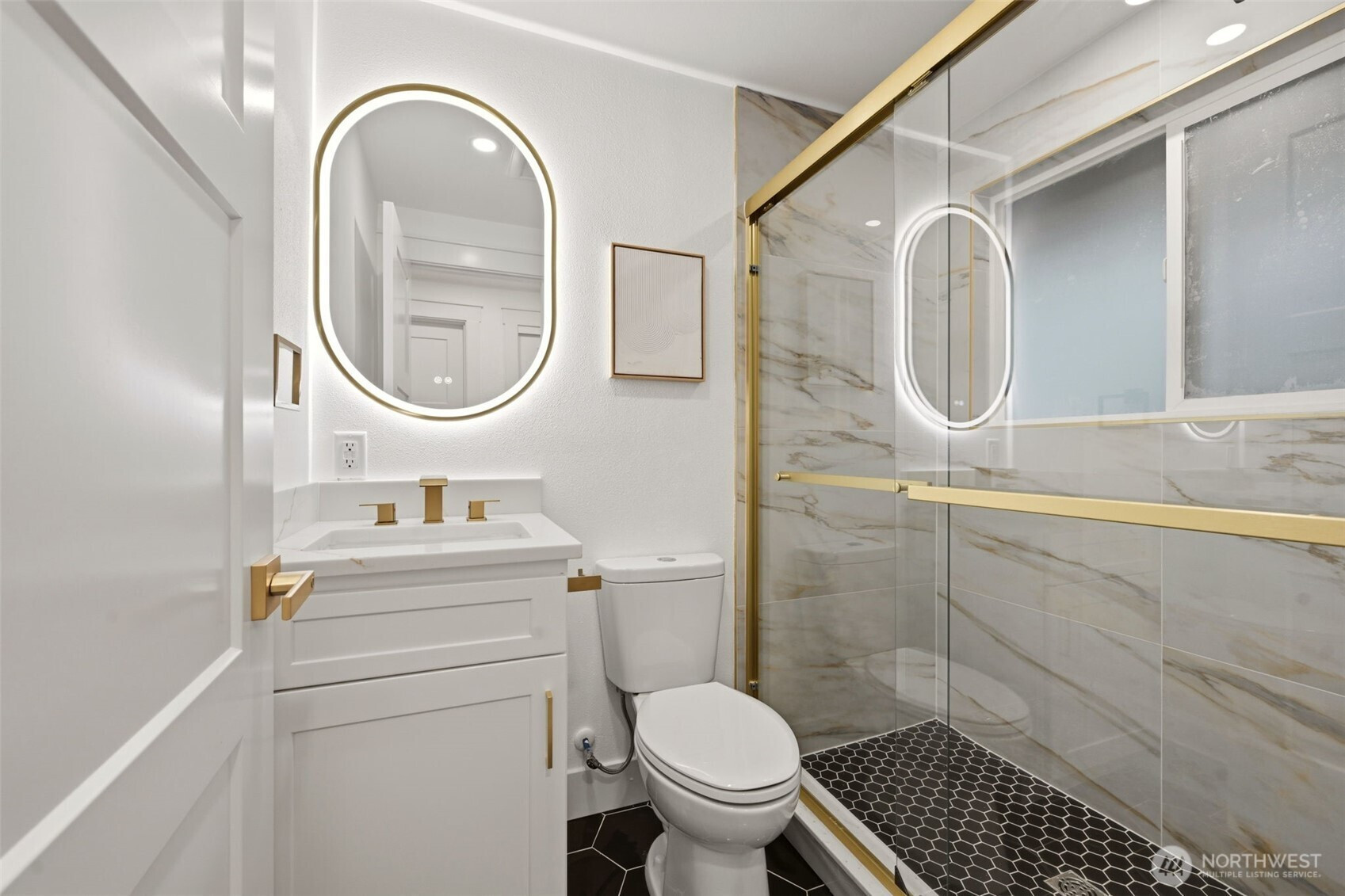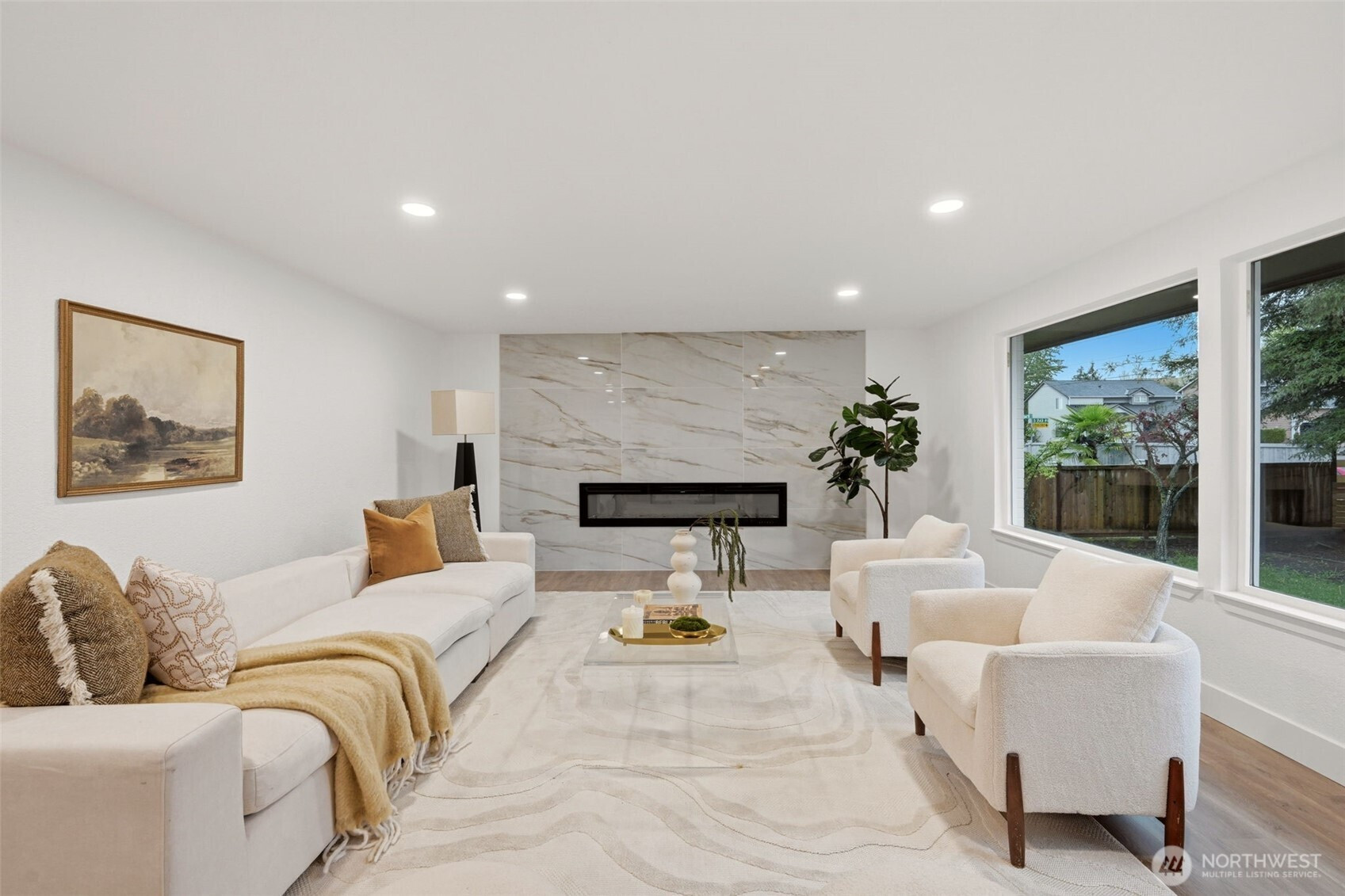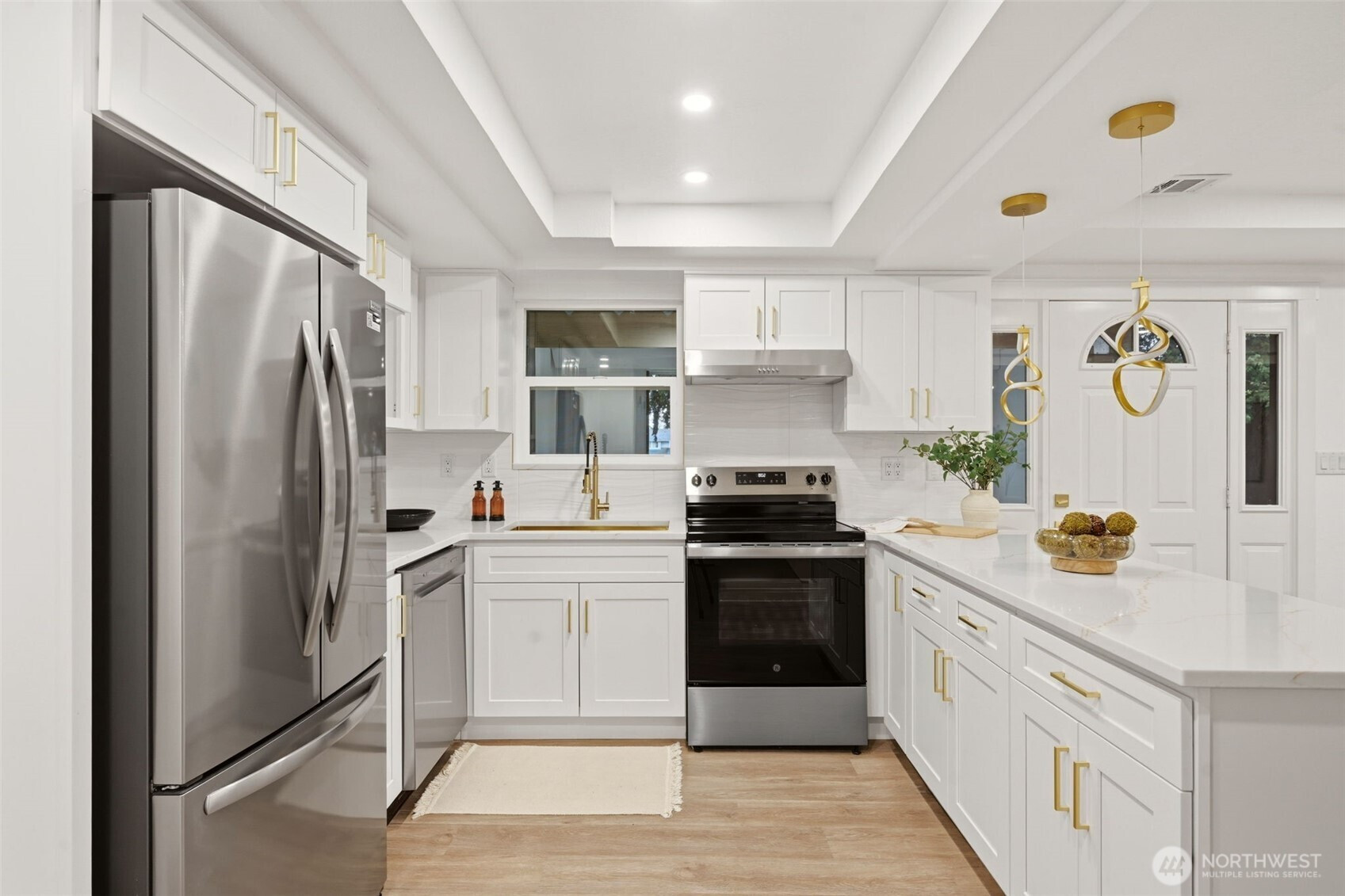 Welcome to a home where "brand new" is the standard, not the exception. This huge, stunningly renovated property has undergone a comprehensive transformation. Designed with versatility in mind, this home features a full kitchen and separate entrances on each floor, making it the ideal setup for hosting guests and rental potential. Enjoy peace of mind with major upgrades already completed, including a brand new roof, heat pump providing efficient heating and cooling, new water and sewer plumbing, a new electrical panel, and modern fixtures throughout. Inside, you’ll find stylish new flooring, fresh paint, high-efficiency windows, and brand new appliances that make everyday living both comfortable and convenient. The large garage features tall ceilings and a brand new door. Situated on a massive 0.6-acre lot, this home has more outdoor space than most in the area. The backyard extends to a scenic pond, serving as a sanctuary for local wildlife and providing a natural buffer from neighbors. Enjoy plenty of storage space among the 4 large sheds. A new fence with gate enhances both safety and seclusion. Home is less than a block away from East Hill Elementary! This is a rare opportunity to own a thoroughly renovated home with versatile living options and a serene natural setting while still being minutes away from Kent Station, Highway 167 and other amenities! Enjoy peace of mind with a complimentary 1-year home warranty!