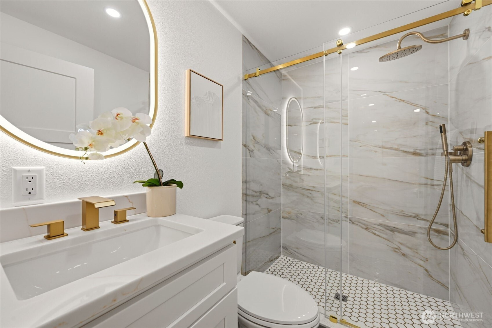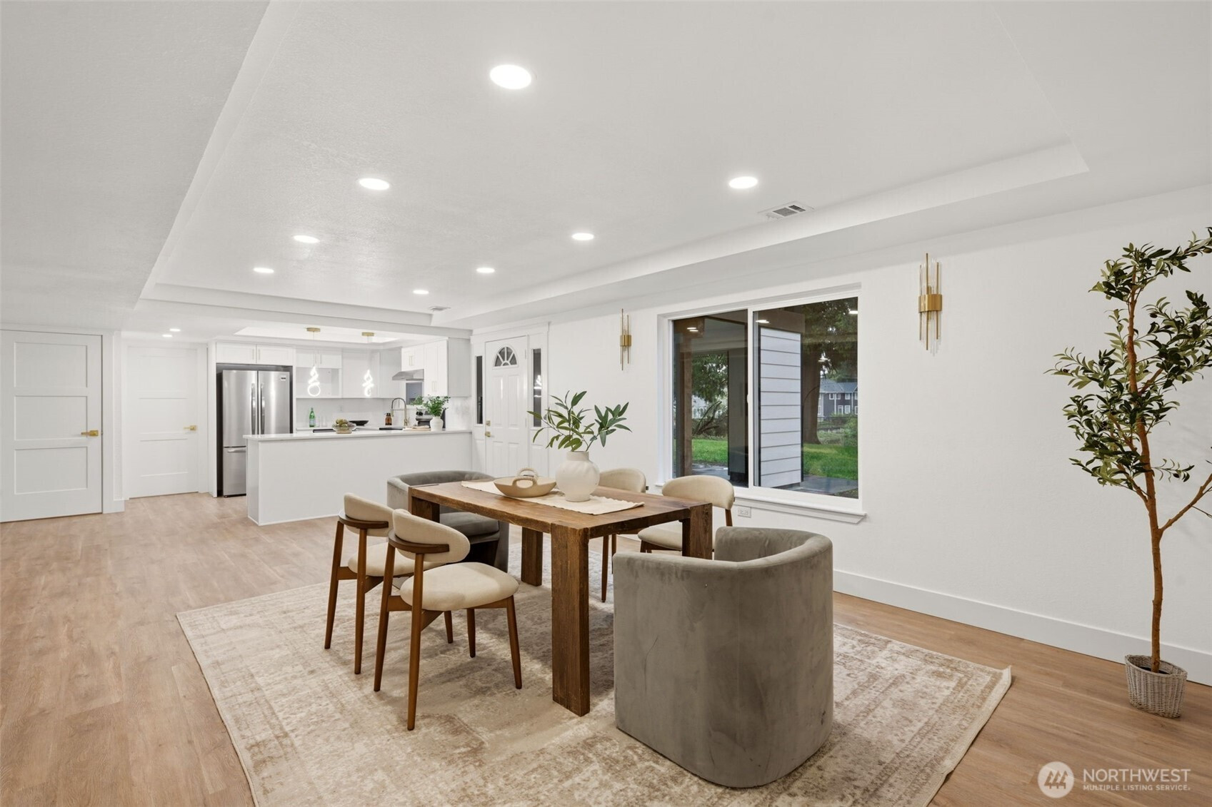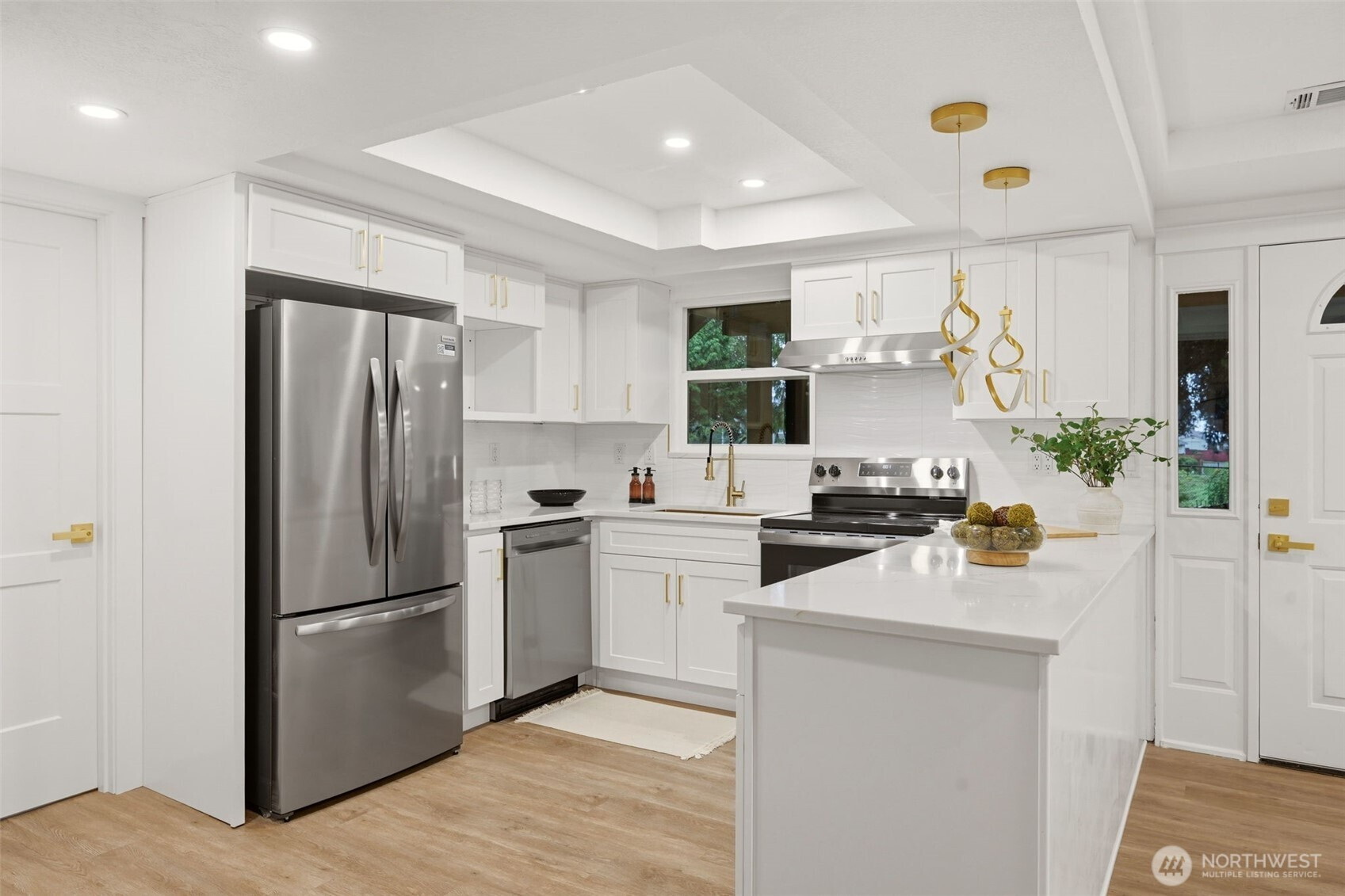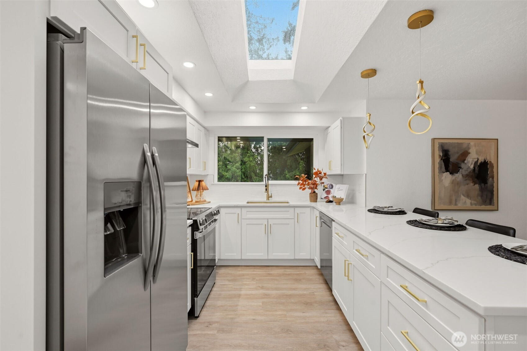 Welcome to a home where "brand new" is the standard, not the exception. This huge, stunningly renovated property has undergone a comprehensive transformation. Designed with versatility in mind, this home features a full kitchen and separate entrances on each floor, making it the ideal setup for hosting guests and rental potential. Enjoy peace of mind with major upgrades already completed, including a brand new roof, heat pump providing efficient heating and cooling, new water and sewer plumbing, a new electrical panel, and modern fixtures throughout. Inside, you’ll find stylish new flooring, fresh paint, high-efficiency windows, and brand new appliances that make everyday living both comfortable and convenient. The large garage features tall ceilings and a brand new door. Situated on a massive 0.6-acre lot, this home has more outdoor space than most in the area. The backyard extends to a scenic pond, serving as a sanctuary for local wildlife and providing a natural buffer from neighbors. Enjoy plenty of storage space among the 4 large sheds. A new fence with gate enhances both safety and seclusion. Home is less than a block away from East Hill Elementary! This is a rare opportunity to own a thoroughly renovated home with versatile living options and a serene natural setting while still being minutes away from Kent Station, Highway 167 and other amenities! Enjoy peace of mind with a complimentary 1-year home warranty!