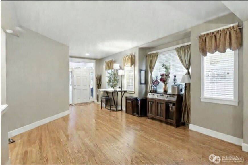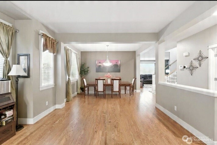 Stunning Murray Franklin home designed for Northwest living and entertaining, featuring quality craftsmanship and thoughtful details throughout. Enjoy hardwood flooring, wood-wrapped windows, custom paint, and stylish window coverings. The main floor includes a versatile bedroom or office with French doors and a ¾ guest bath. The gourmet kitchen boasts custom cabinetry, slab granite counters, full-height tile backsplash, stainless steel appliances, walk-in pantry, and a center island with breakfast bar. The spacious primary suite offers a spa-like 5-piece bath with beautiful tile finishes. A large bonus room adds flexibility for living or entertaining. Near Lake Wilderness and trails, and located in the acclaimed Tahoma School District!