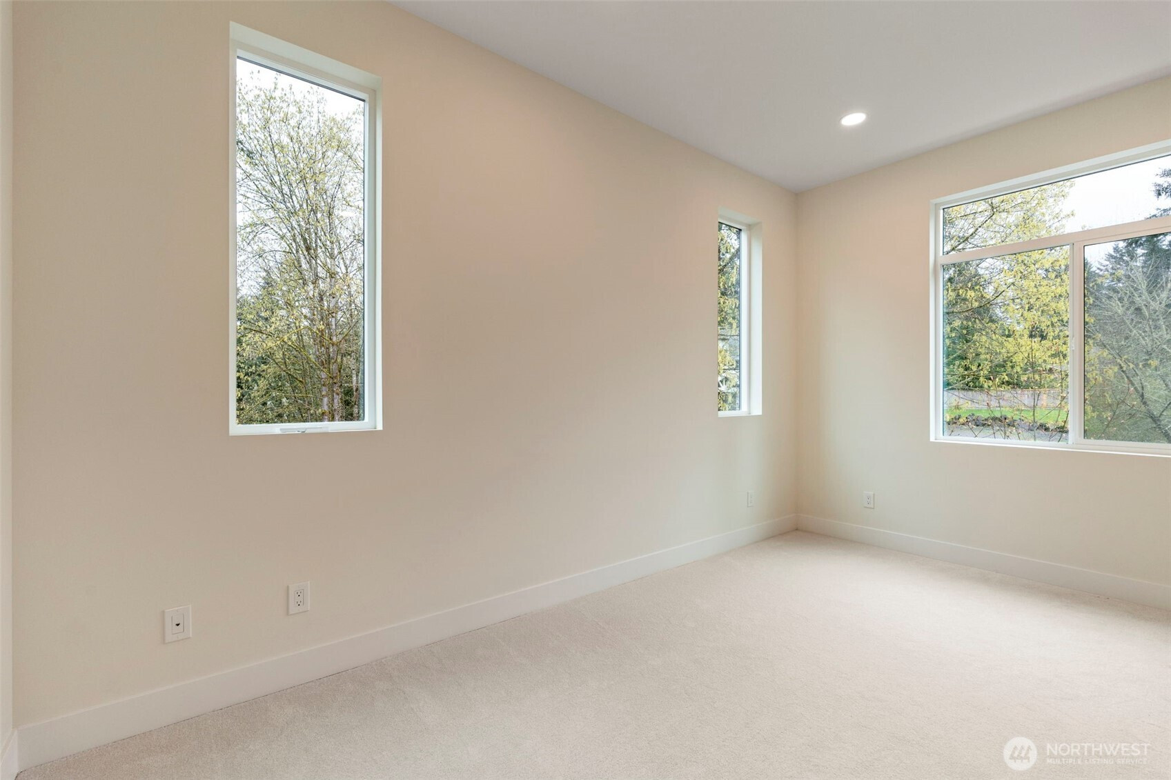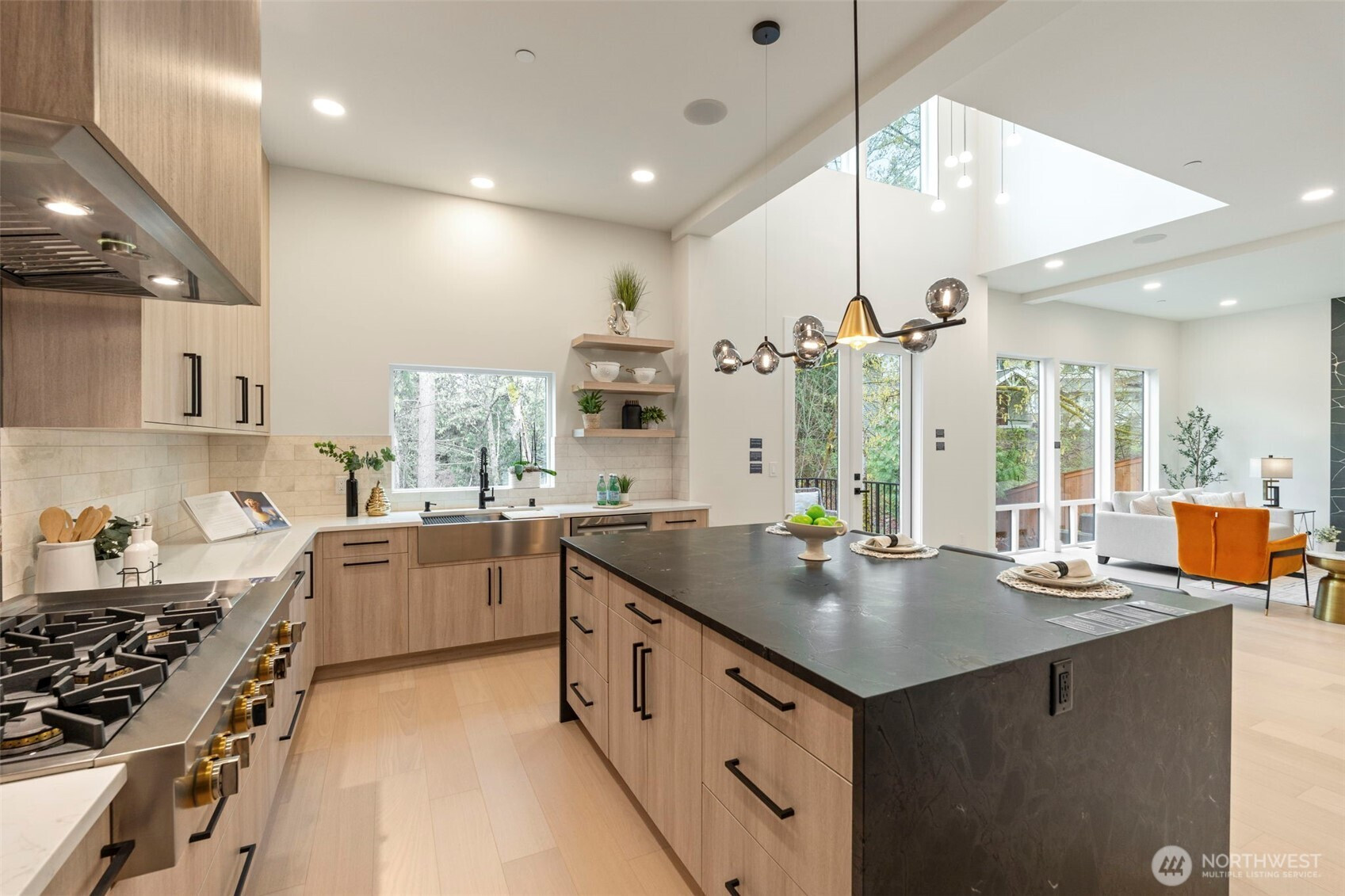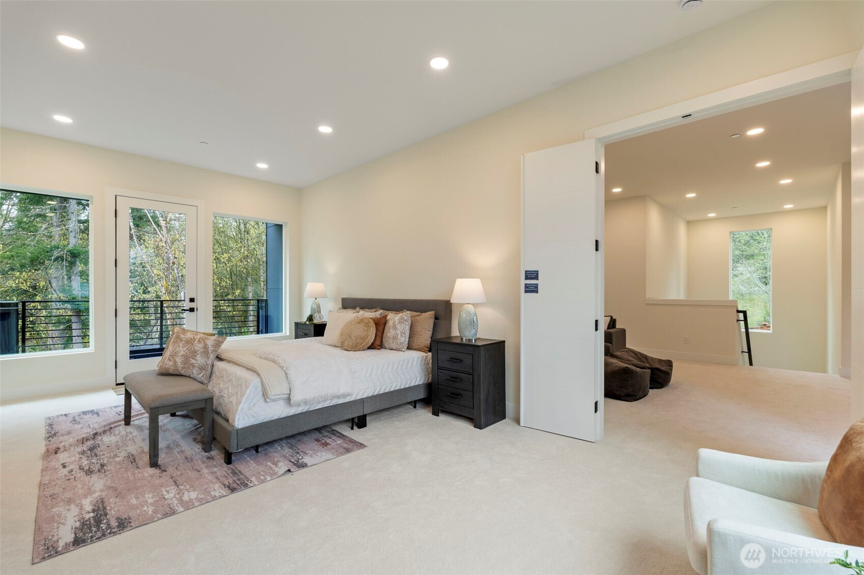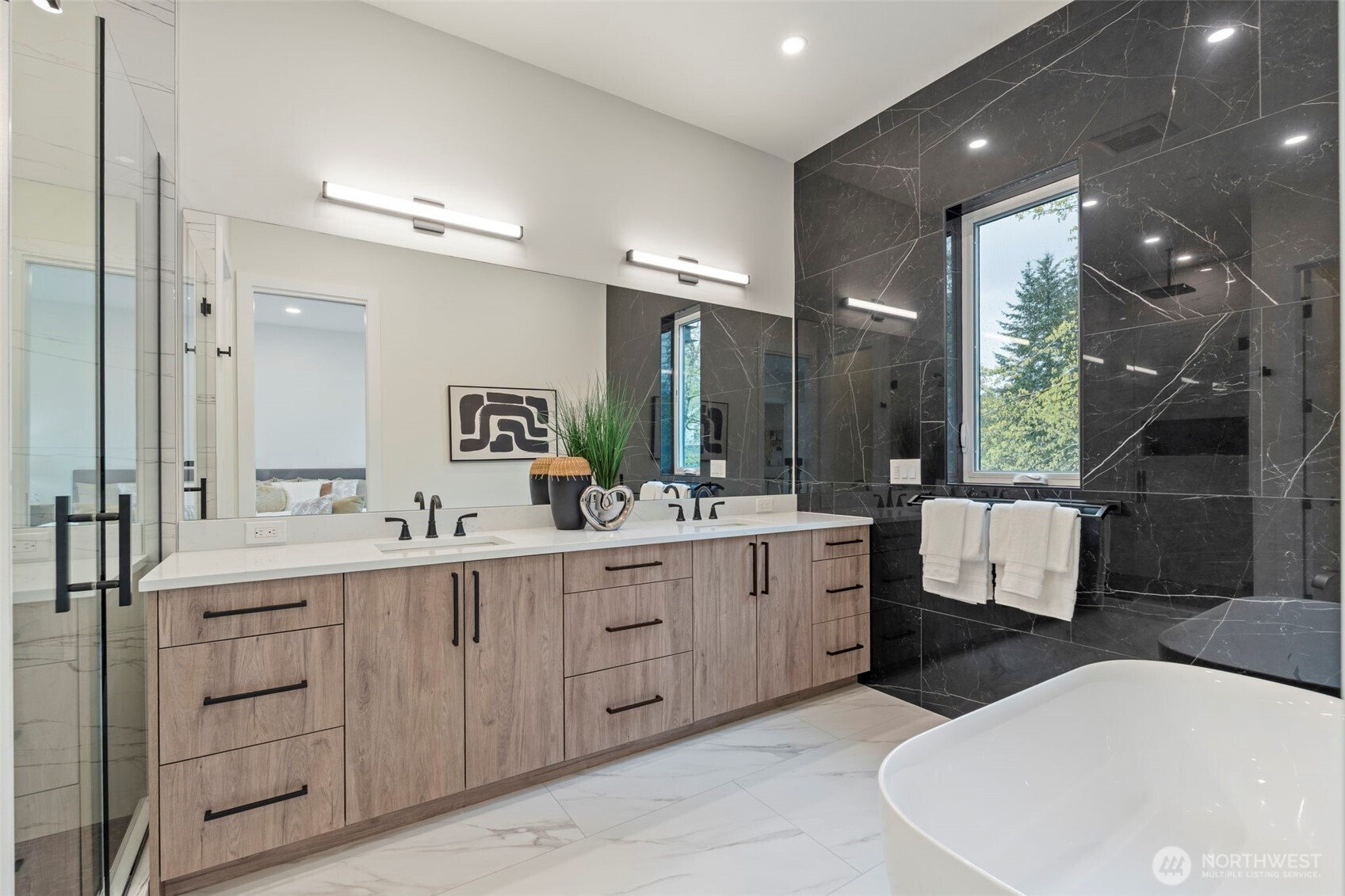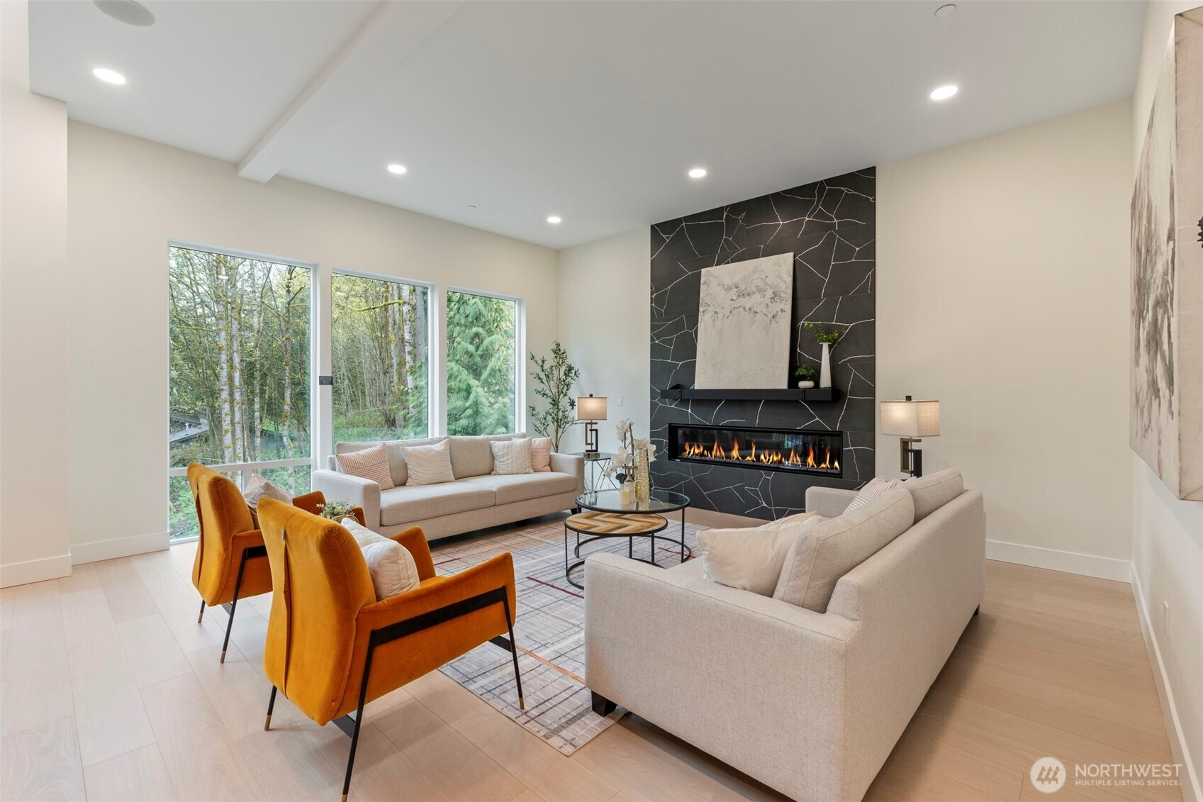 New Construction! 26K Seller Credit to Buyer and Builder Warranty Conveys.Thoughtfully designed contemporary custom built home in an established Sammamish community, backing to a serene greenbelt for privacy and views. A massive rooftop terrace offers exceptional space for entertaining and relaxation, while the light-filled great room showcases dramatic floor-to-ceiling windows. With 6 bedrooms and 5.5 baths, the home blends refined luxury with everyday functionality. The open main level features a chef’s kitchen with high-end JennAir appliances, a custom paneled refrigerator, and a waterfall island, along with a main-floor ensuite and powder room. Heated floors in all bathrooms, ductless mini-splits, pre-wired for a generator & gas hookup ready, Starlink connectivity ensure year-round comfort. Upstairs, the primary suite offers a spa-inspired bath, private deck, and walk-in closet, plus 3 additional bedrooms (one with its own ensuite bath), a huge loft, and two baths. The daylight basement includes a spacious rec room, bedroom, full bath, and walkout access to the backyard and open space beyond. A 3-car tandem garage, and location within the Issaquah School District complete this exceptional modern retreat—modern luxury, elevated by nature and design. Green belt behind cannot be built on ensuring privacy forever. Dont miss !
