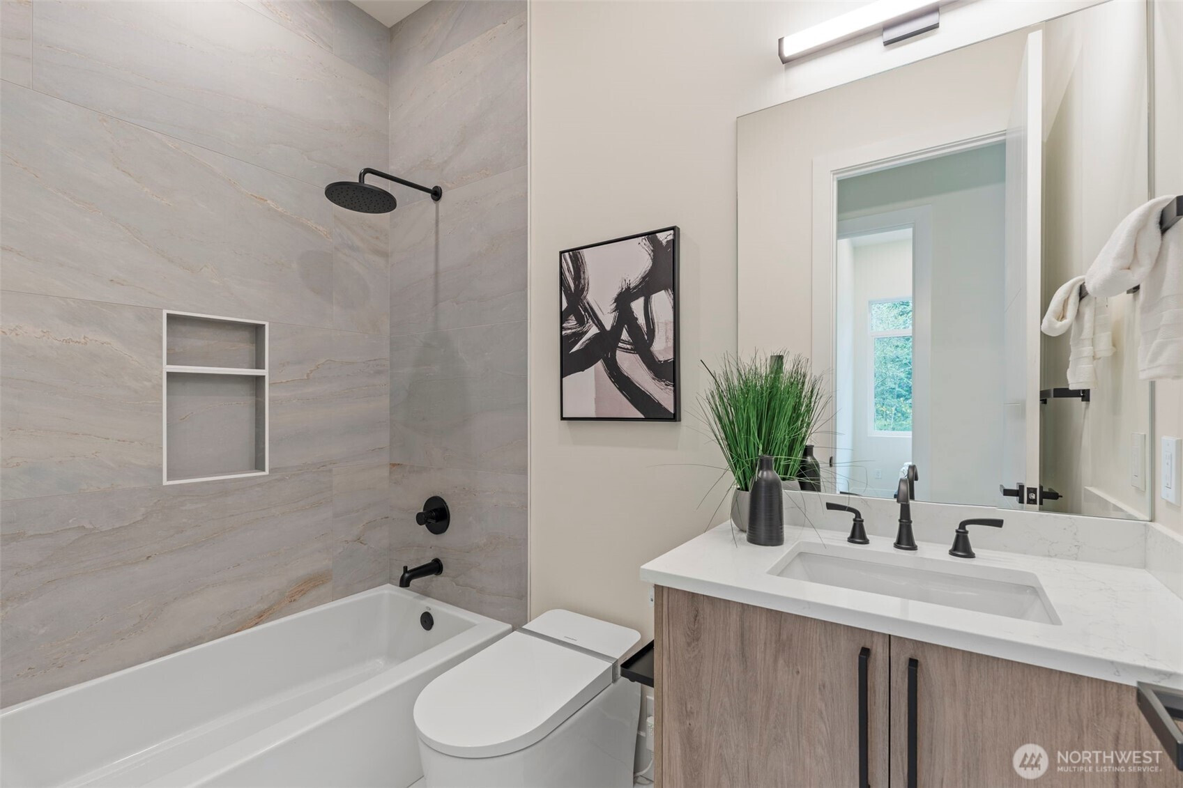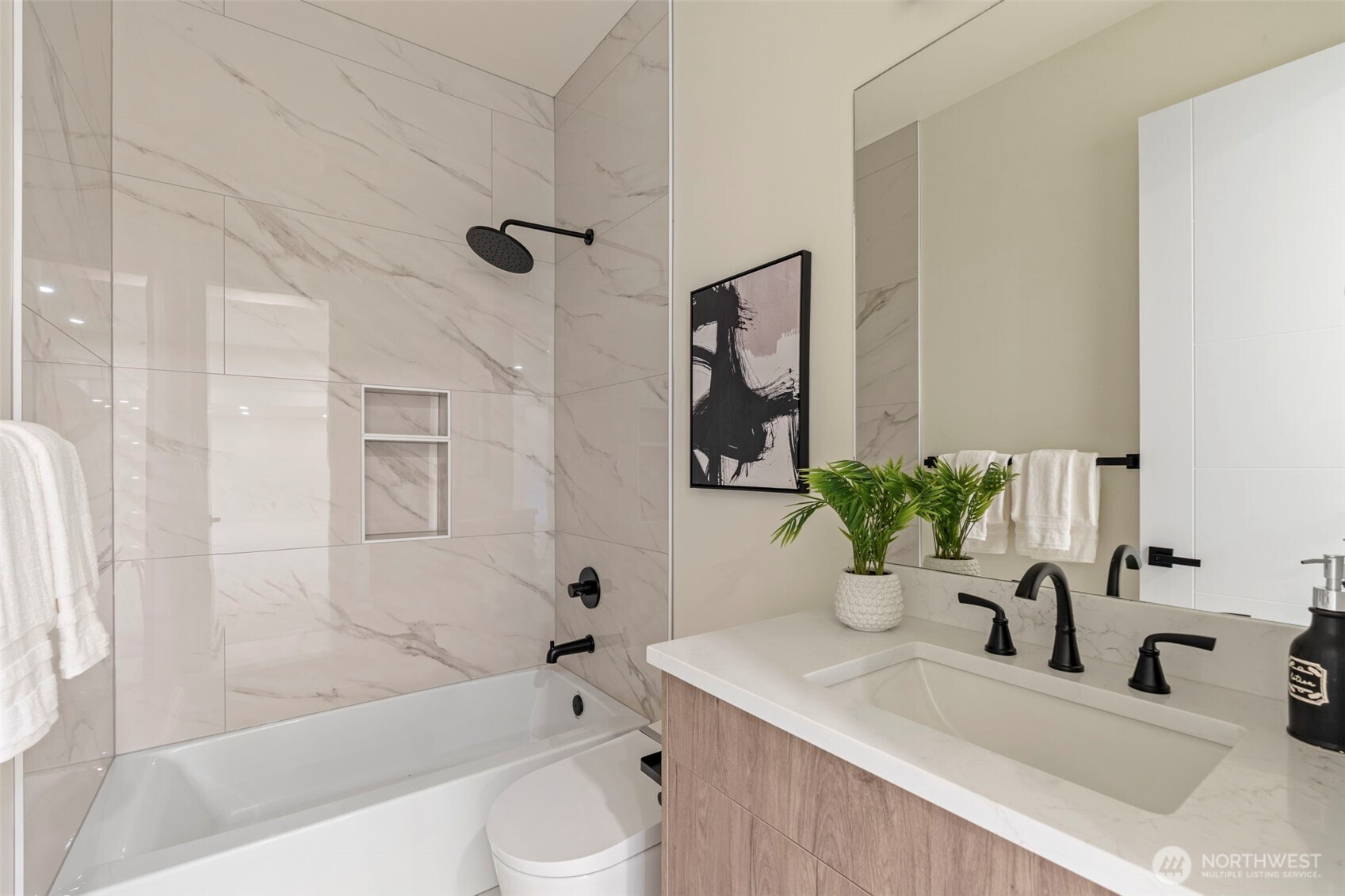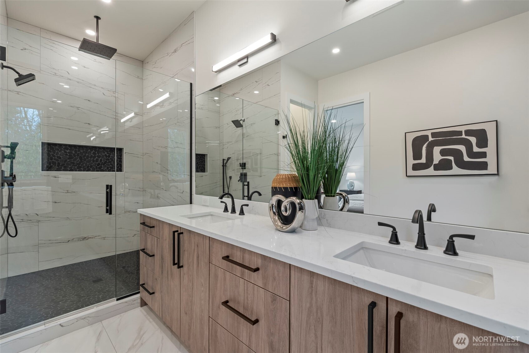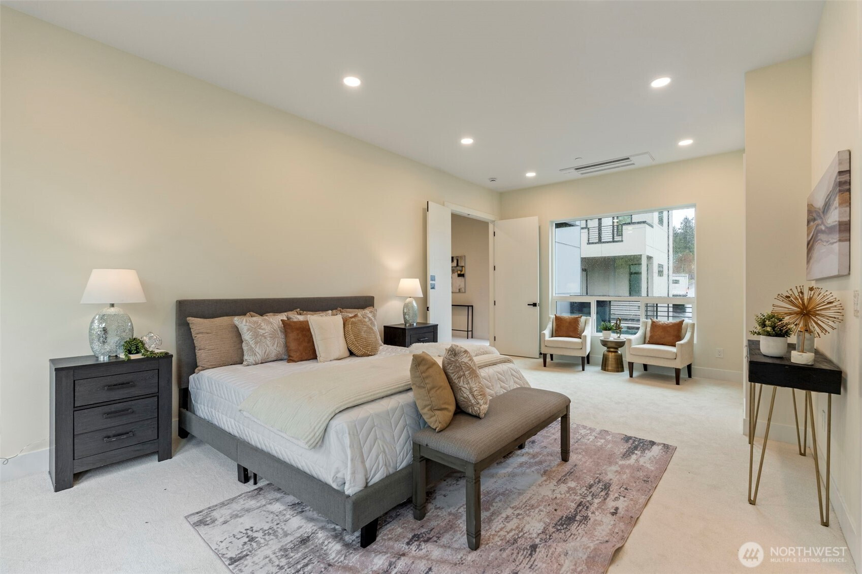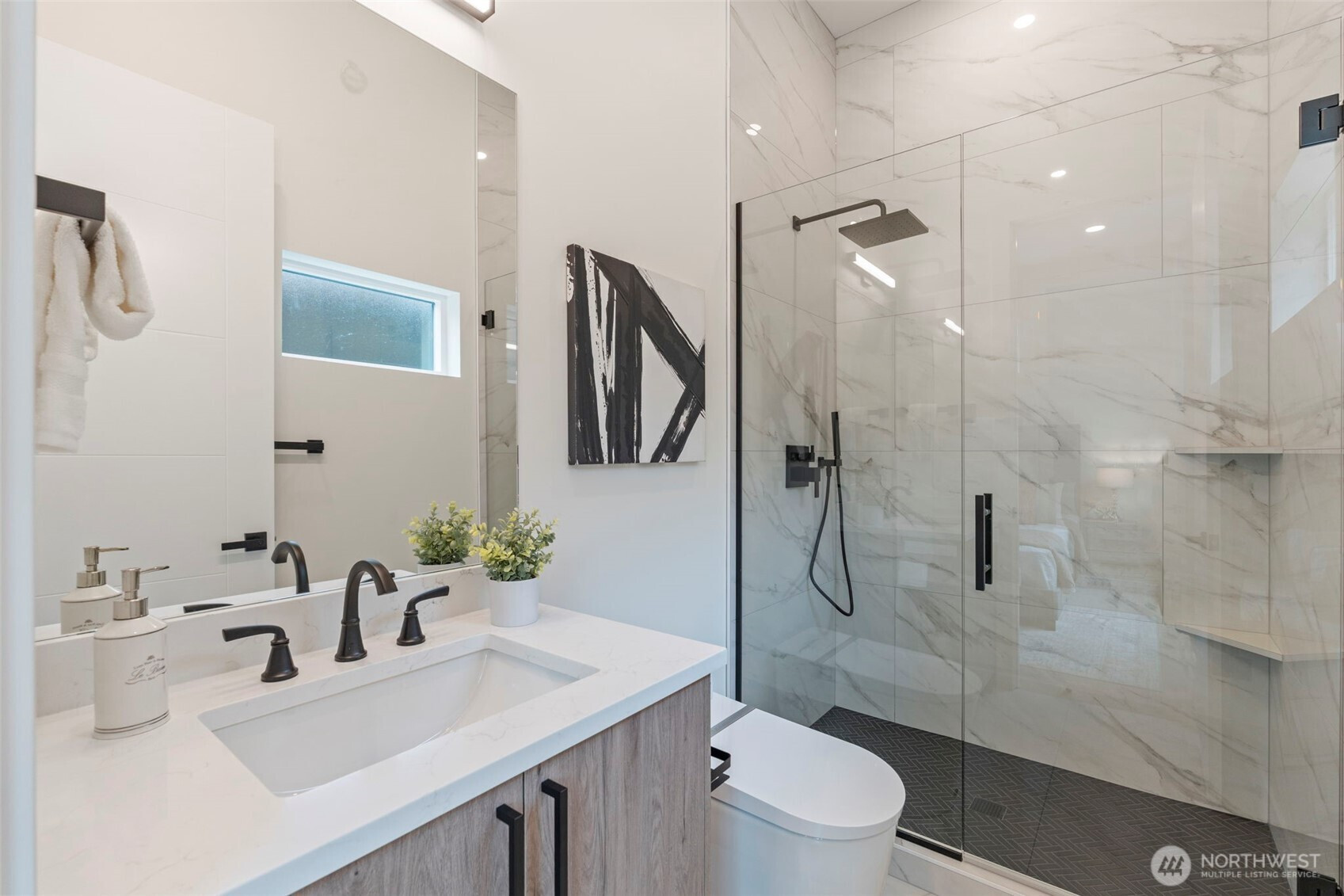 New Construction! 26K Seller Credit to Buyer and Builder Warranty Conveys.Thoughtfully designed contemporary custom built home in an established Sammamish community, backing to a serene greenbelt for privacy and views. A massive rooftop terrace offers exceptional space for entertaining and relaxation, while the light-filled great room showcases dramatic floor-to-ceiling windows. With 6 bedrooms and 5.5 baths, the home blends refined luxury with everyday functionality. The open main level features a chef’s kitchen with high-end JennAir appliances, a custom paneled refrigerator, and a waterfall island, along with a main-floor ensuite and powder room. Heated floors in all bathrooms, ductless mini-splits, pre-wired for a generator & gas hookup ready, Starlink connectivity ensure year-round comfort. Upstairs, the primary suite offers a spa-inspired bath, private deck, and walk-in closet, plus 3 additional bedrooms (one with its own ensuite bath), a huge loft, and two baths. The daylight basement includes a spacious rec room, bedroom, full bath, and walkout access to the backyard and open space beyond. A 3-car tandem garage, and location within the Issaquah School District complete this exceptional modern retreat—modern luxury, elevated by nature and design. Green belt behind cannot be built on ensuring privacy forever. Dont miss !