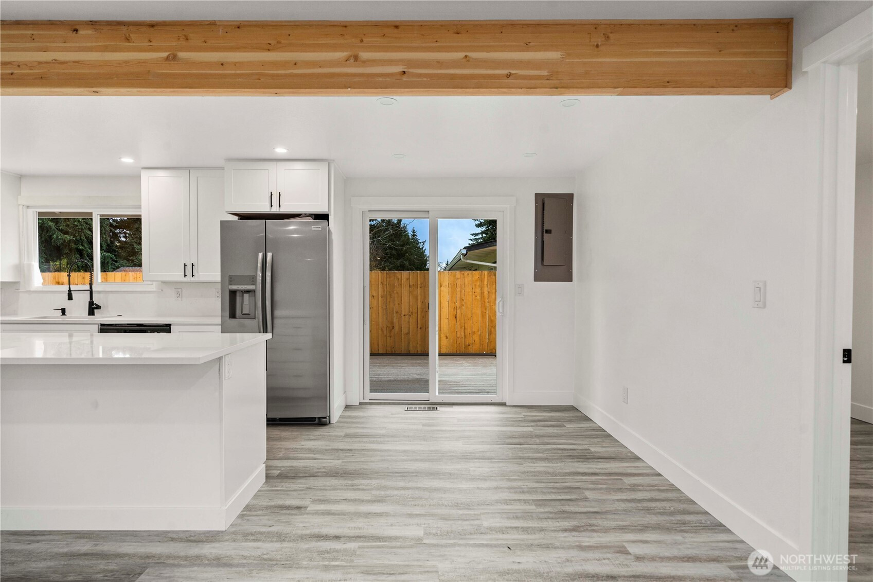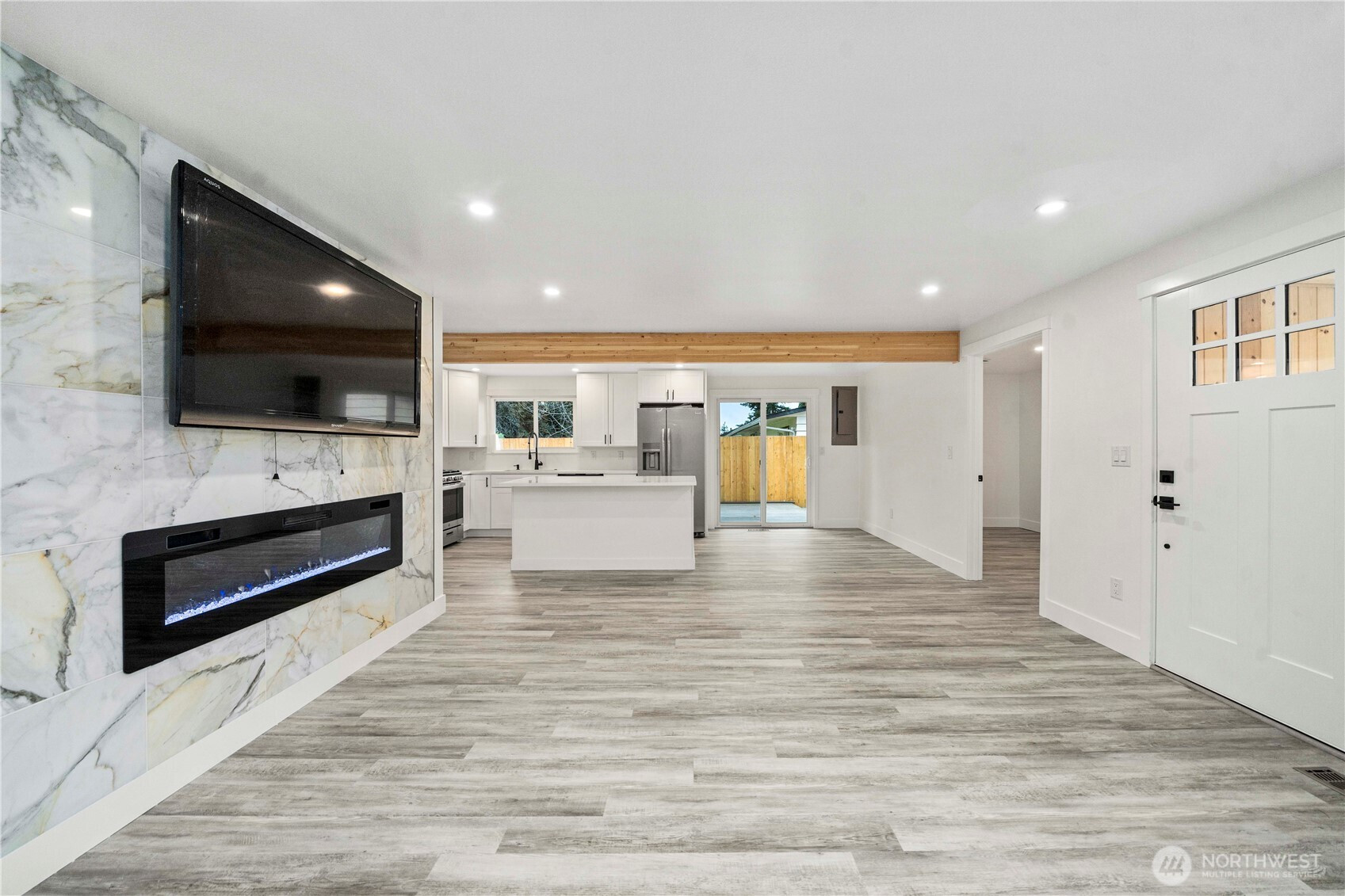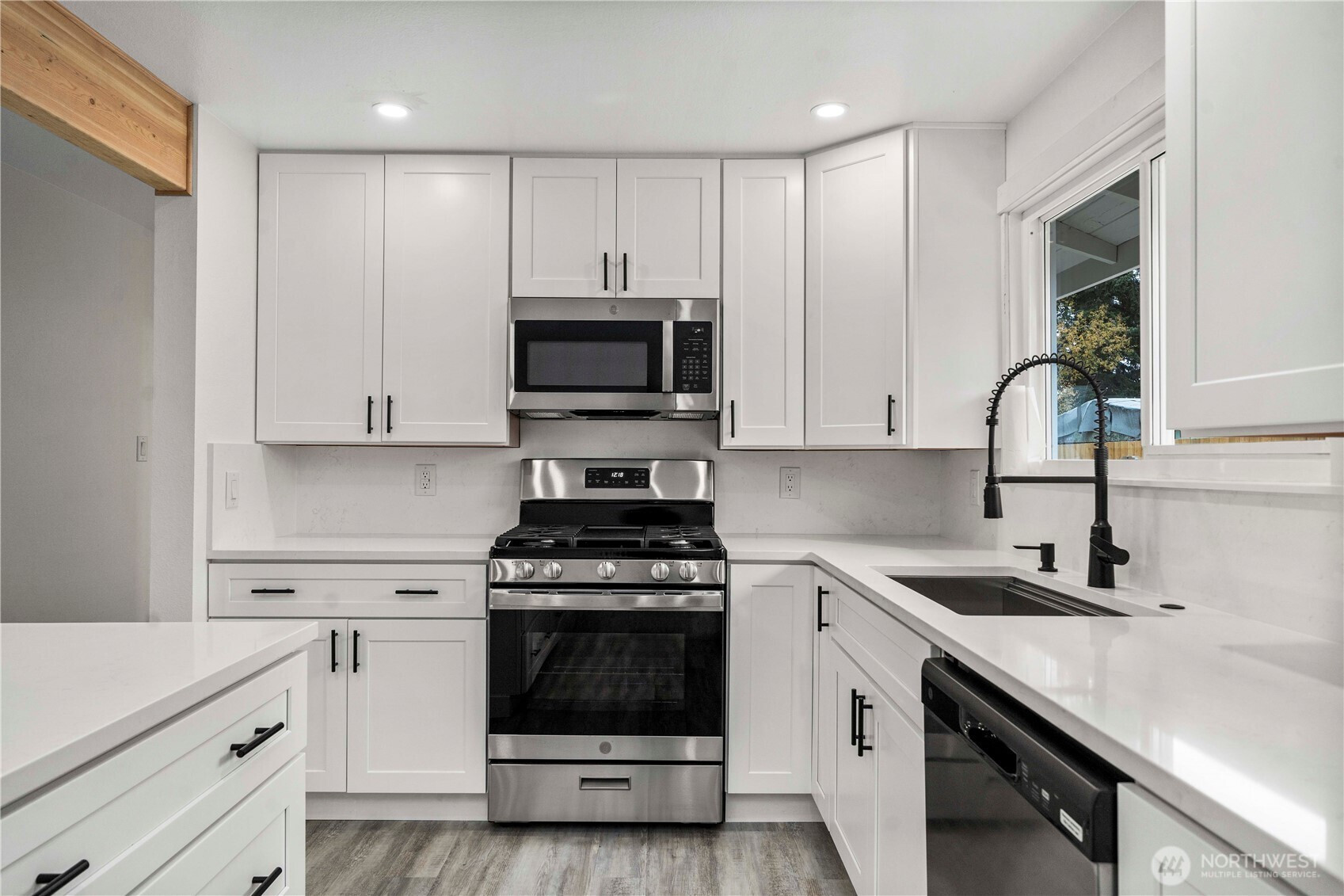 Exquisitely reimagined 3-bedroom, 1.75-bath rambler in Burien’s coveted Normandy Park with rare private access to The Cove—18 acres of Puget Sound beachfront, clubhouse, tennis courts, wooded trails, creeks and serene wetlands. Every detail of this 1,240 sq ft home has been thoughtfully gutted and rebuilt with upscale finishes including luxury LVP flooring, quartz countertops, GE stainless steel appliances, triple-pane windows, striking marble fireplace, tankless water heater and fresh white paint throughout for a light, bright, refined feel. Exterior upgrades include a new driveway, deck, fence, insulated garage with opener and updated landscaping. Truly turn-key luxury.