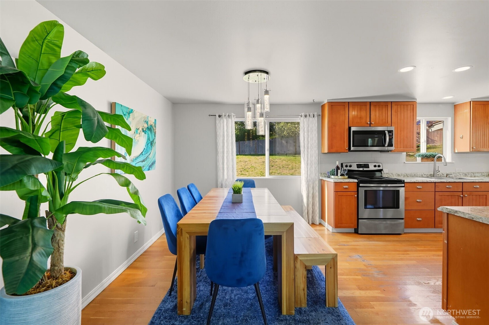 Discover this charming mid-century home, offering 2,320 sq ft of comfortable living space in beautiful Snohomish County. With four spacious bedrooms & a full bath upstairs, the main floor features a bright, open-concept living room & dining area that seamlessly connects to the kitchen. An oversized recreation room opens to a covered patio, perfect for relaxation and entertaining. The expansive lot provides endless possibilities for gardening and outdoor activities, while the two-car attached garage and basement with ample storage add to the home's appeal. Located in the outstanding Northshore School District & close to parks, dining, and commuting routes, this home is brimming with potential. Don’t miss out on this incredible opportunity!