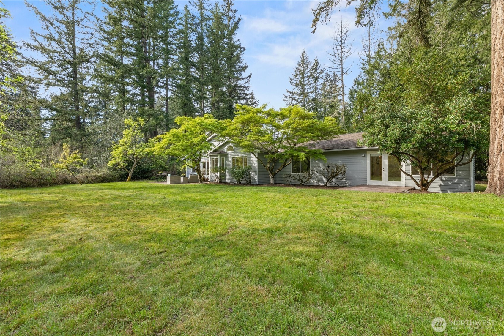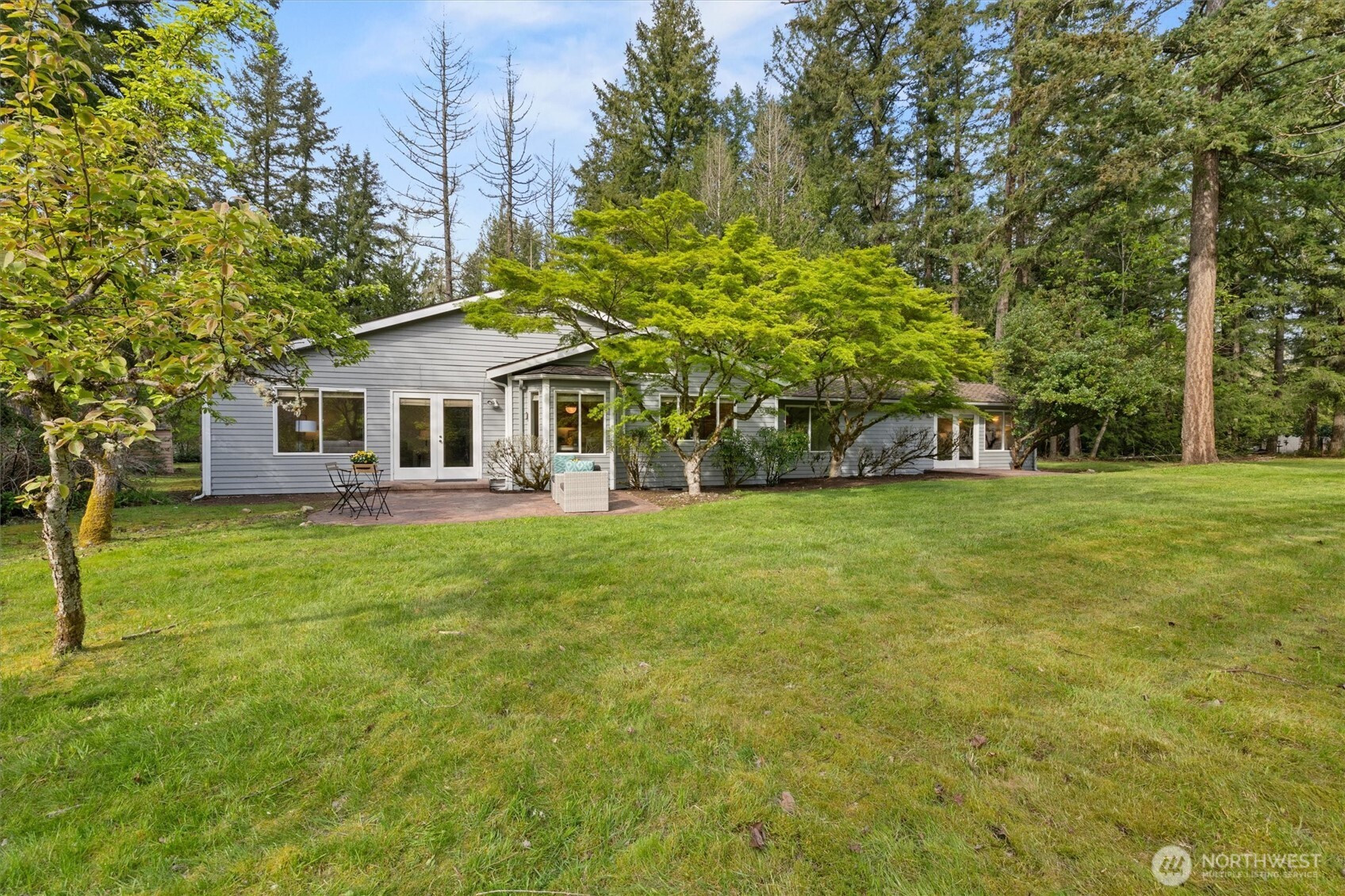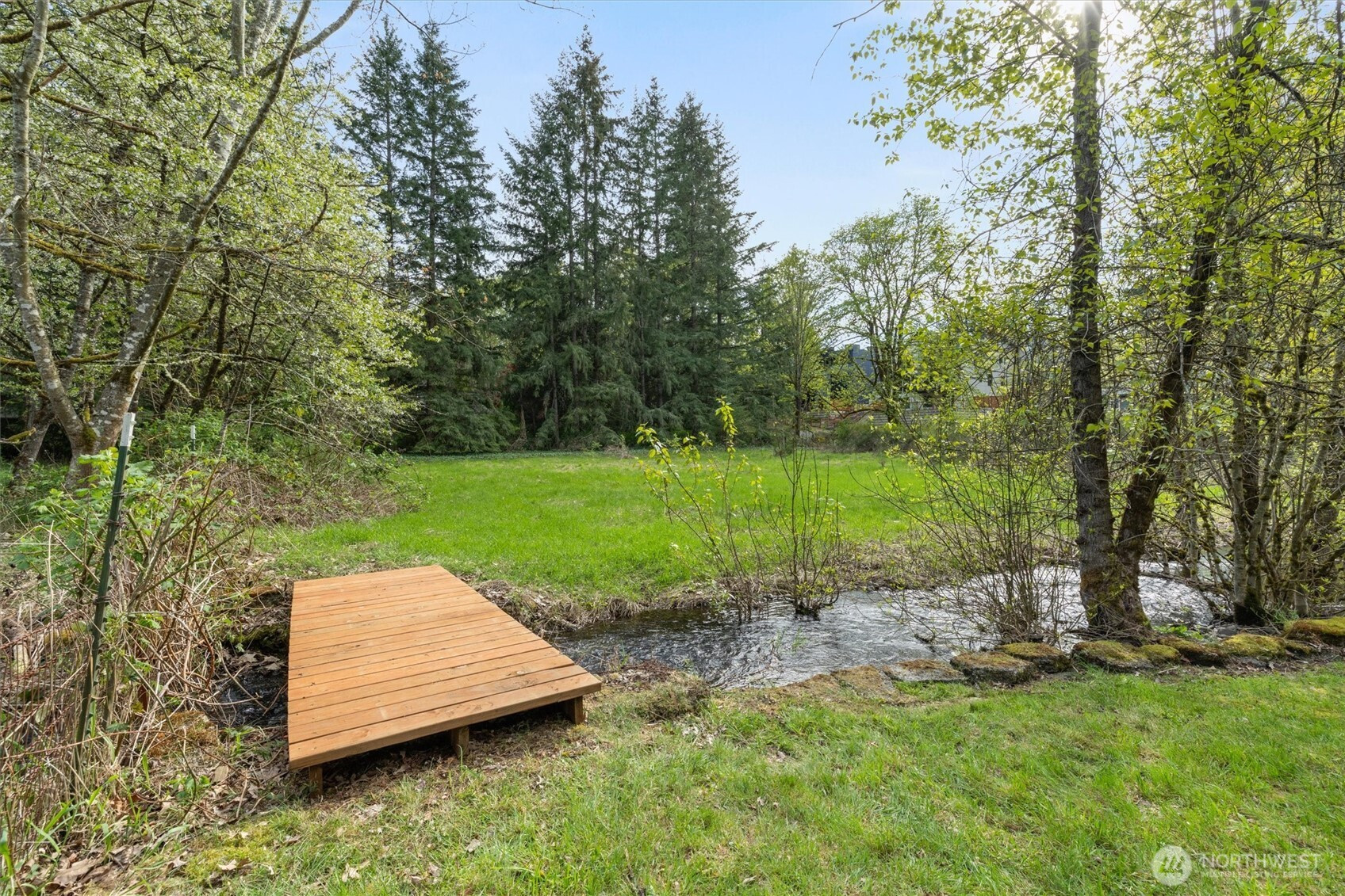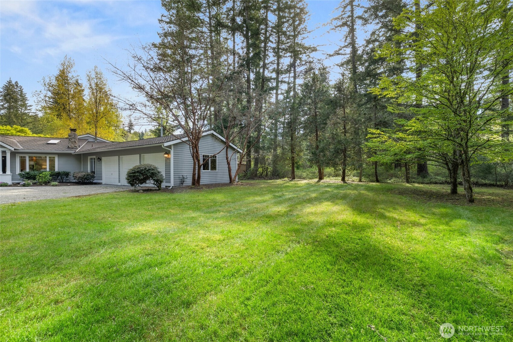First time on the market in 30 years! This rare single-level home sits on a sun-filled 1.49-acre lot located directly across from Beaver Lake Park in Sammamish. The spacious 5 bedroom 2 bathroom layout provides excellent separation and privacy for all, making it ideal for a variety of living needs, while still feeling connected and functional. At the heart of the home is a centrally located kitchen with eating area, designed for gathering and daily living featuring a large island, gas cooking, newer stainless steel appliances, it flows seamlessly into the main living areas, creating an inviting space for entertaining with formal living and dining rooms or cozy relaxation in the adjoining family room featuring a river rock fireplace. Recent updates include gorgeous refinished natural maple hardwood floors, new carpet throughout, and new interior & exterior paint. Step outside to enjoy two patios perfect for entertaining, dining, or simply taking in the peaceful surroundings. The property features a seasonal pond fed by Laughing Jacob's Creek with a newly constructed bridge leading to a large open area —ideal for gardens, hobby farm, sport courts or other possibilities. Additional features include an oversized 780 sqft 3-car garage, new furnace, new ducting, new attic & crawlspace insulation, and pre-inspection already completed. R4 zoning and potential for development or an ADU, this property offers both immediate enjoyment and long-term potential. No HOA!