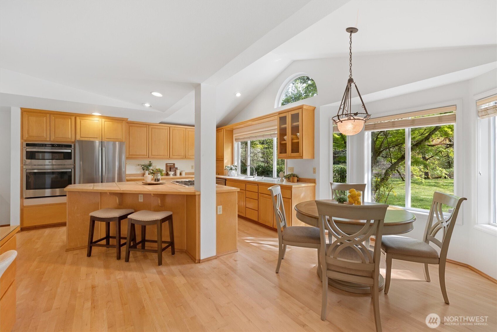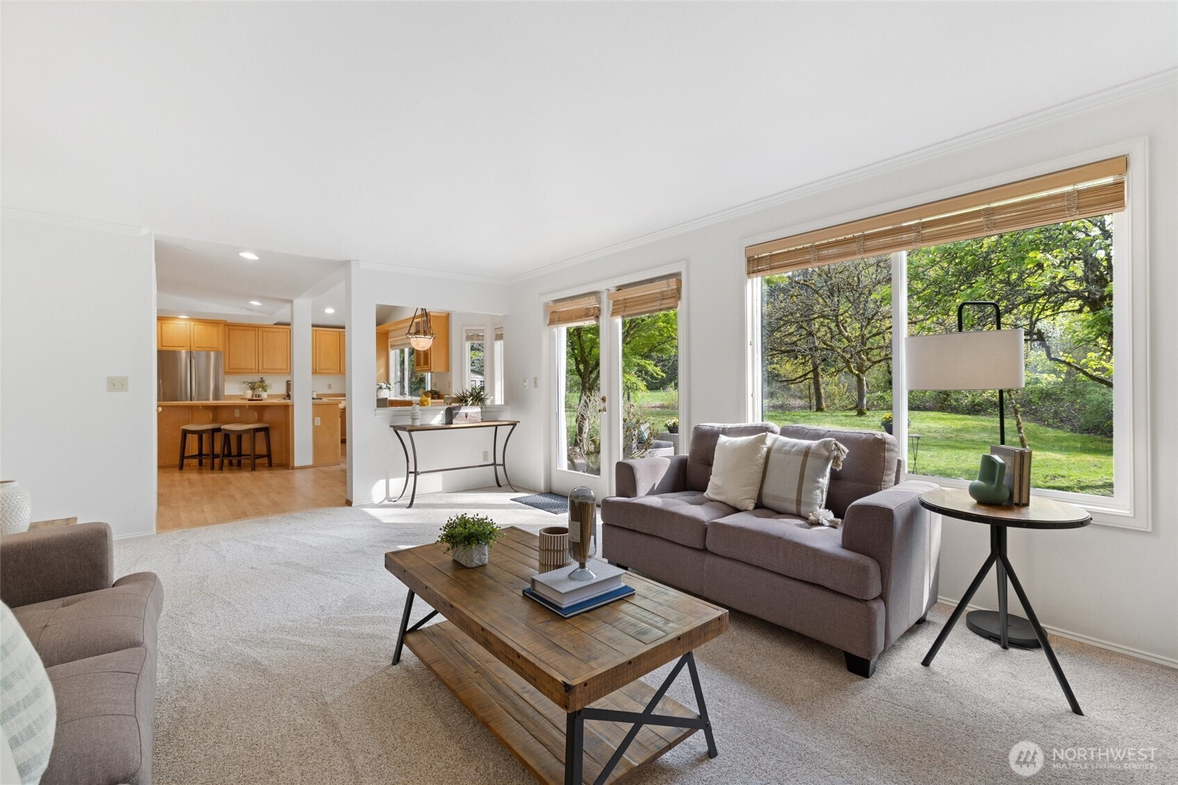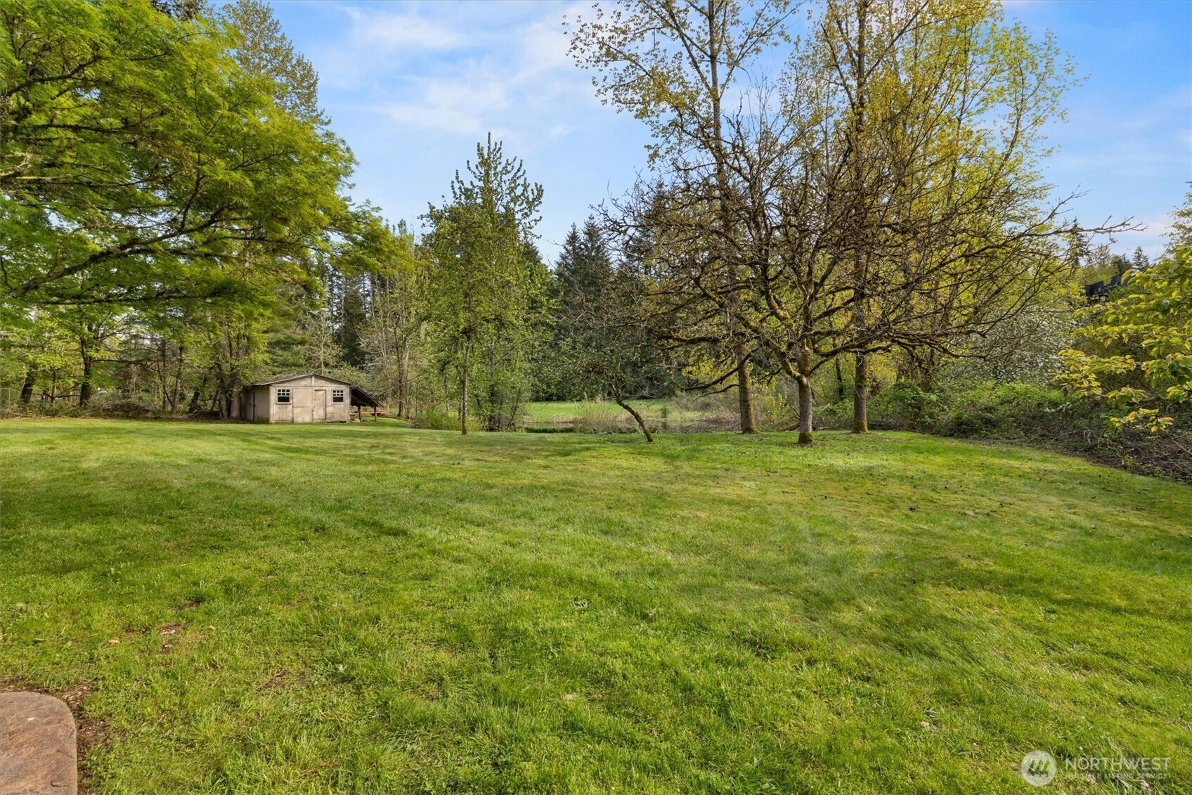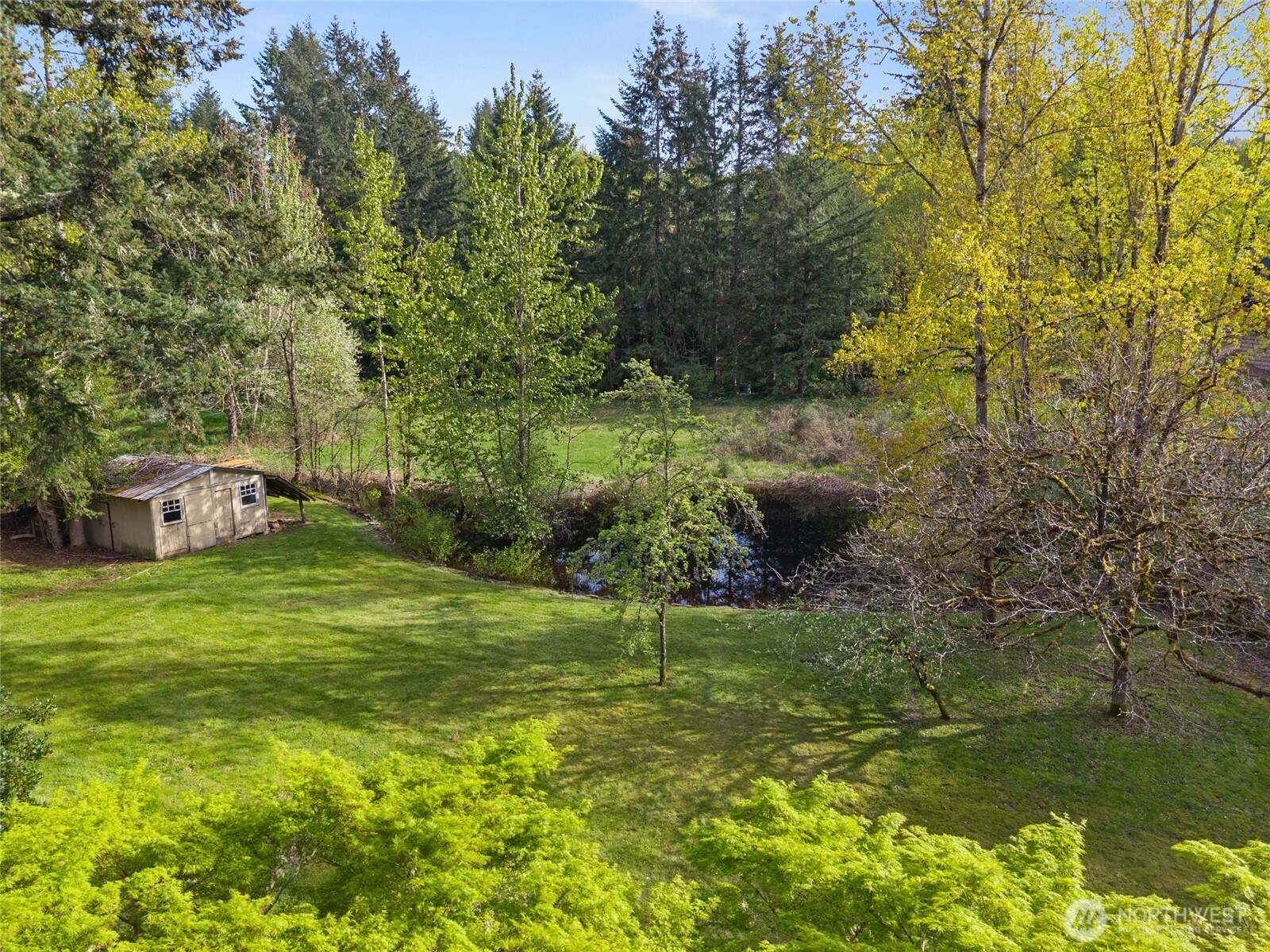 First time on the market in 30 years! This rare single-level home sits on a sun-filled 1.49-acre lot located directly across from Beaver Lake Park in Sammamish. The spacious 5 bedroom 2 bathroom layout provides excellent separation and privacy for all, making it ideal for a variety of living needs, while still feeling connected and functional. At the heart of the home is a centrally located kitchen with eating area, designed for gathering and daily living featuring a large island, gas cooking, newer stainless steel appliances, it flows seamlessly into the main living areas, creating an inviting space for entertaining with formal living and dining rooms or cozy relaxation in the adjoining family room featuring a river rock fireplace. Recent updates include gorgeous refinished natural maple hardwood floors, new carpet throughout, and new interior & exterior paint. Step outside to enjoy two patios perfect for entertaining, dining, or simply taking in the peaceful surroundings. The property features a seasonal pond fed by Laughing Jacob's Creek with a newly constructed bridge leading to a large open area —ideal for gardens, hobby farm, sport courts or other possibilities. Additional features include an oversized 780 sqft 3-car garage, new furnace, new ducting, new attic & crawlspace insulation, and pre-inspection already completed. R4 zoning and potential for development or an ADU, this property offers both immediate enjoyment and long-term potential. No HOA!