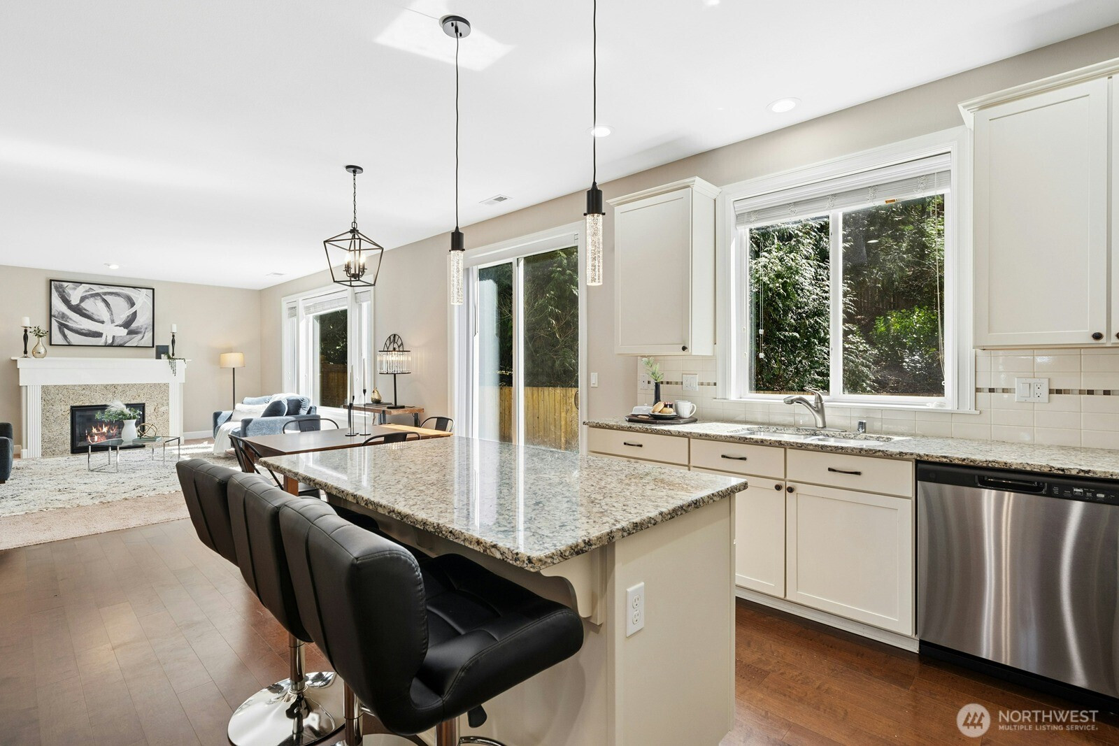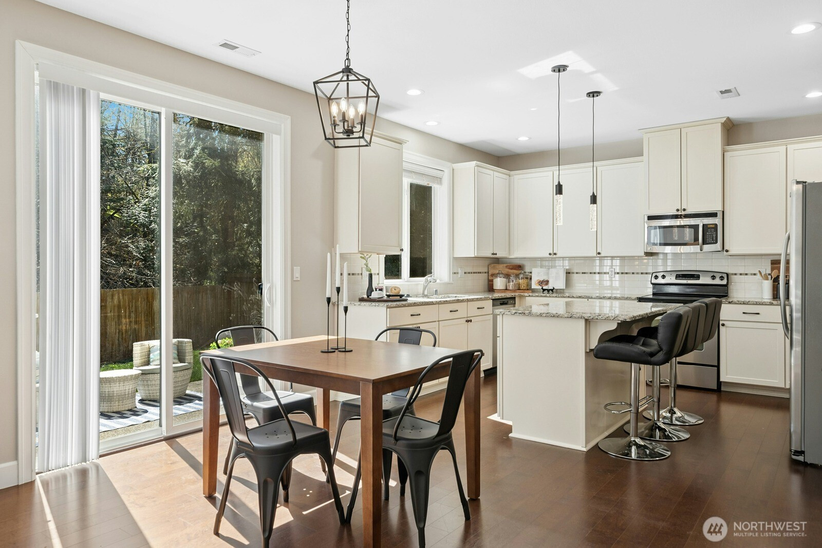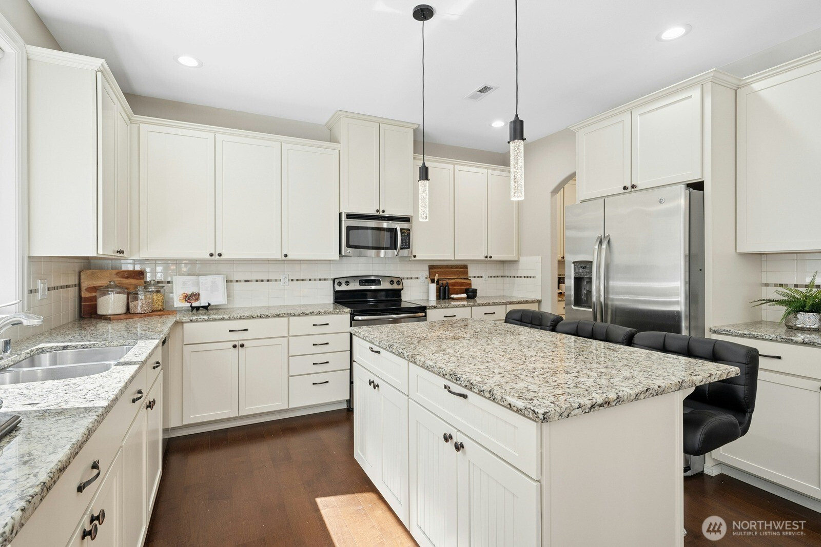 Tucked away at the end of a quiet cul-de-sac in Maple Valley Gardens, this impeccably maintained 2-story Craftsman offers a "like-new" feel with premium upgrades. The main level welcomes you with an open-concept great room designed for seamless living, highlighted by 9-foot ceilings and expansive large windows that flood the space with natural light. Crisp white millwork and engineered hardwoods add a touch of warmth to the airy layout. The gourmet kitchen is a chef’s delight, boasting white cabinetry, granite counters, SS appliances, and a butler’s pantry leading to a versatile flex space. Upstairs, the primary suite serves as a private retreat with a spa-like bath and walk-in closet, plus a spacious bonus room and dedicated office. The fully fenced backyard is a true sanctuary, backing to a lush greenbelt for ultimate privacy. Rare NO HOA! Located in the award-winning Tahoma School District, just a short walk to Lake Wilderness Park and trails, with easy access to Hwy 18 & 169.