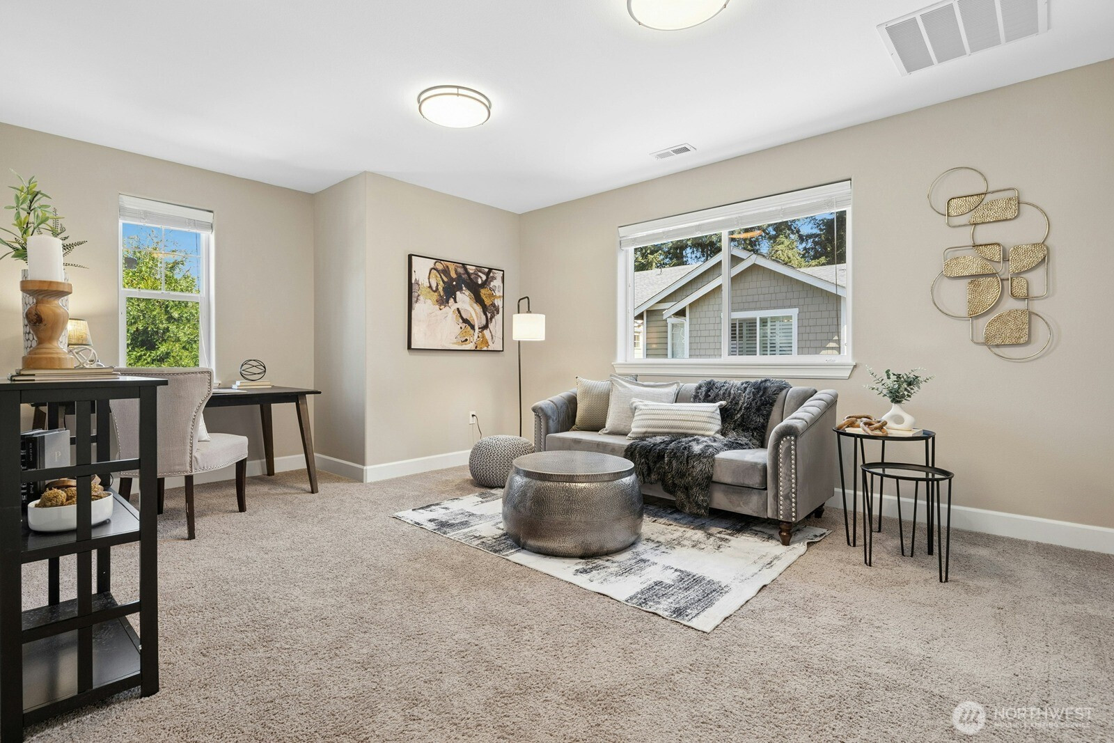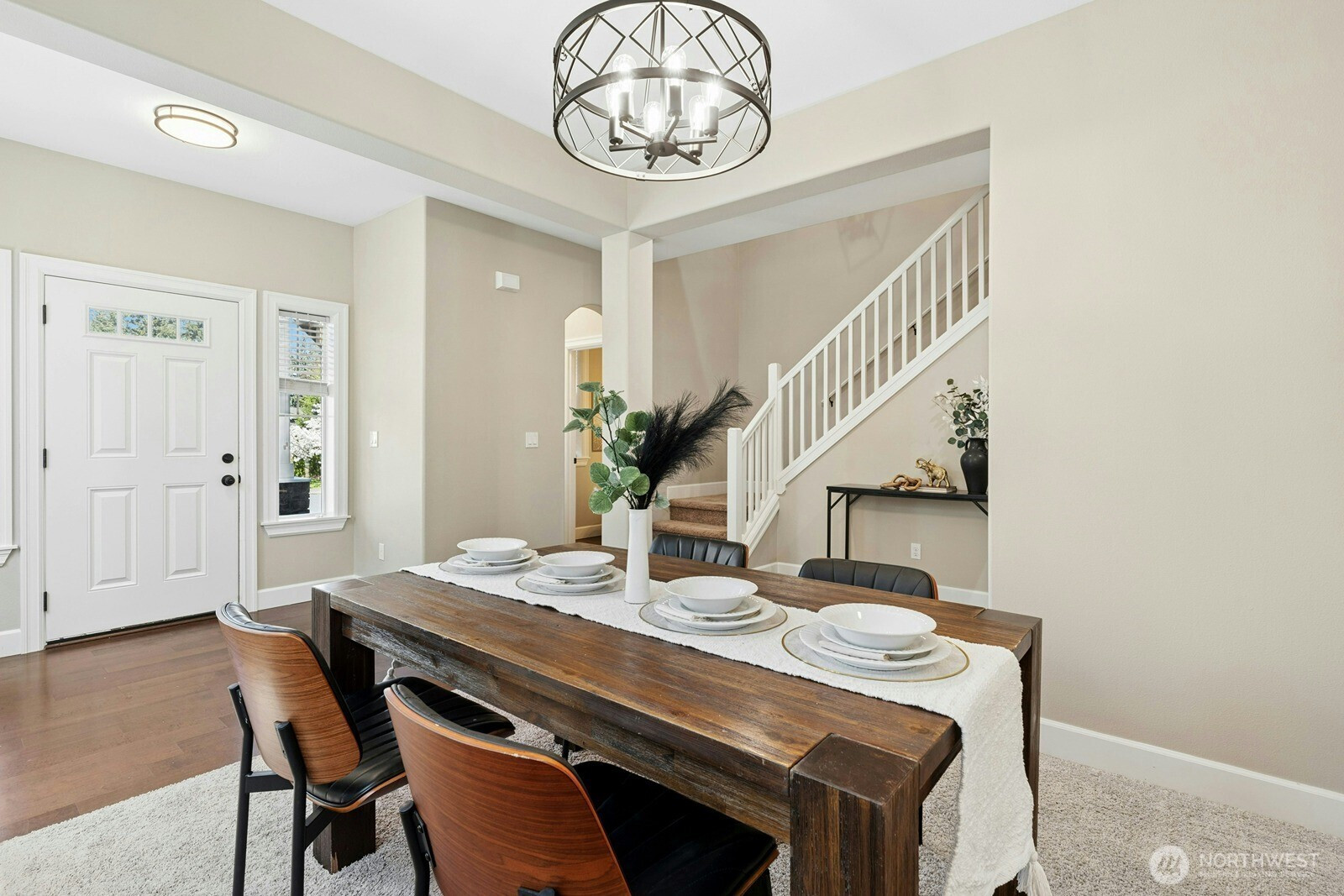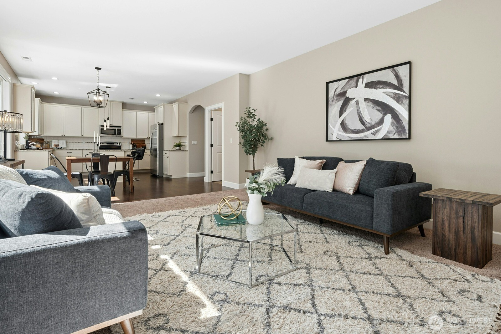 Tucked away at the end of a quiet cul-de-sac in Maple Valley Gardens, this impeccably maintained 2-story Craftsman offers a "like-new" feel with premium upgrades. The main level welcomes you with an open-concept great room designed for seamless living, highlighted by 9-foot ceilings and expansive large windows that flood the space with natural light. Crisp white millwork and engineered hardwoods add a touch of warmth to the airy layout. The gourmet kitchen is a chef’s delight, boasting white cabinetry, granite counters, SS appliances, and a butler’s pantry leading to a versatile flex space. Upstairs, the primary suite serves as a private retreat with a spa-like bath and walk-in closet, plus a spacious bonus room and dedicated office. The fully fenced backyard is a true sanctuary, backing to a lush greenbelt for ultimate privacy. Rare NO HOA! Located in the award-winning Tahoma School District, just a short walk to Lake Wilderness Park and trails, with easy access to Hwy 18 & 169.