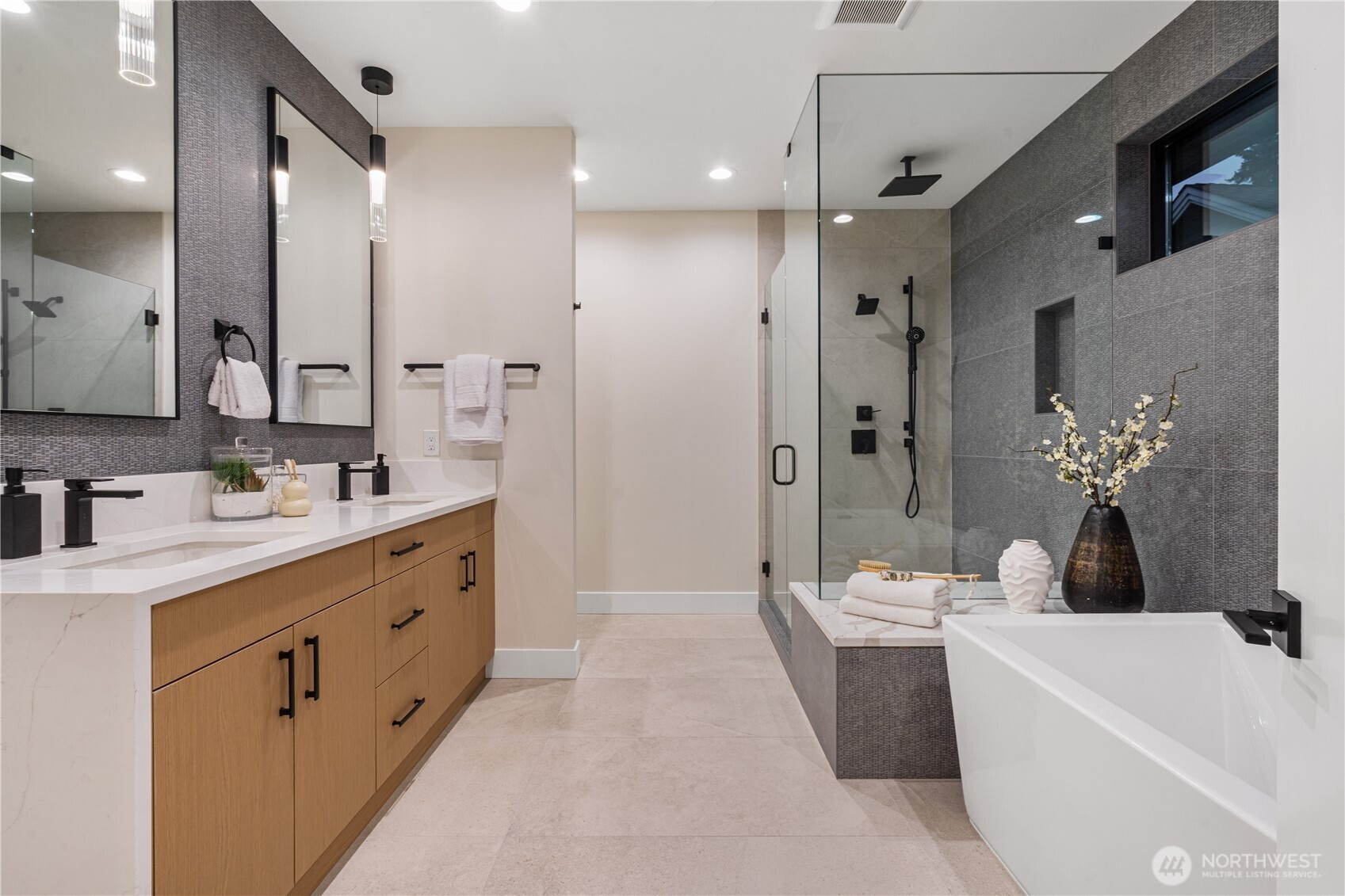 (503) 893-8874Stunning modern contemporary estate in coveted Enatai, Bellevue. New construction with clean lines, soaring 11' ceilings, and walls of glass flooding interiors with natural light. Features 5 bedrooms, 5.5 baths, open great room, sleek chef’s kitchen & prep kitchen, and dramatic floating staircase. Expansive primary retreat includes spa-like bath and one of three private balconies. Flexible lofts, media, and office spaces. Heated bathroom floors, designer lighting, and premium finishes throughout. Seamless indoor-outdoor flow with a Zen-inspired courtyard, and spacious patio. Pre-wired for home theater and golf simulator. Three-car garage and level yard complete this masterpiece, minutes to downtown Bellevue and waterfront parks.
